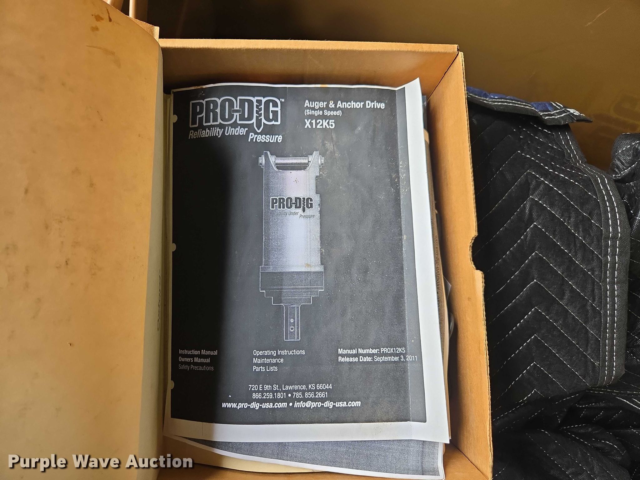 Purple Wave is selling a used Auger or Drill in New York. This item is a Pro-Dig X12K5 driver with the following: Intelli-Tork H300 monitoring system included, Hoses, Pressure gauges, Knaack job box