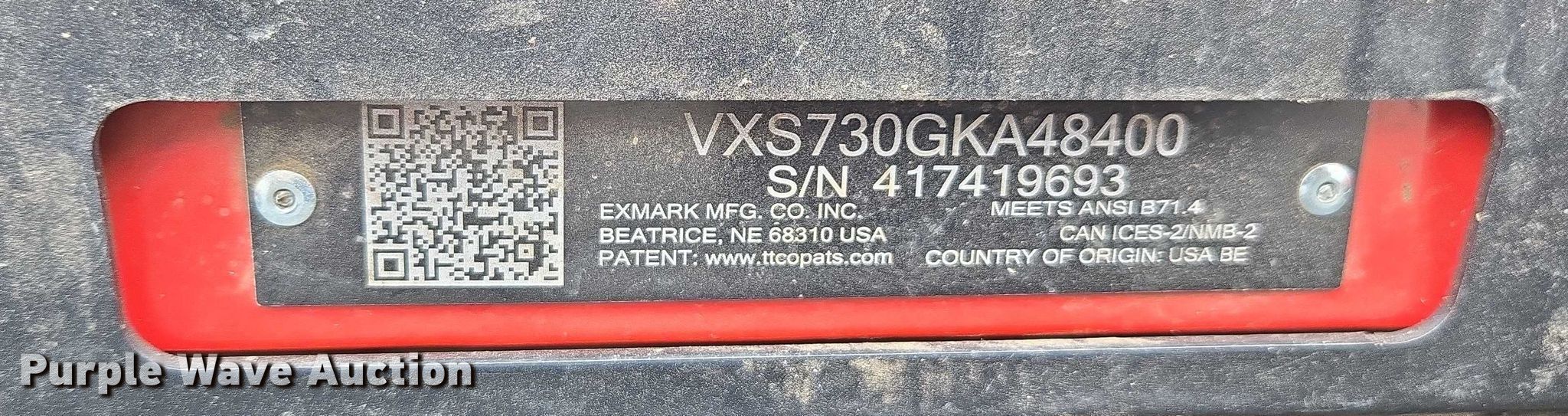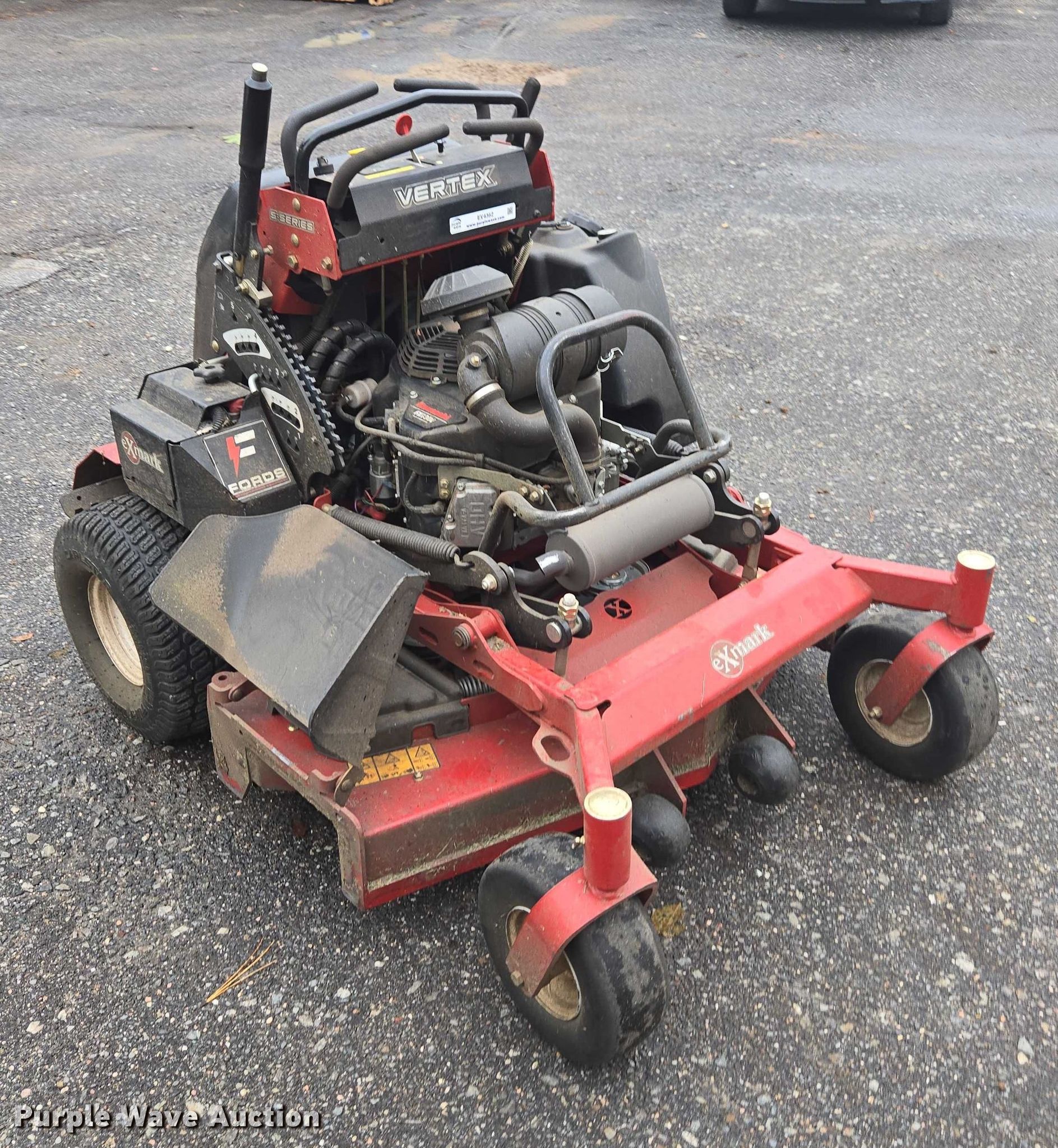 Exmark Vertex ZTR lawn mower. Hours: 181 on meter, Cutting width: 48", Serial: 417419693. Engine Kawasaki FX730V, Cylinders: 2, Fuel type: Gas. Transmission Hydrostatic. Features Stand on. Tires Front: 13x5-6, Rear: 20x10-8. East End Group Inventory Reduction - Open inspection October 16th and 17th from 9 a.m. to 4 p.m.. 124 Sills Road. Yaphank, NY 11980
