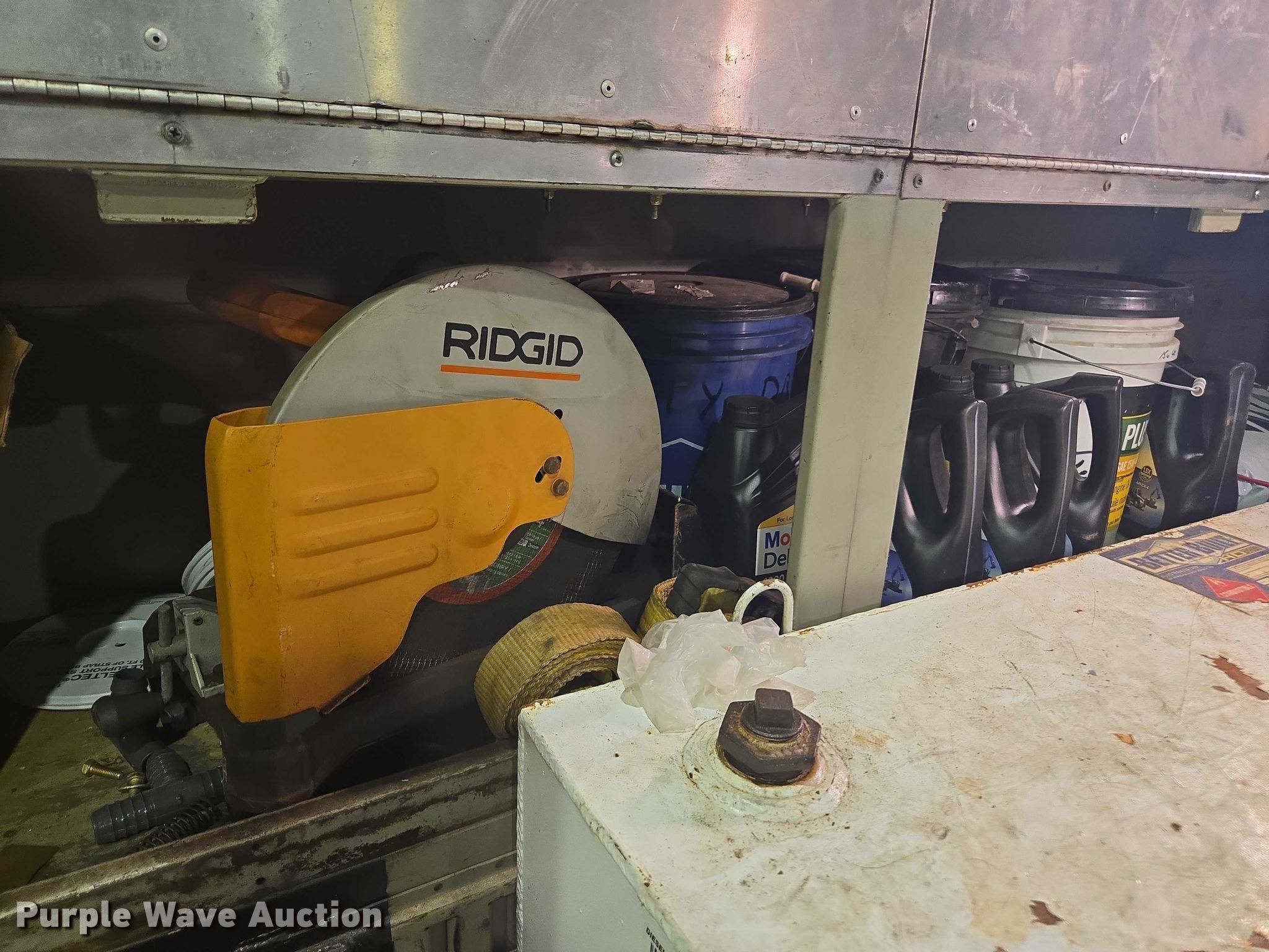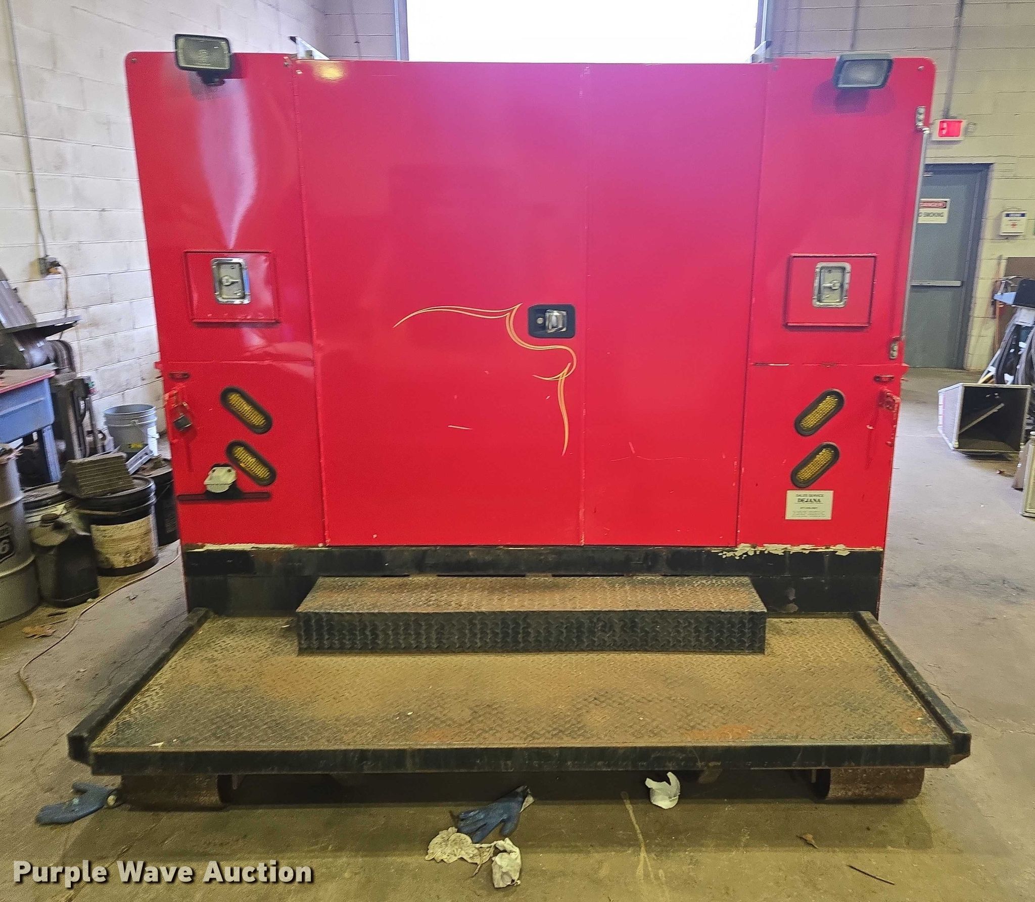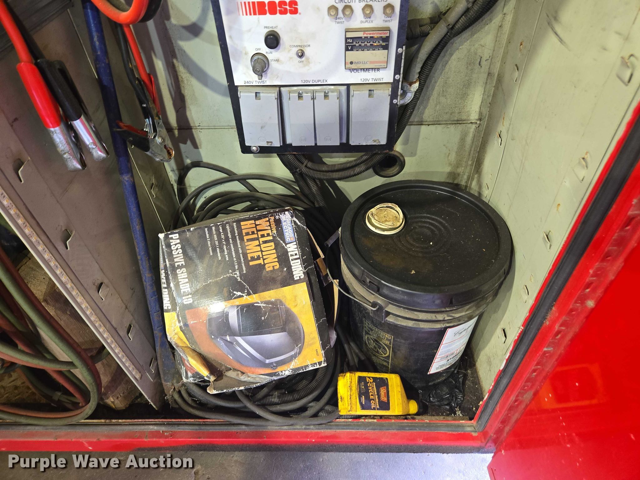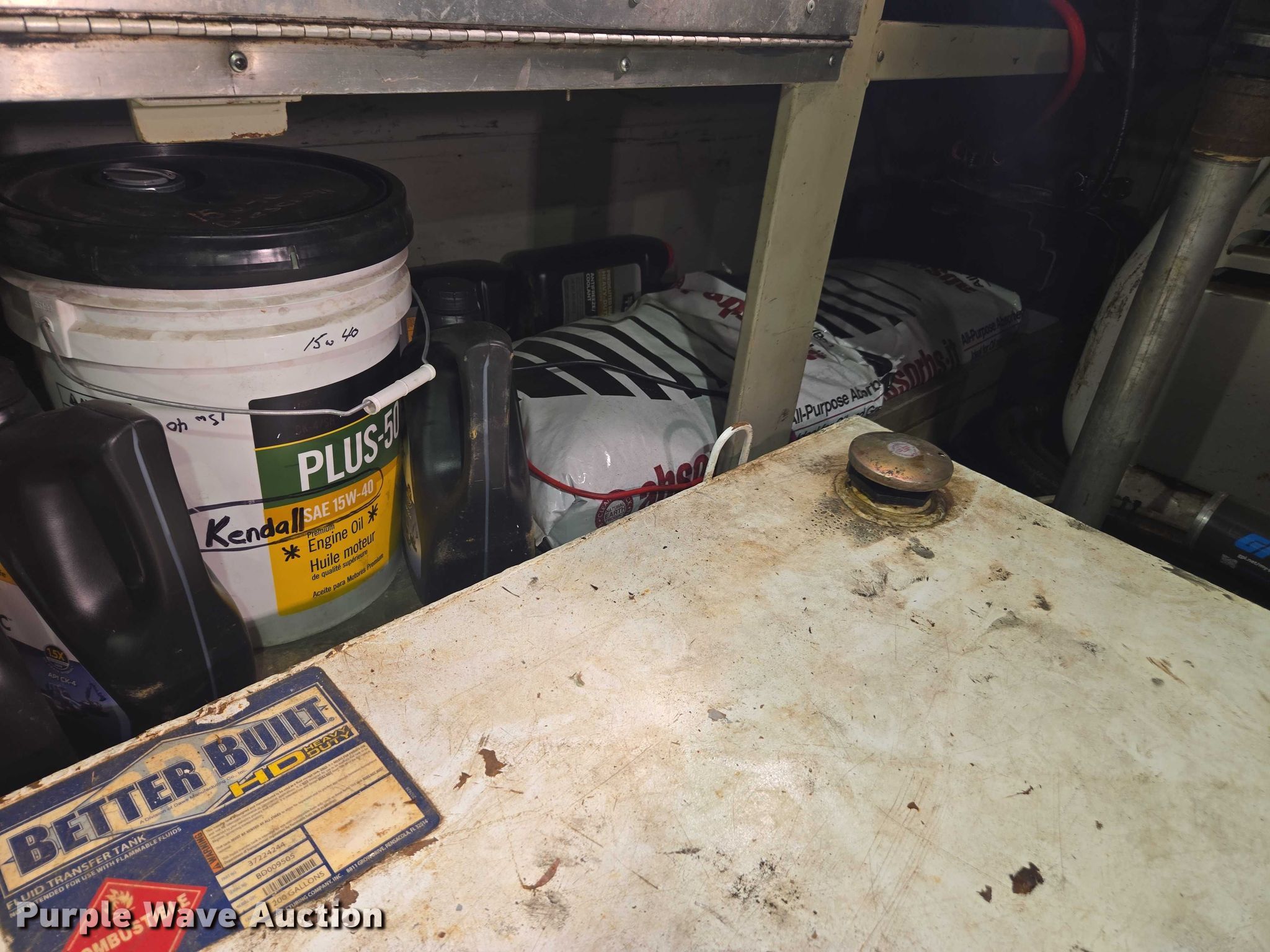 Knapheide hook lift utility / service bed. Serial: 20160227-0451624. Dimensions Overall Length: 14', Width: 96". Engine Kubota, Cylinders: 3, Fuel type: Diesel. Features Boss MechanX air compressor and welder, Fuel tank Capacity: 200 gallons, Enduraplas DEF tank, Oil, Megaplex 120LB grease barrel Pump, Oxy acetylene torch, Length: 11'. Notes Contents included. East End Group Inventory Reduction. Yaphank, NY 11980