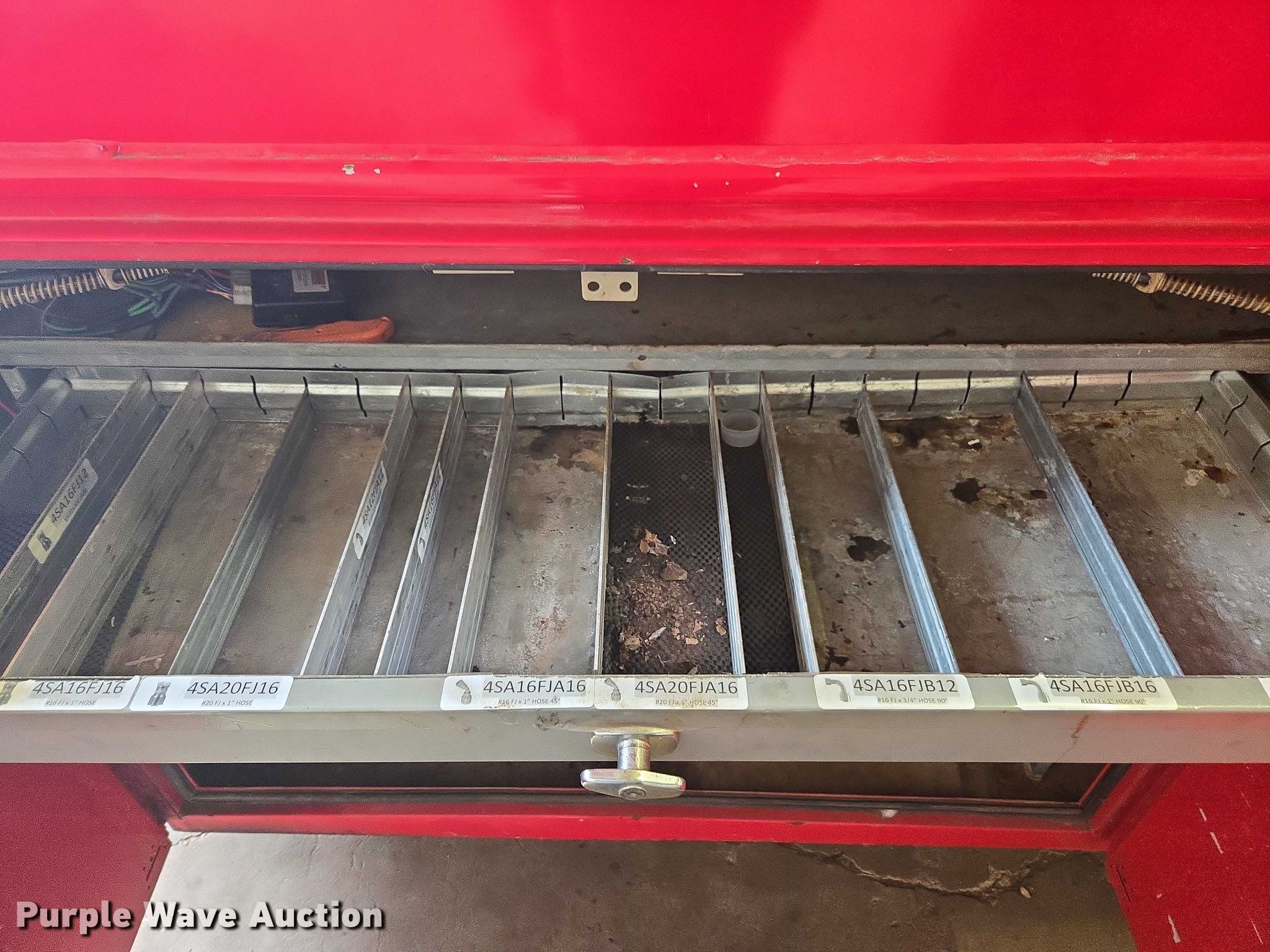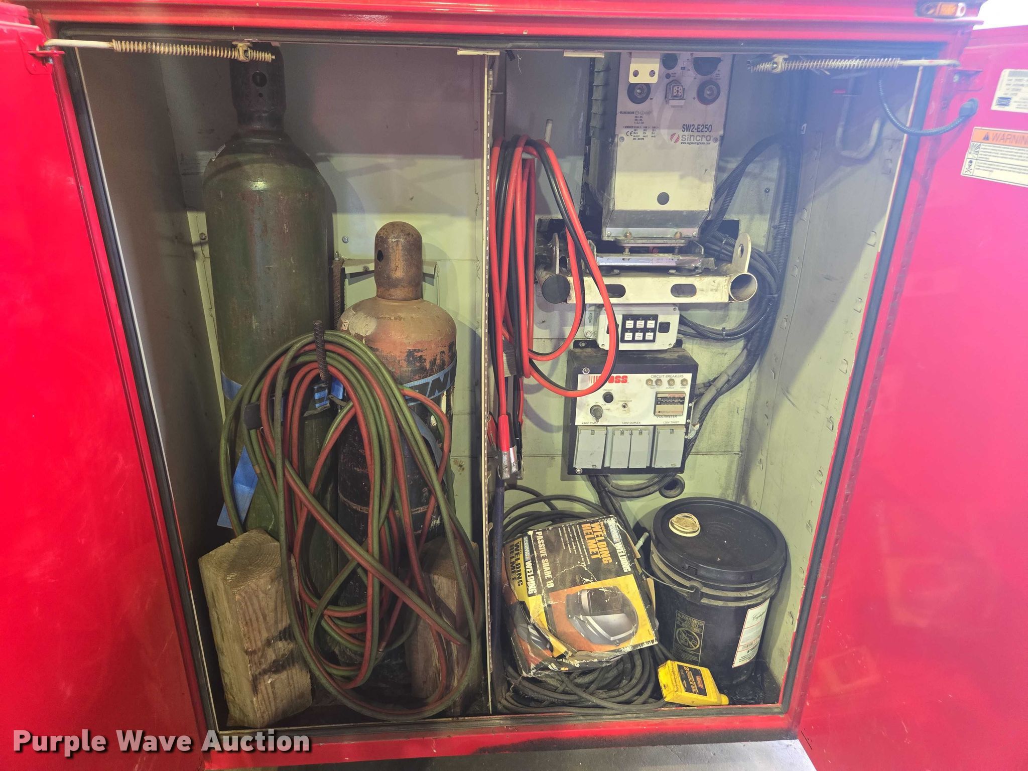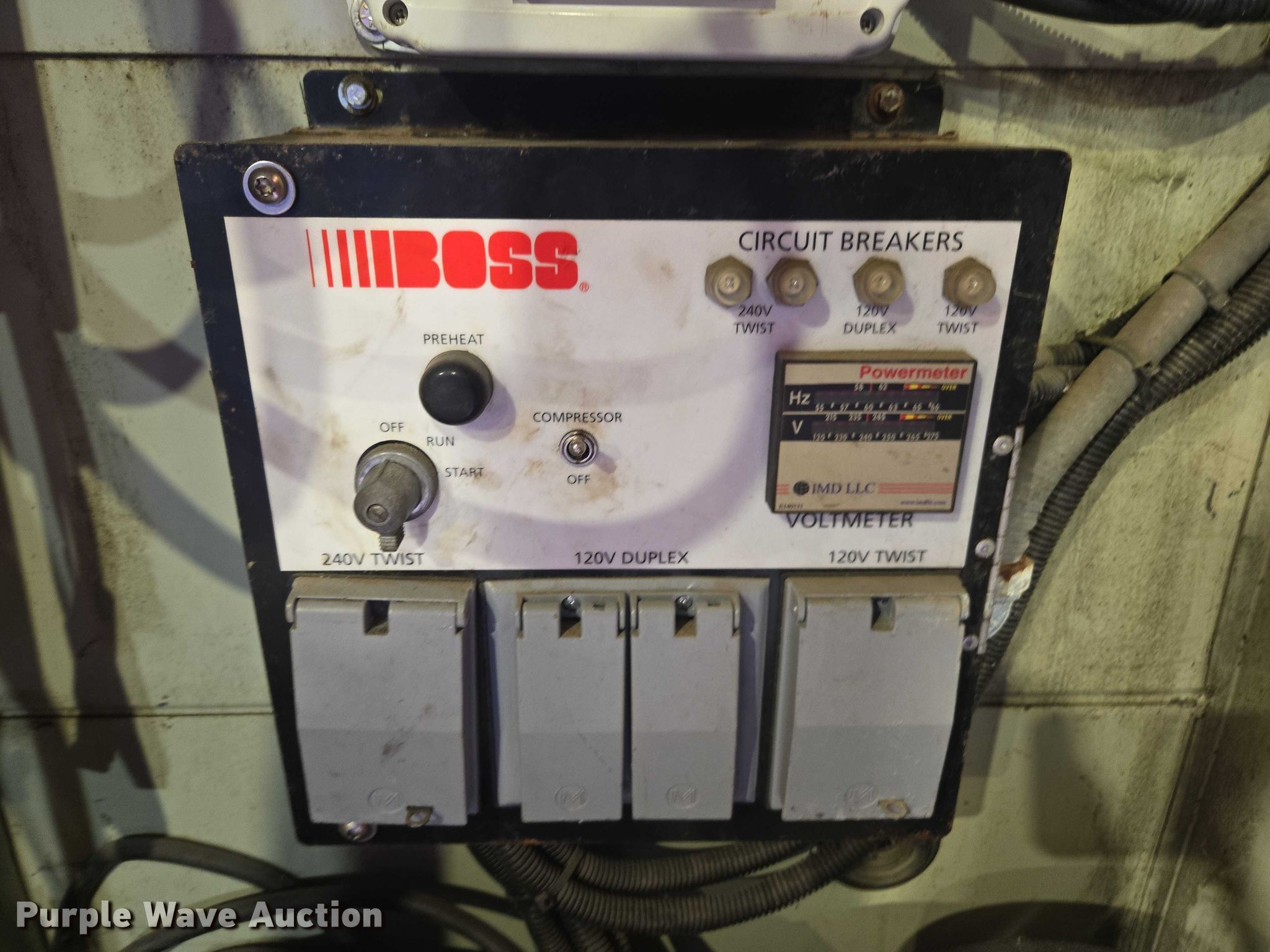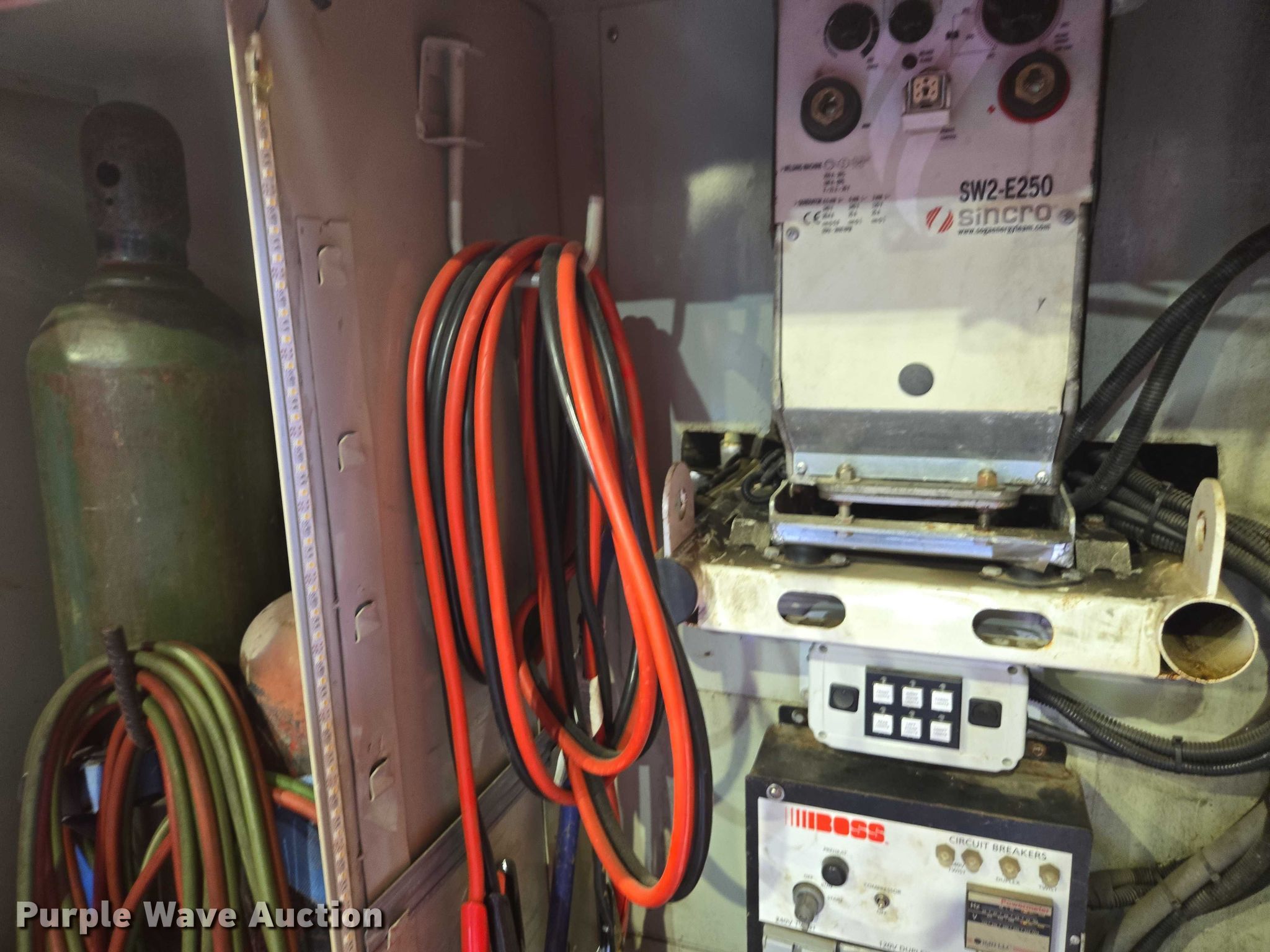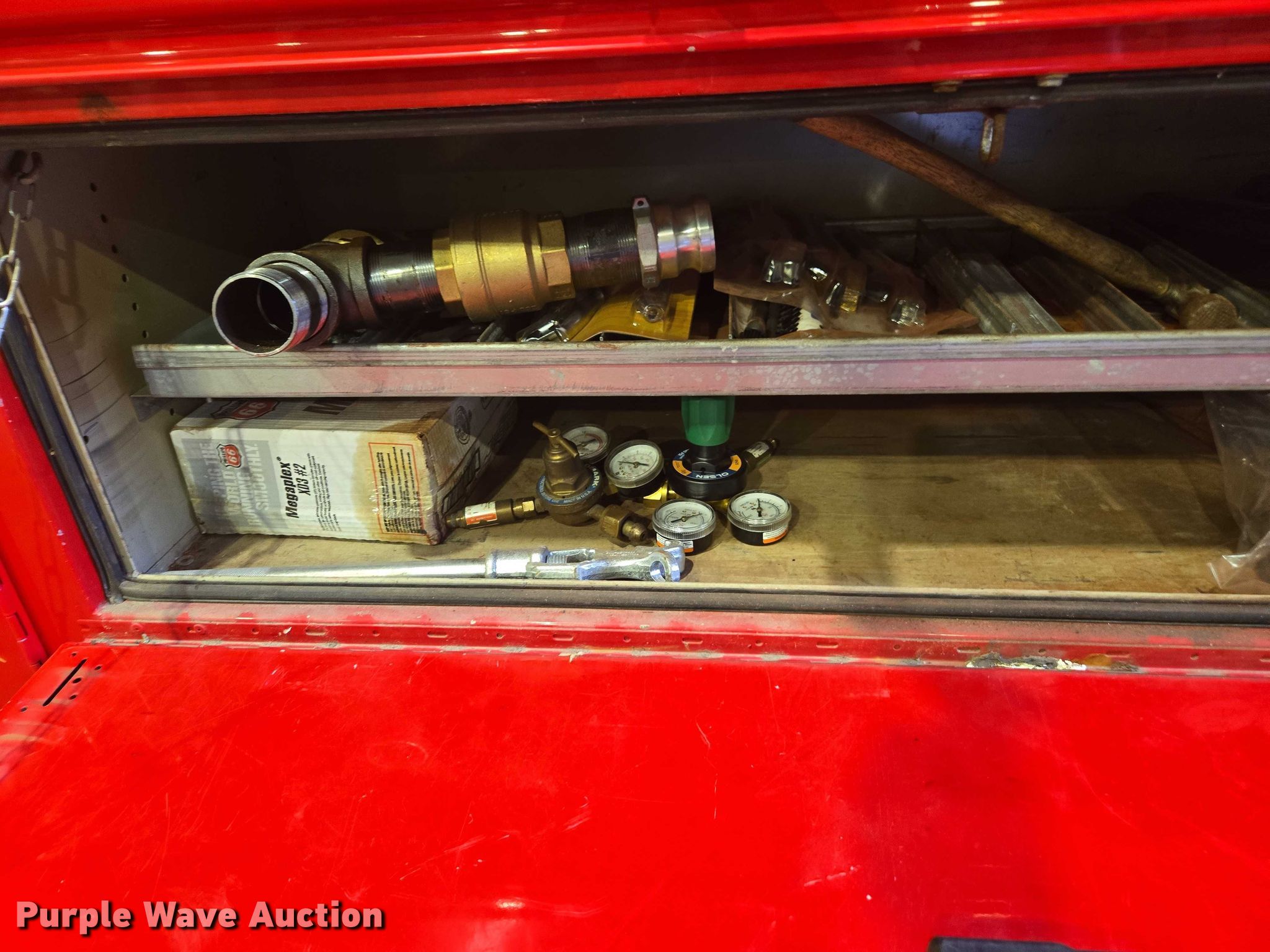 Knapheide hook lift utility / service bed. Serial: 20160227-0451624. Dimensions Overall Length: 14', Width: 96". Engine Kubota, Cylinders: 3, Fuel type: Diesel. Features Boss MechanX air compressor and welder, Fuel tank Capacity: 200 gallons, Enduraplas DEF tank, Oil, Megaplex 120LB grease barrel Pump, Oxy acetylene torch, Length: 11'. Notes Contents included. East End Group Inventory Reduction. Yaphank, NY 11980