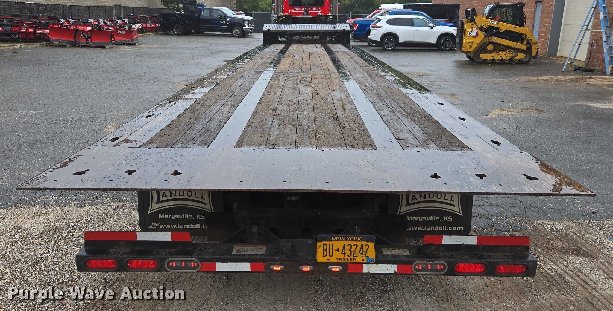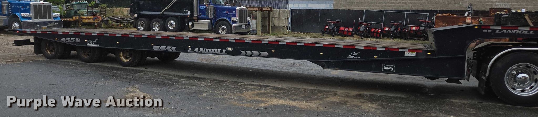 2020 Landoll 455B drop tilt deck equipment trailer. VIN: 1LH455WJ0L1B28111, Unit still in use. Dimensions Overall Length: 53', Width: 102", Top deck length: 9' 6". Features Deck type: Wood, Winch, Hydraulic controls: Manual. Chassis Landing gear: Dual, Suspension: Air, Brakes: Air, Axles: Triple Sliding, GVWR: 132,800 lbs, GAWR: 22,700 lbs. Tires Steel wheels, Size: 235/75R17.5. Notes Contents not included, Semi not included. New York title. Title has a lien that will be released following the close of the auction. Title distribution may be delayed up to 30 days from verification of funds. East End Group Inventory Reduction. Yaphank, NY 11980