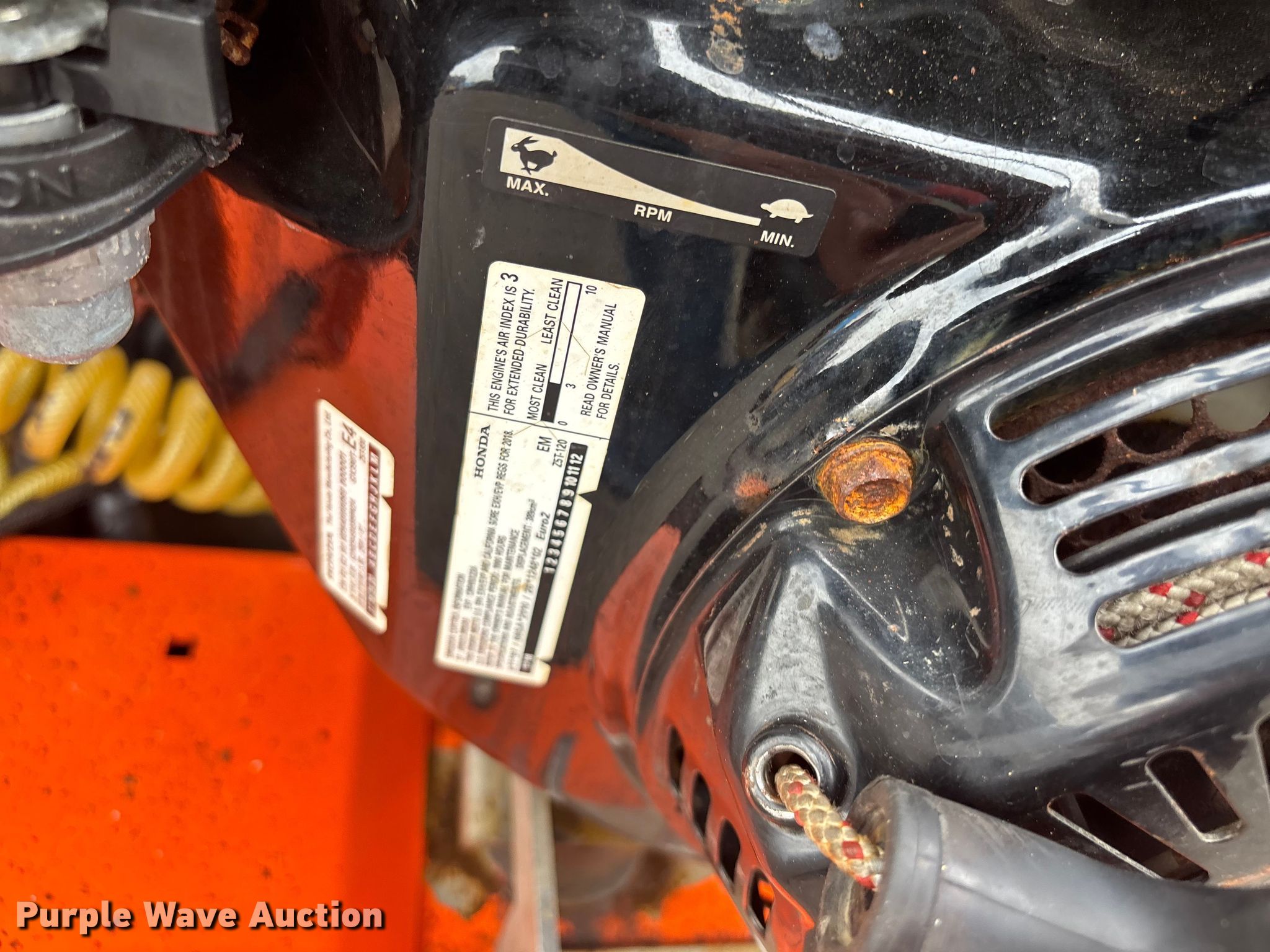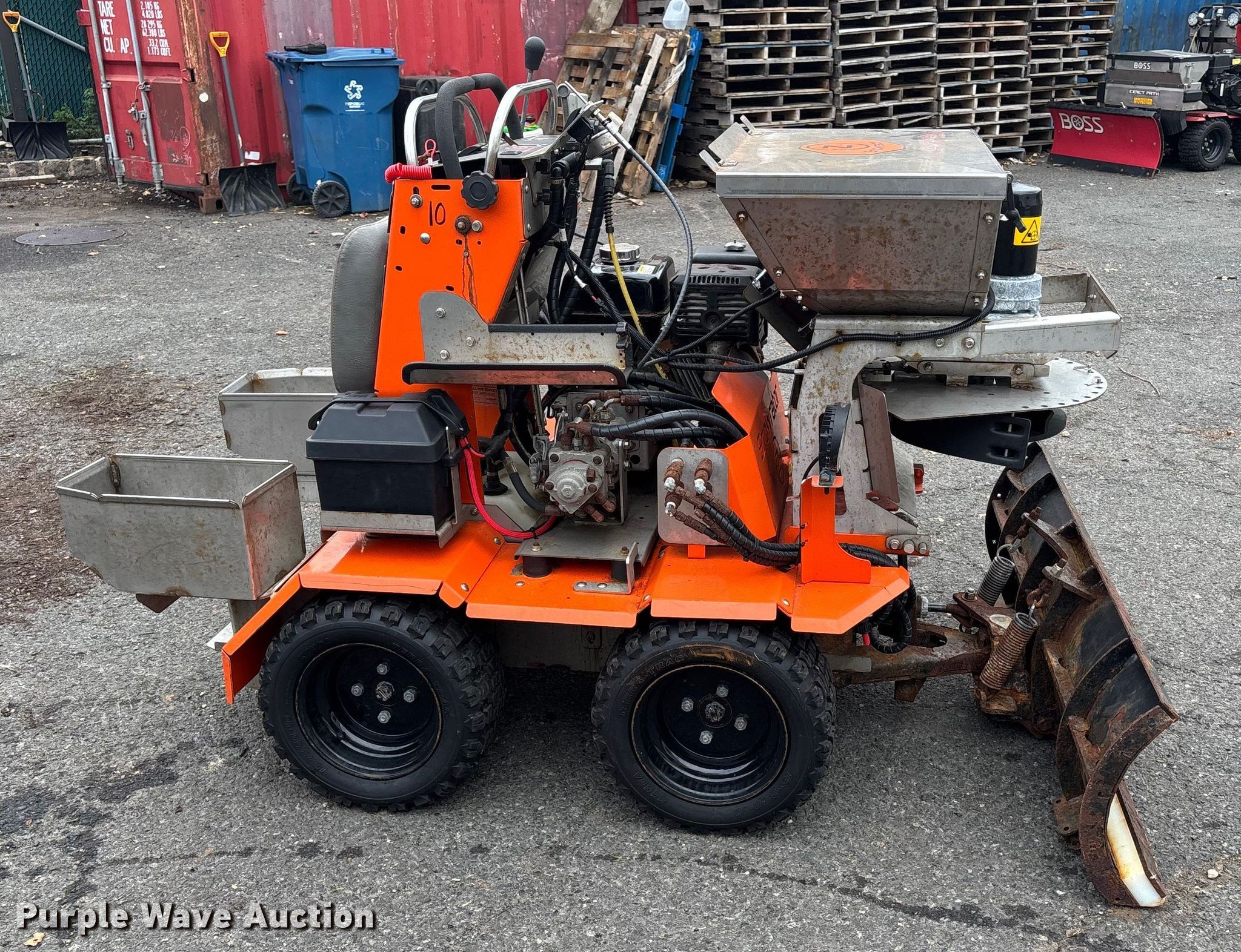 Zx4 Snowrator snow pusher. Hours: Unknown, Miles or hours may vary, unit still in use, Unit #: 10. Engine Honda GX390, Cylinders: 1, Fuel type: Gas. Transmission Hydrostatic. Chassis Four wheel drive. Features Spreader, Snow plow Width: 47", Poly tank Sprayer. Tires Front: 18X8.50-10, Brand: Kenda. Notes Dead battery, Non-operational hour meter. East End Group Inventory Reduction - Open inspection October 16th and 17th from 9 a.m. to 4 p.m.. 601 North Avenue. Plainfield, NJ 07060
