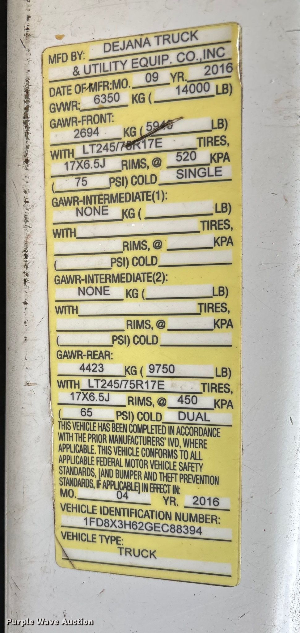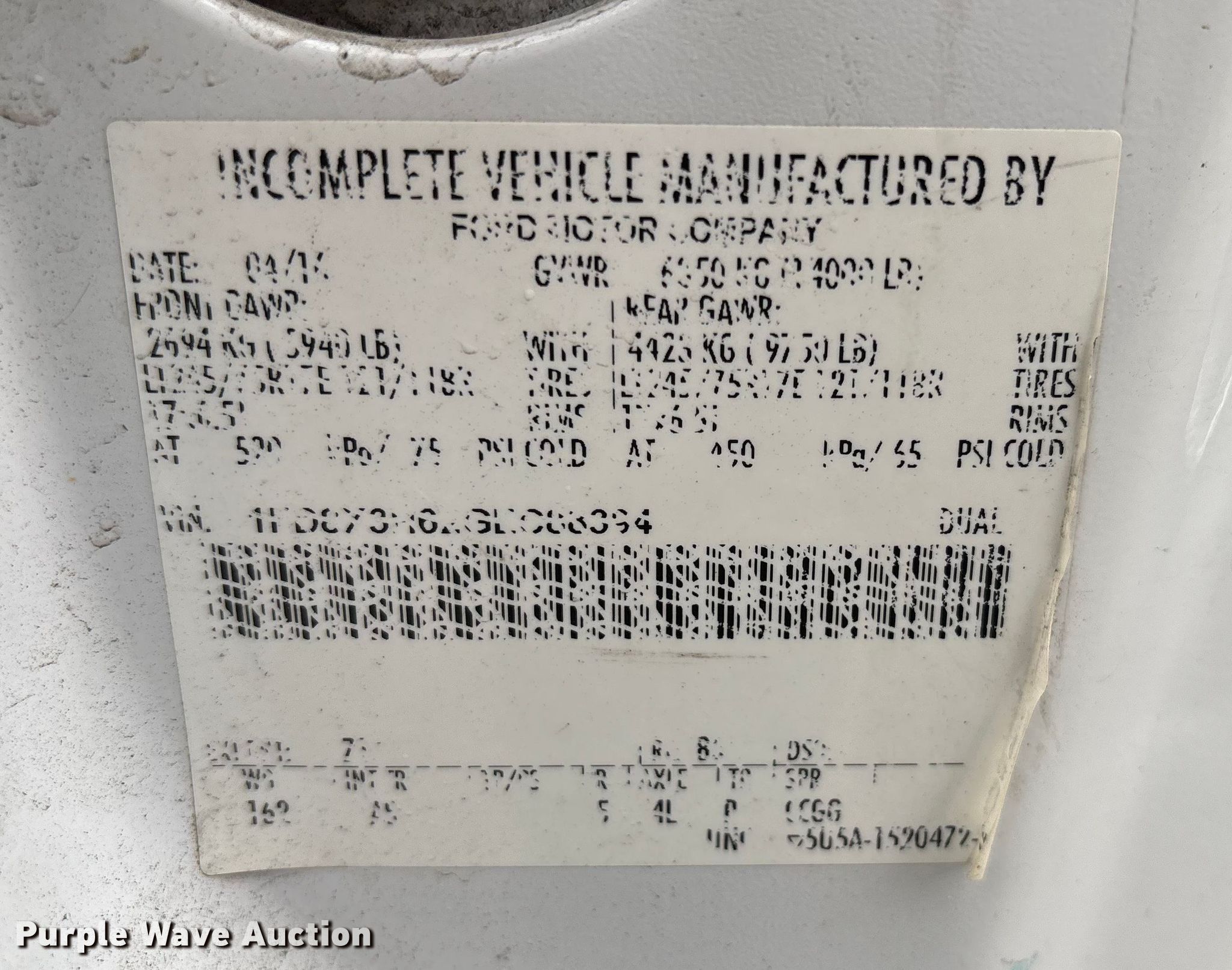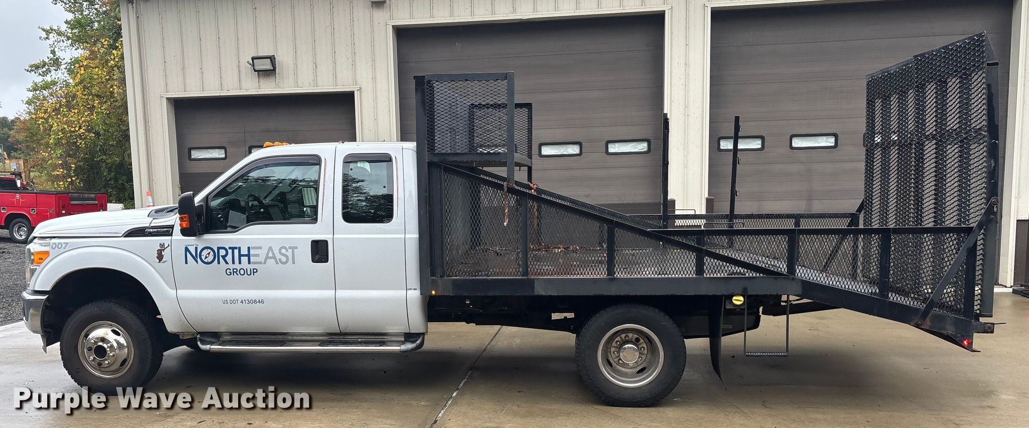 2016 Ford F350 Super Duty flatbed pickup truck. Miles: 125,919 on odometer, Miles or hours may vary, unit still in use, VIN: 1FD8X3H62GEC88394, Unit #: 007. Engine Displacement: 6.2L V8 DOHC, Cylinders: 8, Fuel type: Gas. Transmission Automatic. Chassis Four wheel drive, Axles: Single, Suspension: Spring, Wheelbase: 169". Interior AC, Heat, Power windows, Power locks, Cruise control. Features Bed Flatbed, Length: 12', Width: 96", Ramps: 6' L. Tires Size: LT245/75R17. Notes Dash warning indicator: Check engine, Engine issues, runs rough. New York title. Title has a lien that will be released following the close of the auction. Title distribution may be delayed up to 30 days from verification of funds. East End Group Inventory Reduction - Open inspection October 16th and 17th from 9 a.m. to 4 p.m.. 63 Trigo Drive. Middletown, CT 06457