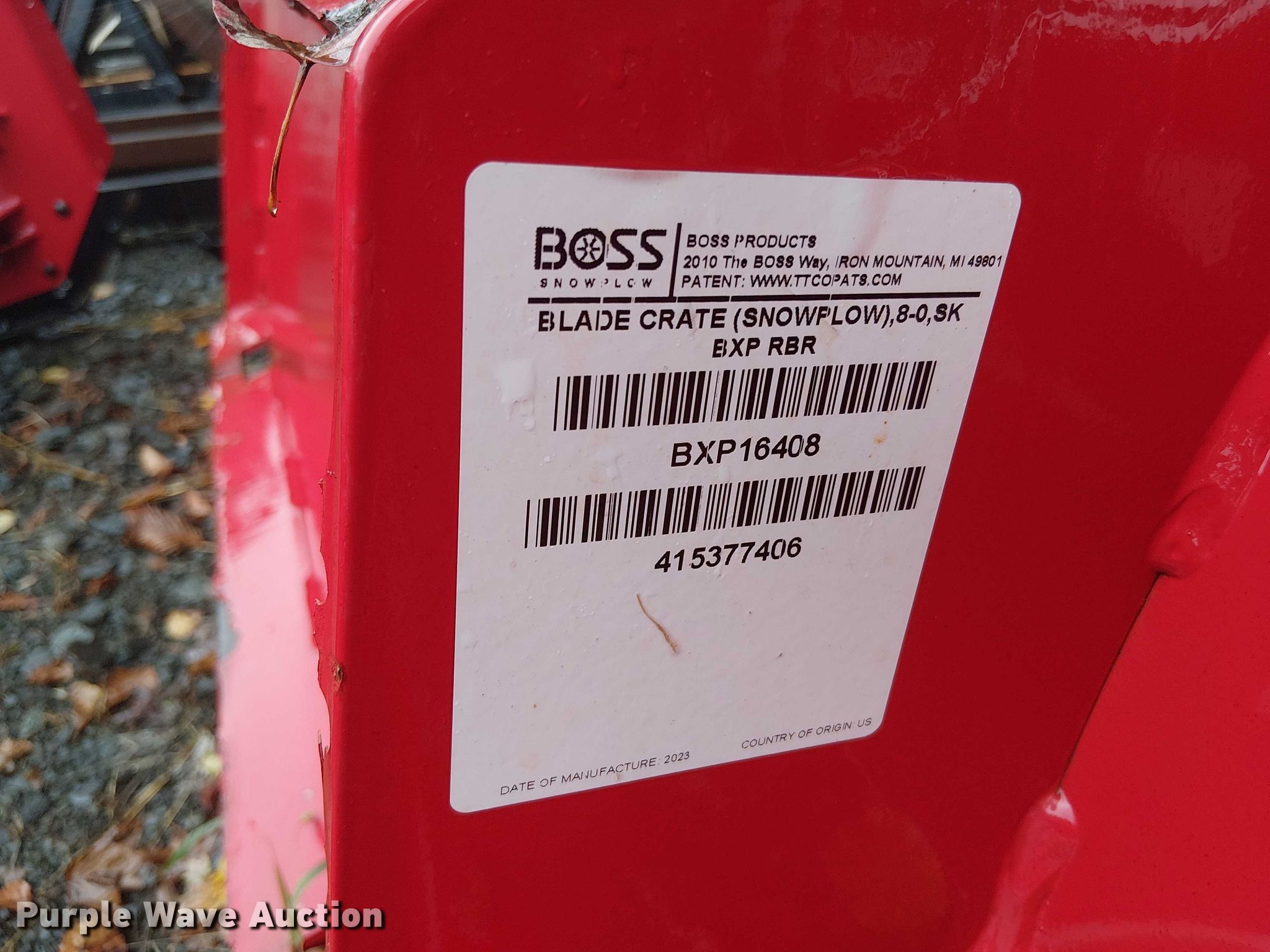 Boss skid steer snow pusher. Serial: 415377406, Width: 96". Representative photos. East End Group Inventory Reduction - Open inspection October 16th and 17th from 9 a.m. to 4 p.m.. Middletown, CT 06457