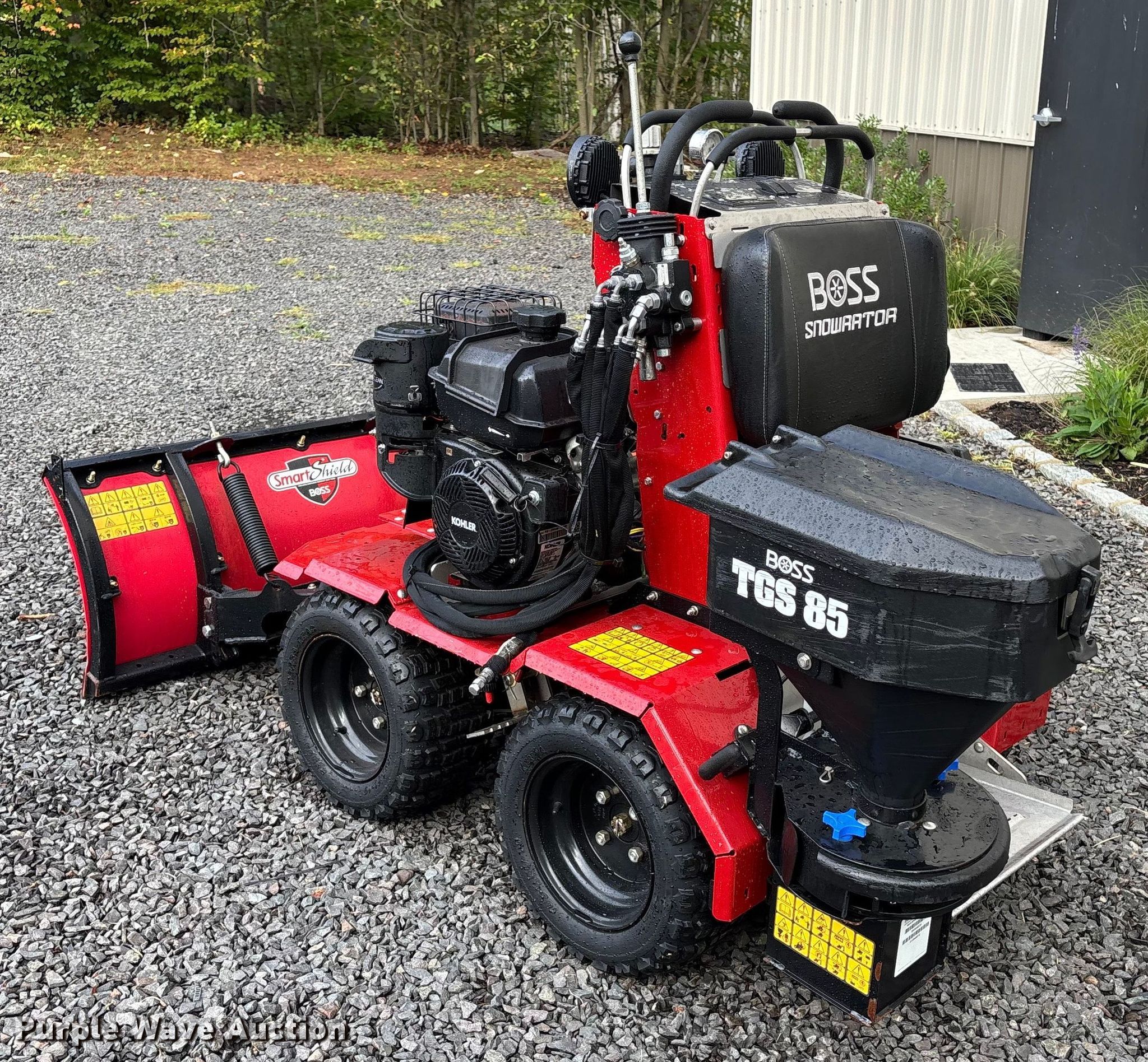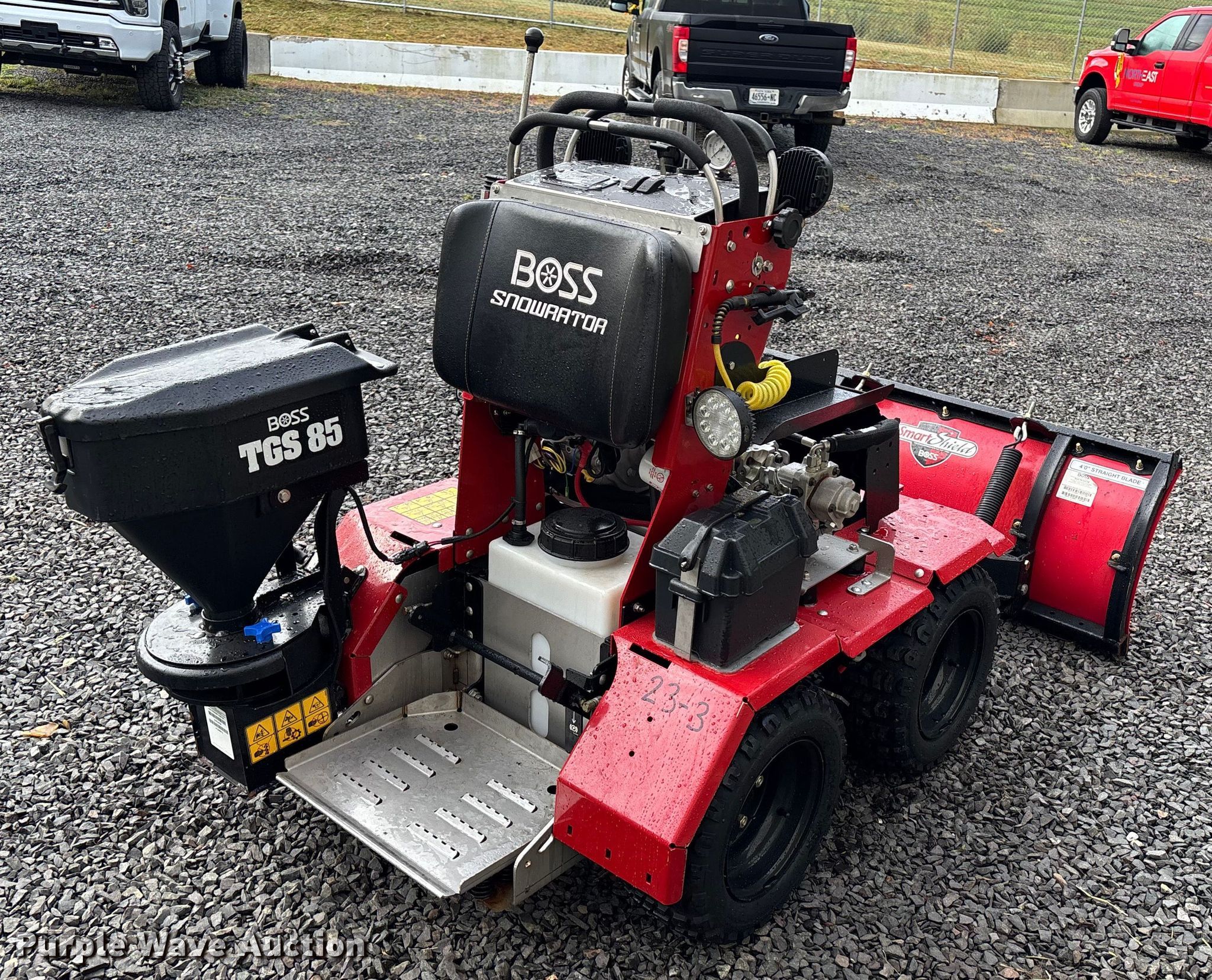 2022 Boss Snowrator snow pusher. Hours: 45 on meter, Serial: 412848030, Unit #: 23-2. Engine Kohler CH440, Cylinders: 1, Fuel type: Gas. Transmission Hydrostatic. Chassis Four wheel drive. Features Boss TGS spreader, Snow plow Width: 48". Tires Size: 18X8.5-10, Brand: Kenda. East End Group Inventory Reduction - Open inspection October 16th and 17th from 9 a.m. to 4 p.m.. 63 Trigo Drive. Middletown, CT 06457