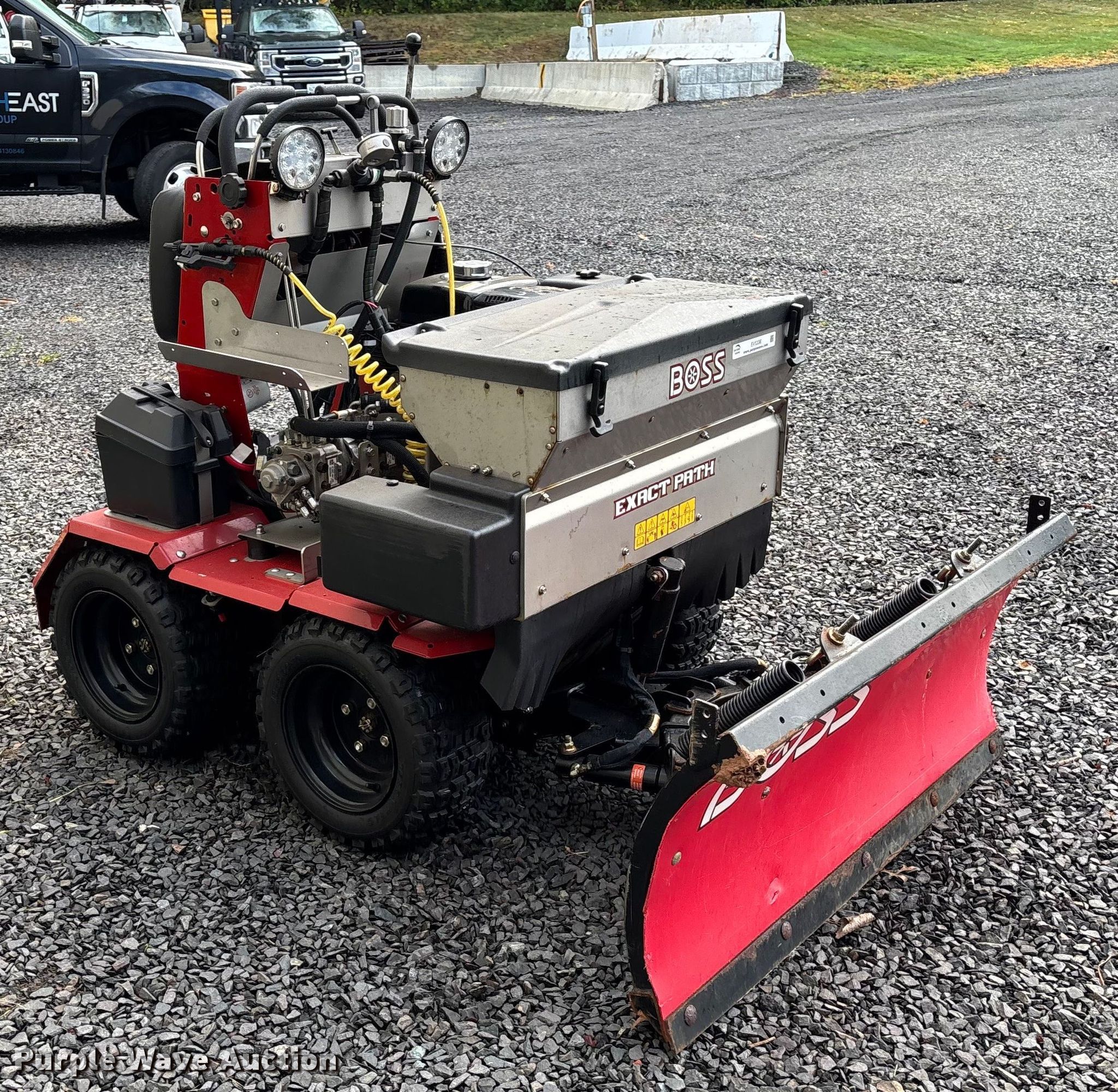 2022 Boss Snowrator snow pusher. Hours: 54 on meter, Miles or hours may vary, unit still in use, Serial: 410290464, Unit #: CT. Engine Honda GX390, Cylinders: 1, Fuel type: Gas. Transmission Hydrostatic. Chassis Four wheel drive. Features Boss Exact Path spreader, Snow plow, Width: 48". Tires Size: 18X8.50-10, Brand: Kendra. Notes Dead battery, Jump start required during on-site data collection. East End Group Inventory Reduction - Open inspection October 16th and 17th from 9 a.m. to 4 p.m.. 63 Trigo Drive. Middletown, CT 06457