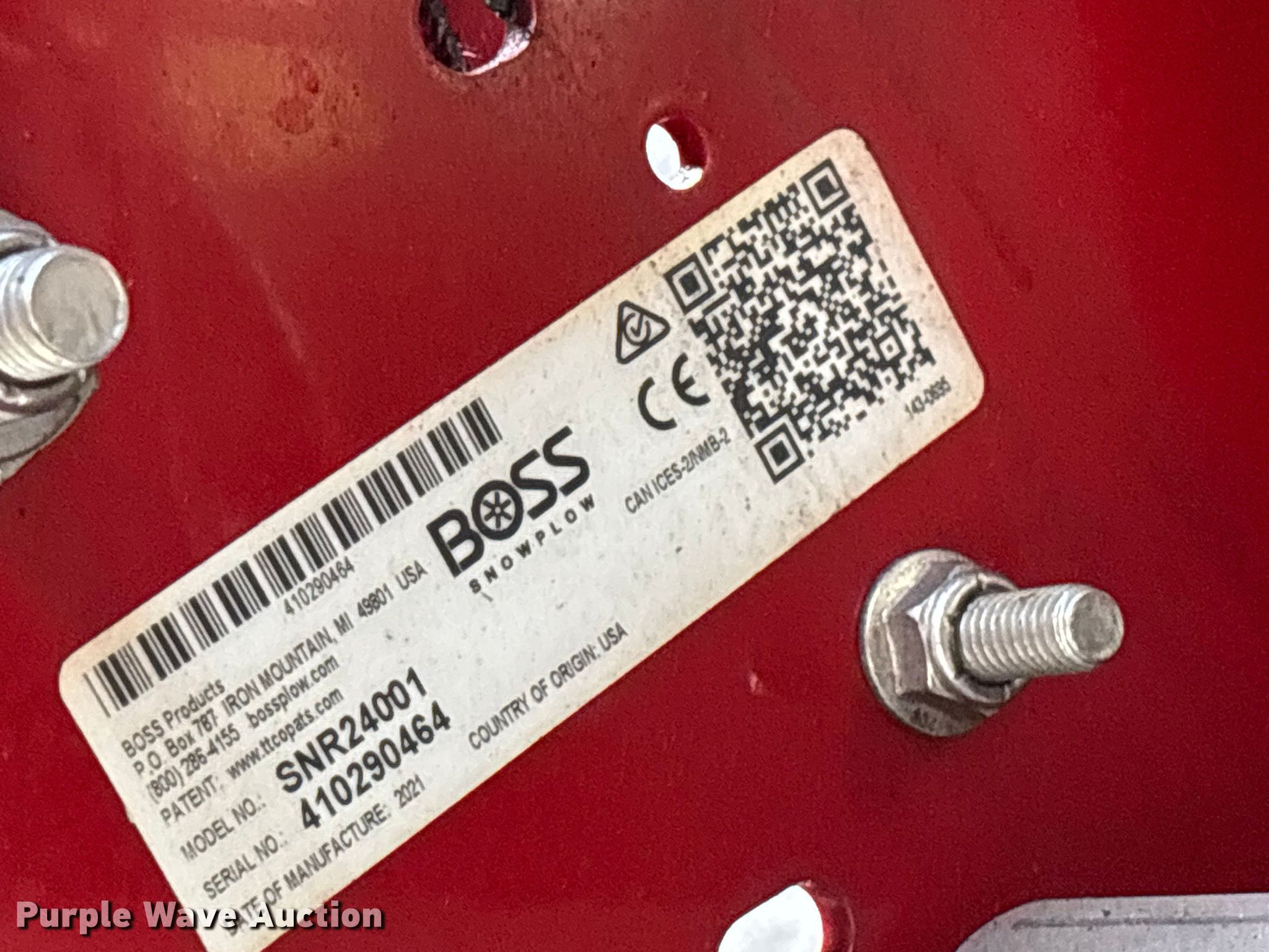 Purple Wave is selling a used Lawn and Garden in Connecticut. This item is a 2022 Boss Snowrator snow pusher with the following: Hours: 54 on meter, Miles or hours may vary, unit still in use, Serial: 410290464, Unit #: CT