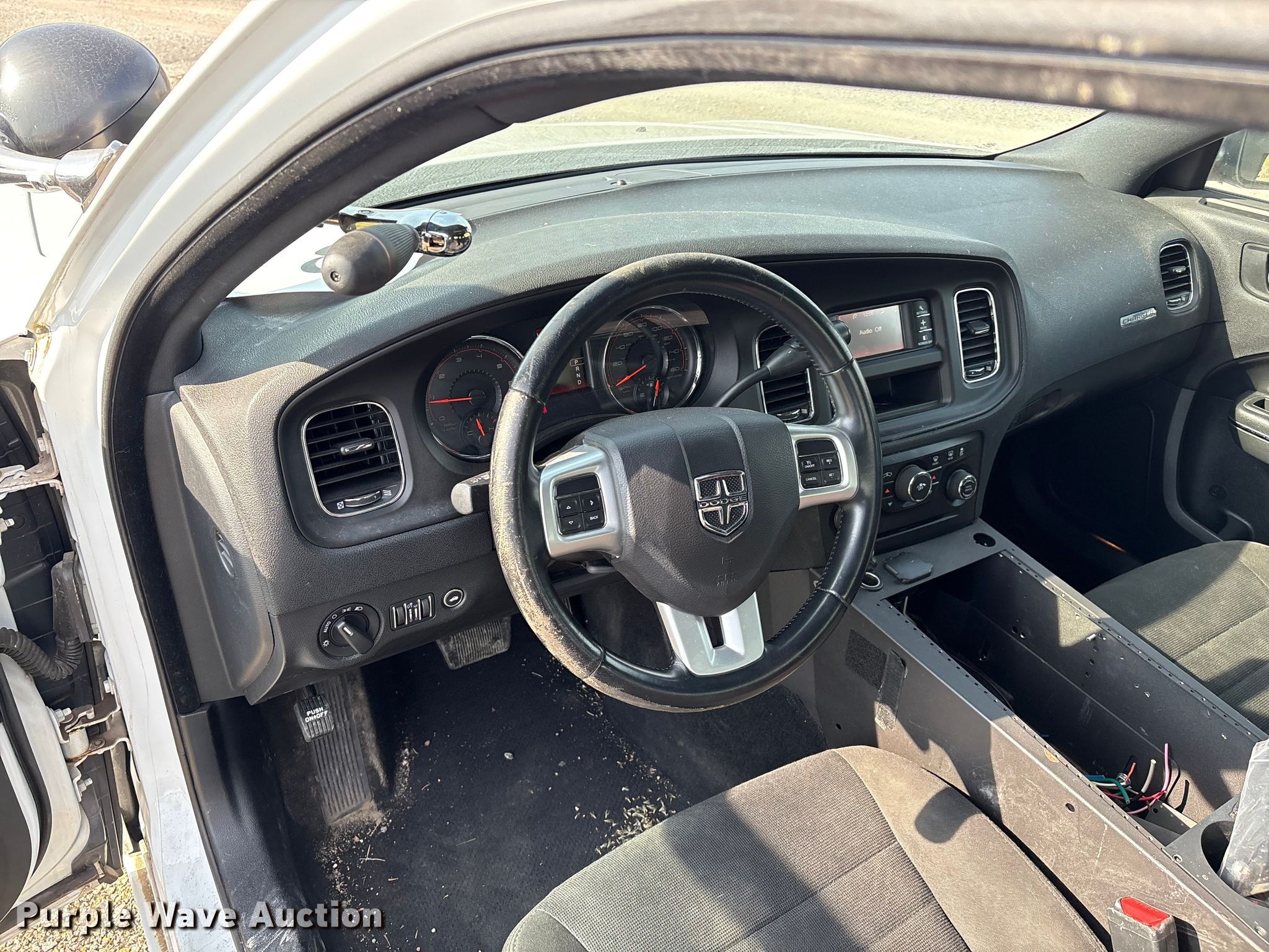 2014 Dodge Charger Police. Miles: 85,173 on odometer, VIN: 2C3CDXAG9EH366973. Engine Displacement: 3.6L V6 DOHC, Cylinders: 6, Fuel type: Gas. Transmission Automatic. Interior AC, Heat, Seat: Power driver, Power windows, Power locks, Cruise control. Tires Size: 225/60R18. Notes Center console missing, Dead battery, Jump start required during on-site data collection. Law enforcement and emergency equipment will be removed prior to auction. Includes but not limited to decals, two-way radio, spotlight, emergency lights and siren, firearm rack, and camera.. Oklahoma title. Title distribution may be delayed up to 14 days from verification of funds. City of Sapulpa, OK. Sapulpa, OK 74066