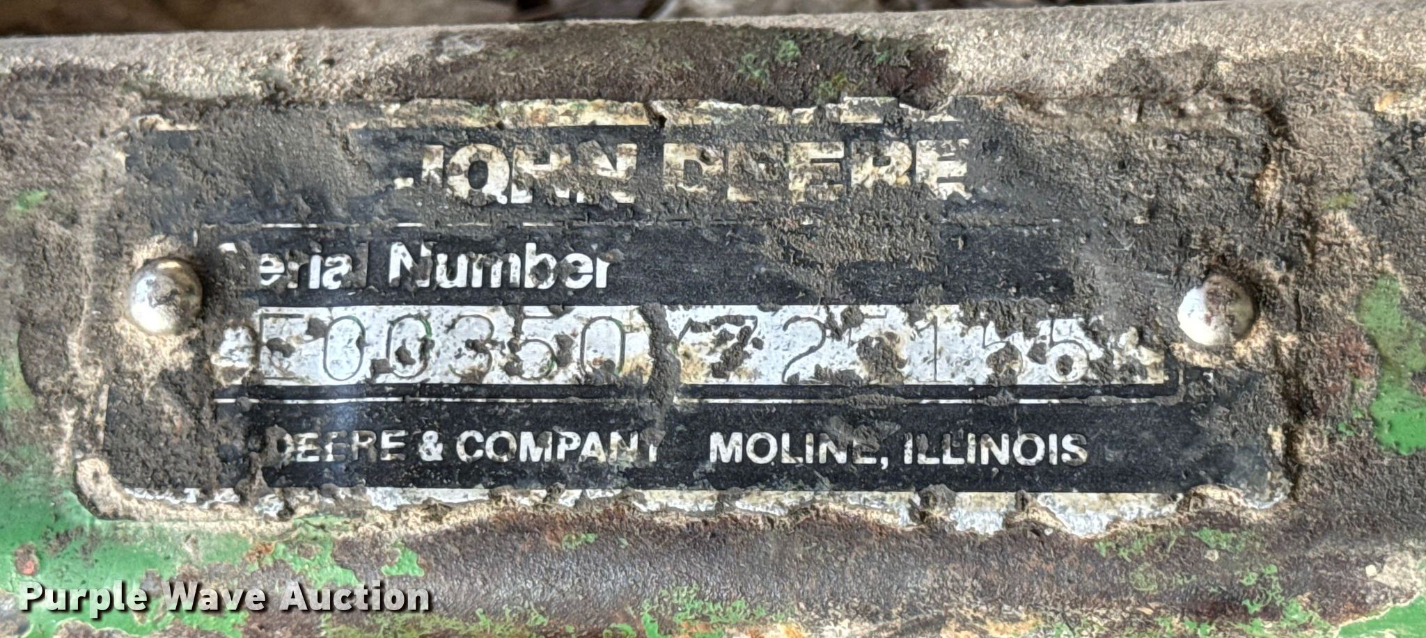 Take a look at this used John Deere 350 sickle mower being sold on October 28th, 2025 in the Tuesday October 28 Government Auction made by John Deere. Take a look at all of the item information below or take a look at similar auctions for Hay Equipment.