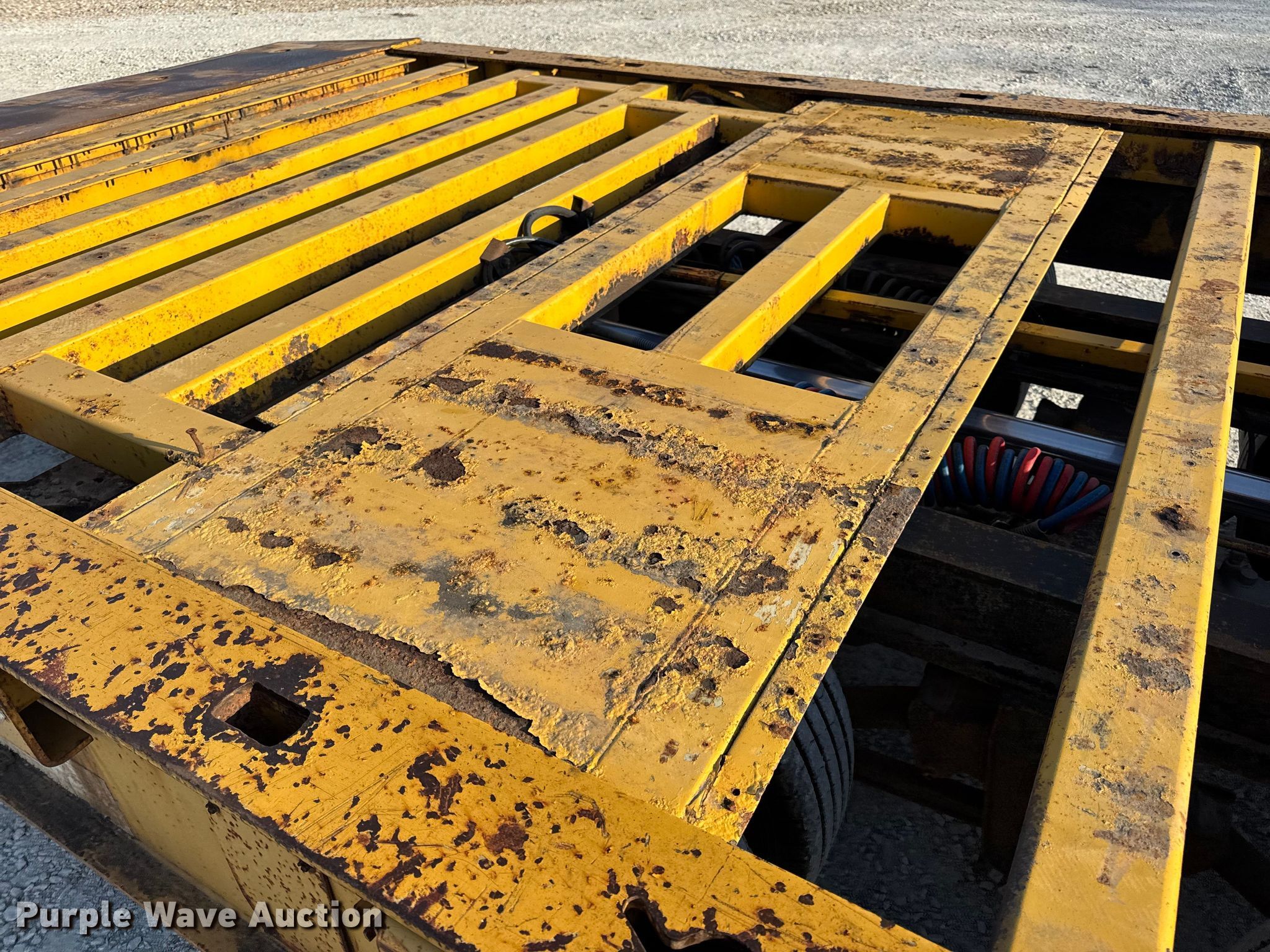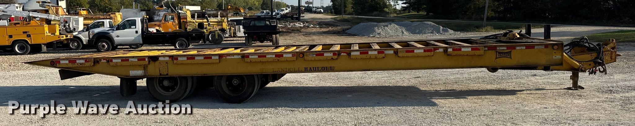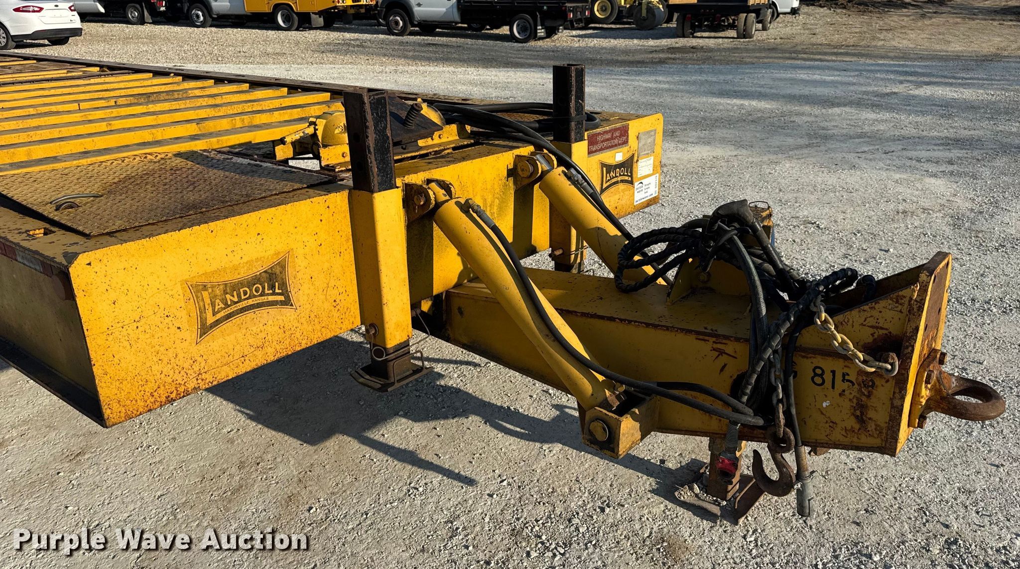 1996 Landoll tilt deck equipment trailer. VIN: 1LH345JH4T1008019, Unit #: G8158. Dimensions Overall Length: 36' 5", Width: 96", Deck Length: 28' 8", Width: 96", Tail length: 29". Chassis Hitch: Pintle, Landing gear: Single, Suspension: Spring, Brakes: Air, Axles: Tandem Sliding, GVWR: 50,000 lbs, GAWR: 20,000 lbs. Tires Steel wheels, Size: 235/75R17.5. Notes Unknown operating condition of hydraulics, Deck boards missing. Missouri title. Title distribution may be delayed up to 14 days from verification of funds. Missouri Department of Transportation. New Bloomfield, MO 65063