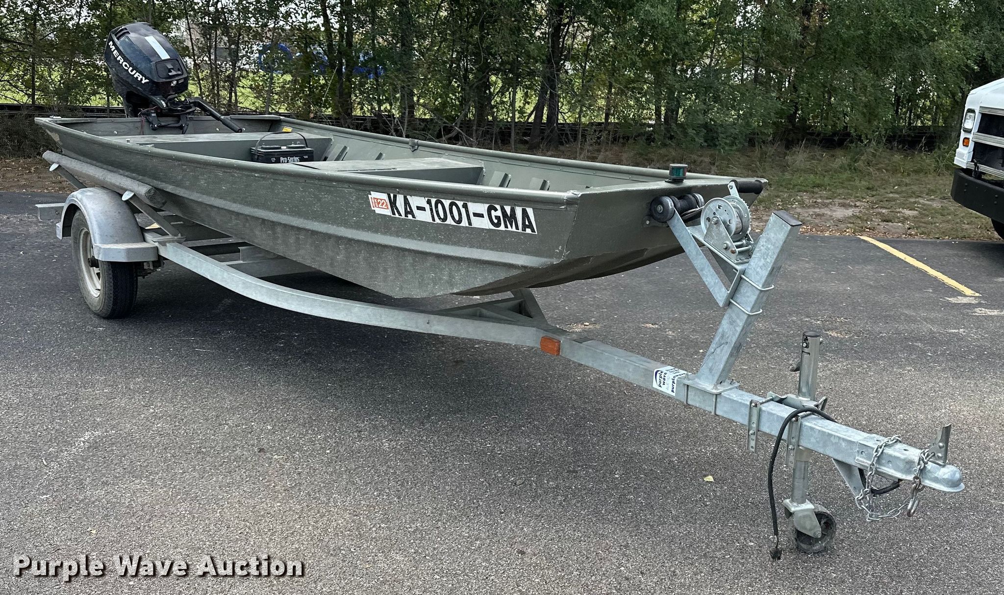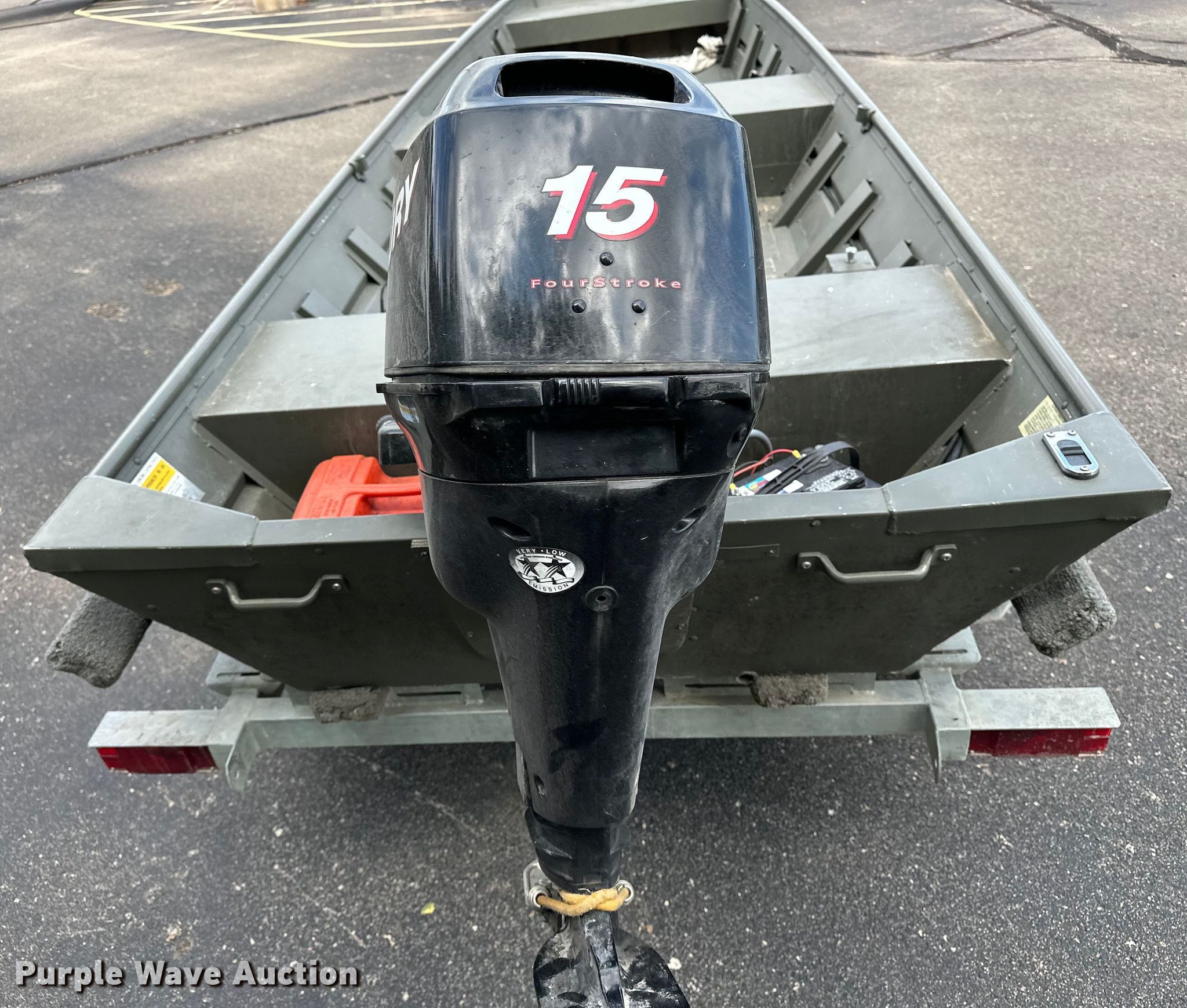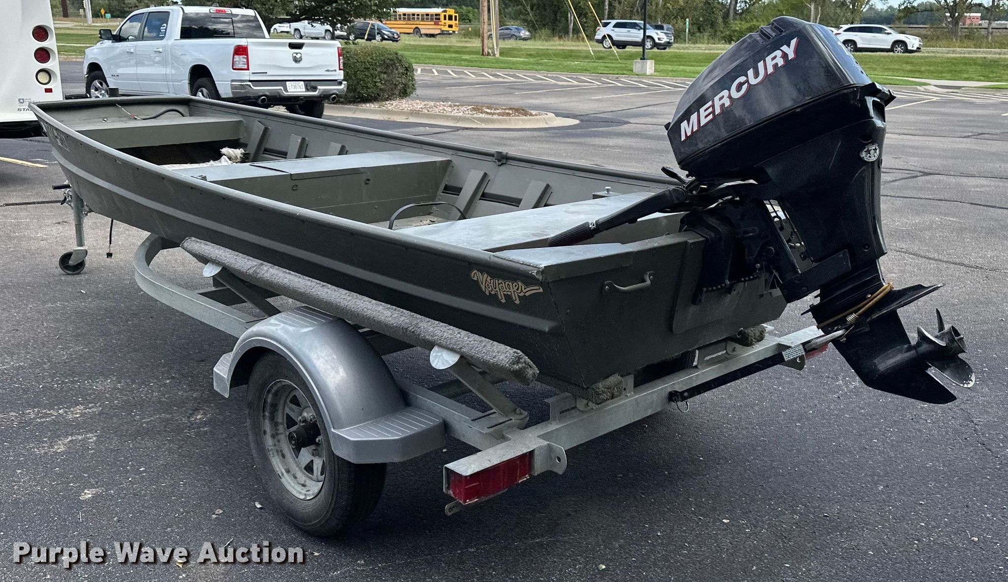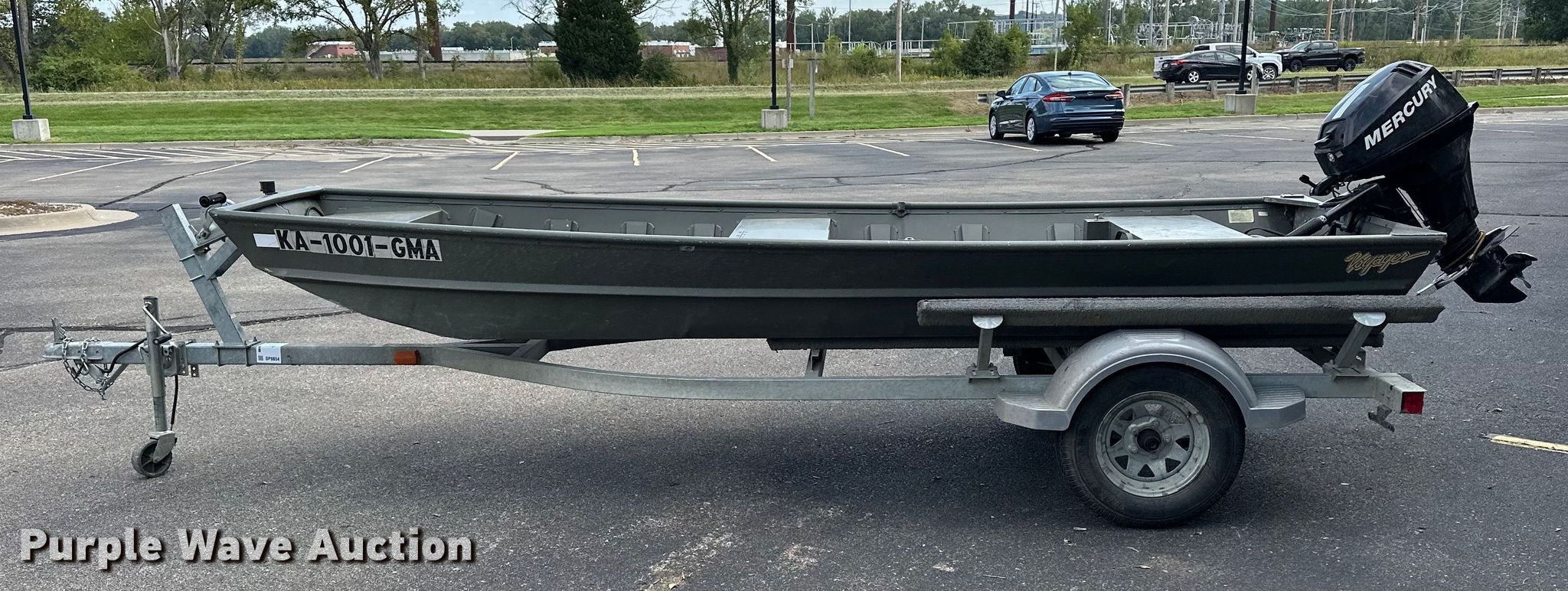 Voyager 1456 Jon boat. Hours: Unknown, Length: 14', Unit #: 27872. Engine Engine type: Outboard, Mercury, Cylinders: 2, Fuel type: Gas, HP: 15. Operators station Capacity Person: 3, 395 lbs. Trailer Overall length: 17', Overall width: 66", Ball hitch size: 2", Axles: Single, Tire size: 175/80R13. Notes Unknown operating condition. Boat: Transfer of ownership documentation will be a bill of sale. Motor: Transfer of ownership documentation will be a bill of sale. Trailer: Transfer of ownership documentation will be a bill of sale. Kansas Wildlife & Parks. Manhattan, KS 66502