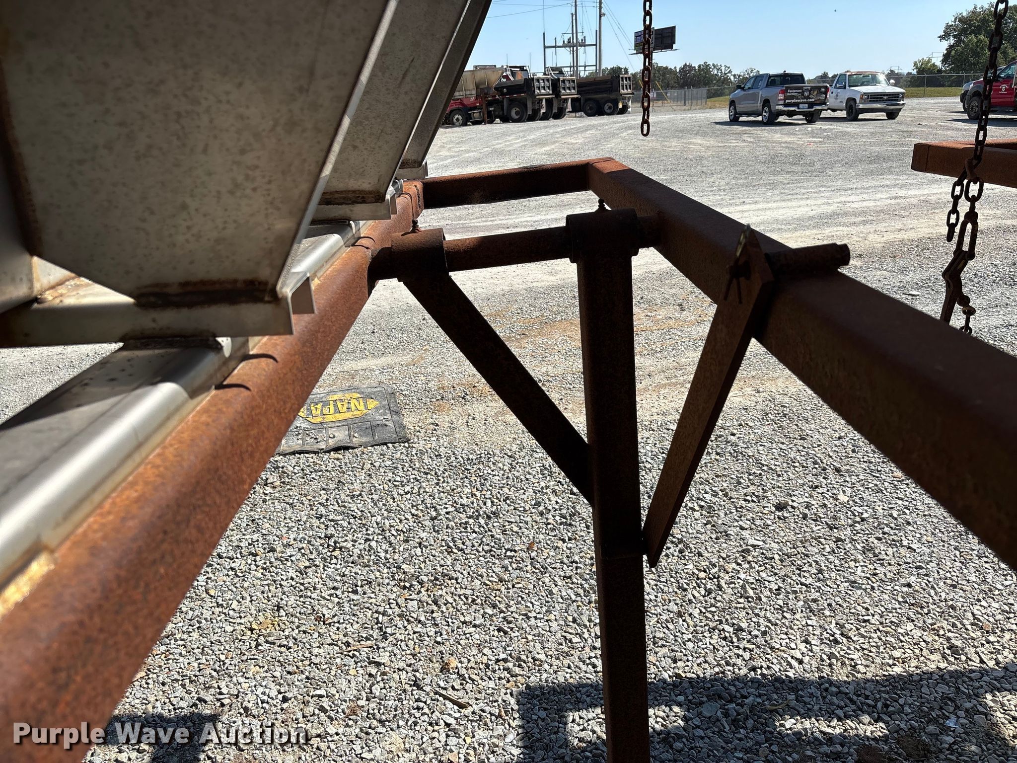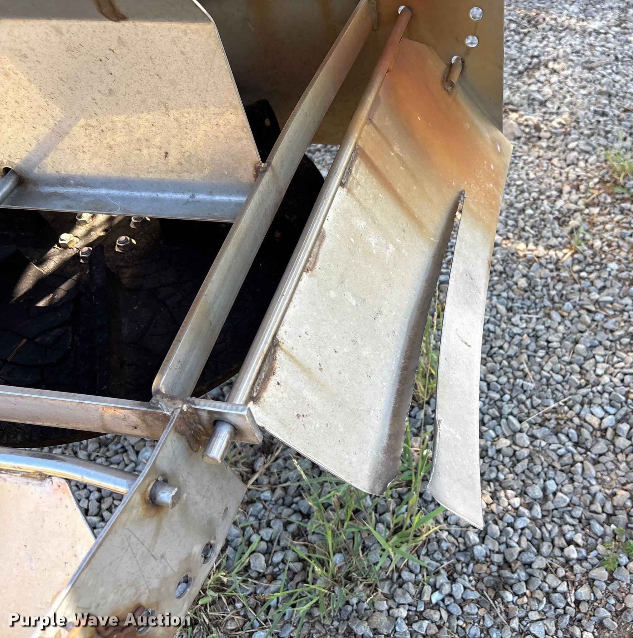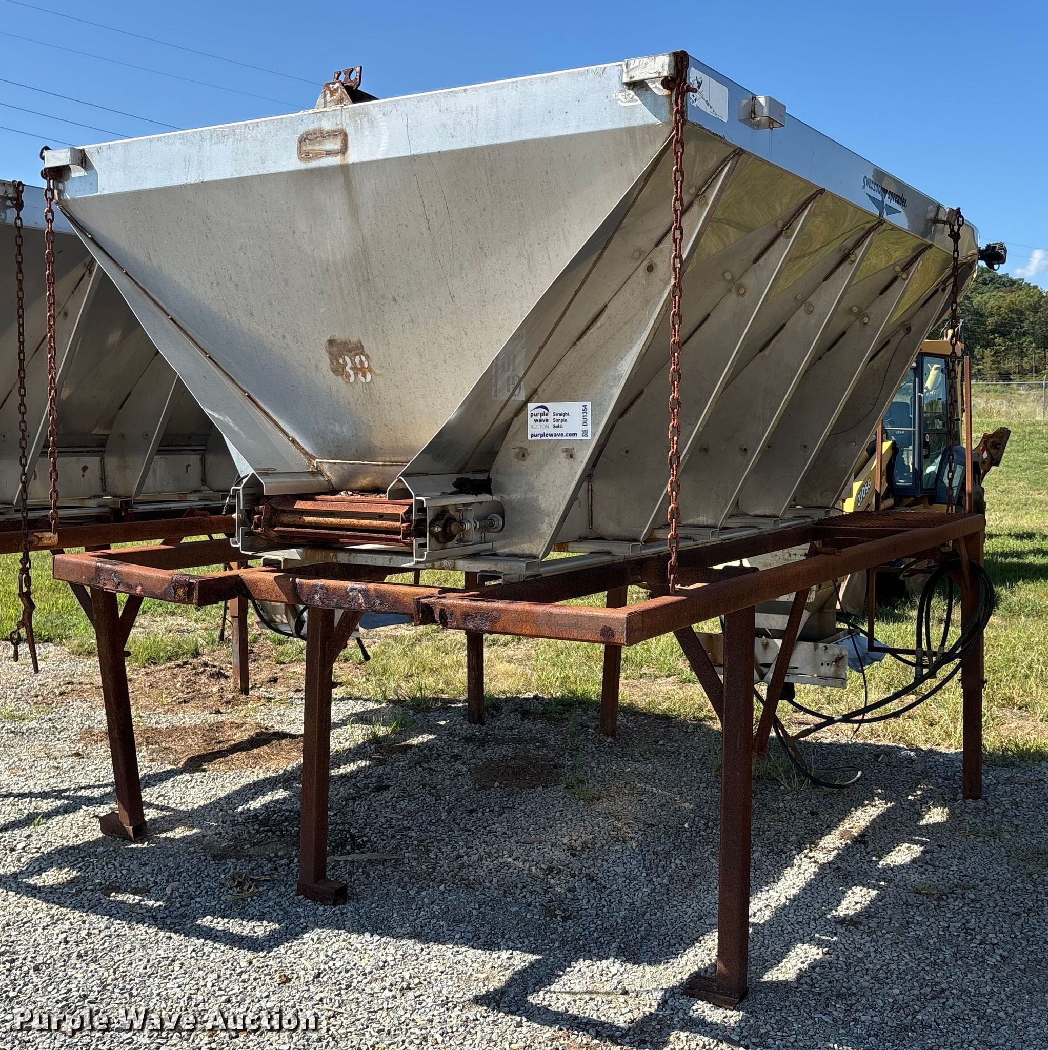 Purple Wave is selling a used Truck Part and Attach. in Missouri. This item is a Swenson spreader with the following: Unit #: 38, Length: 9' 5", Width: 6' 5", Spinner: 20", Storage rack included