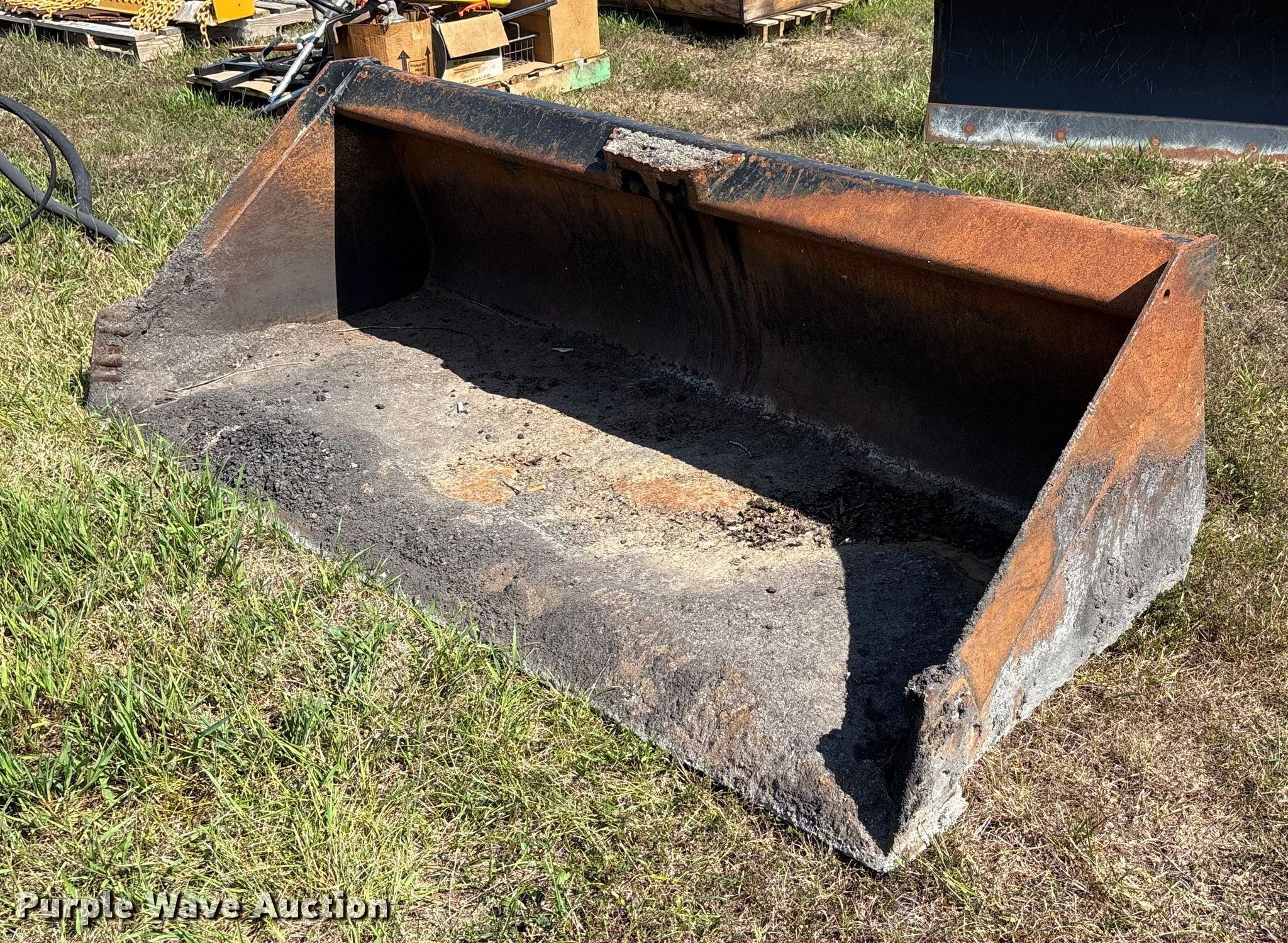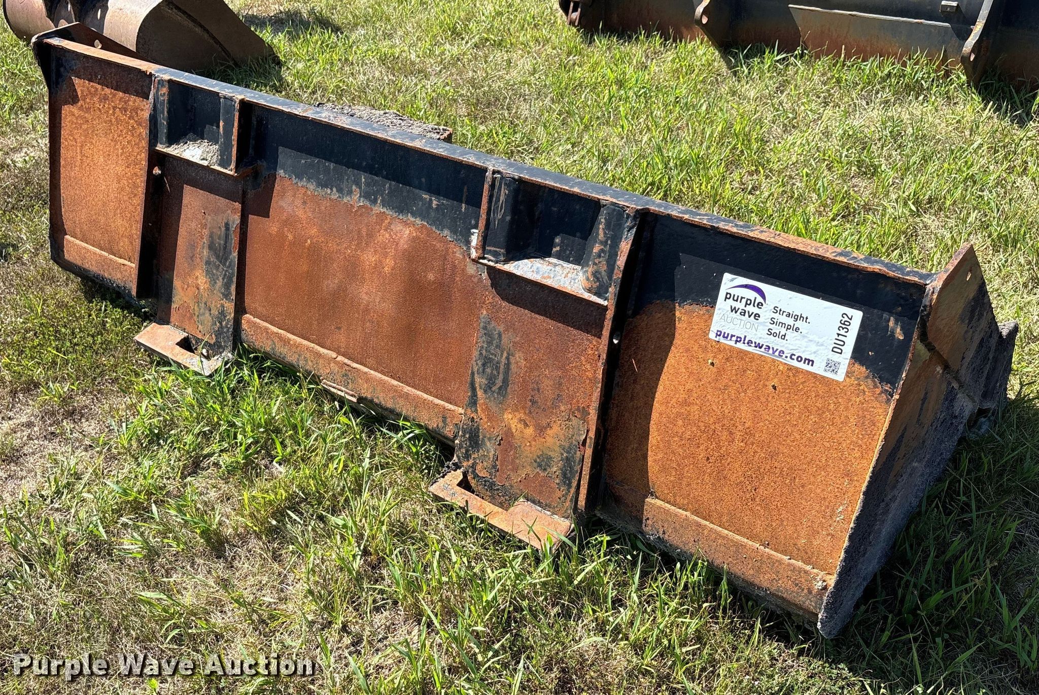 Purple Wave is selling a used Skid Steer Attach. in Missouri. This item is a Skid steer attachments with the following: Skid steer bucket, Width: 81", Cutting edge: Weld-on, Edge skid steer snow blade, Width: 72"