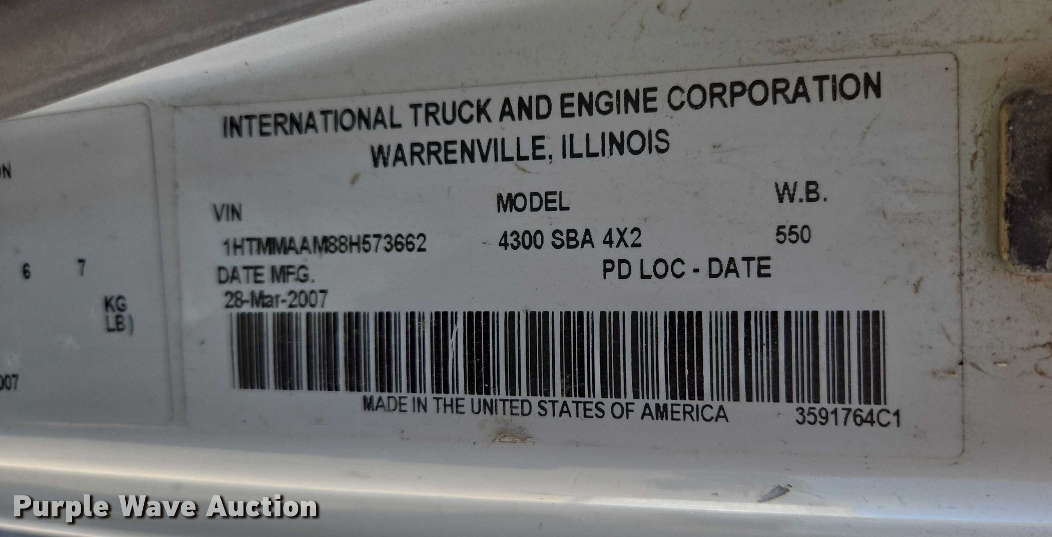 Purple Wave is selling a used Box Truck in South Dakota. This item is a 2008 International 4300 box truck with the following: Miles: 53,224 on odometer, Hours: 877 on meter, VIN: 1HTMMAAM88H573662