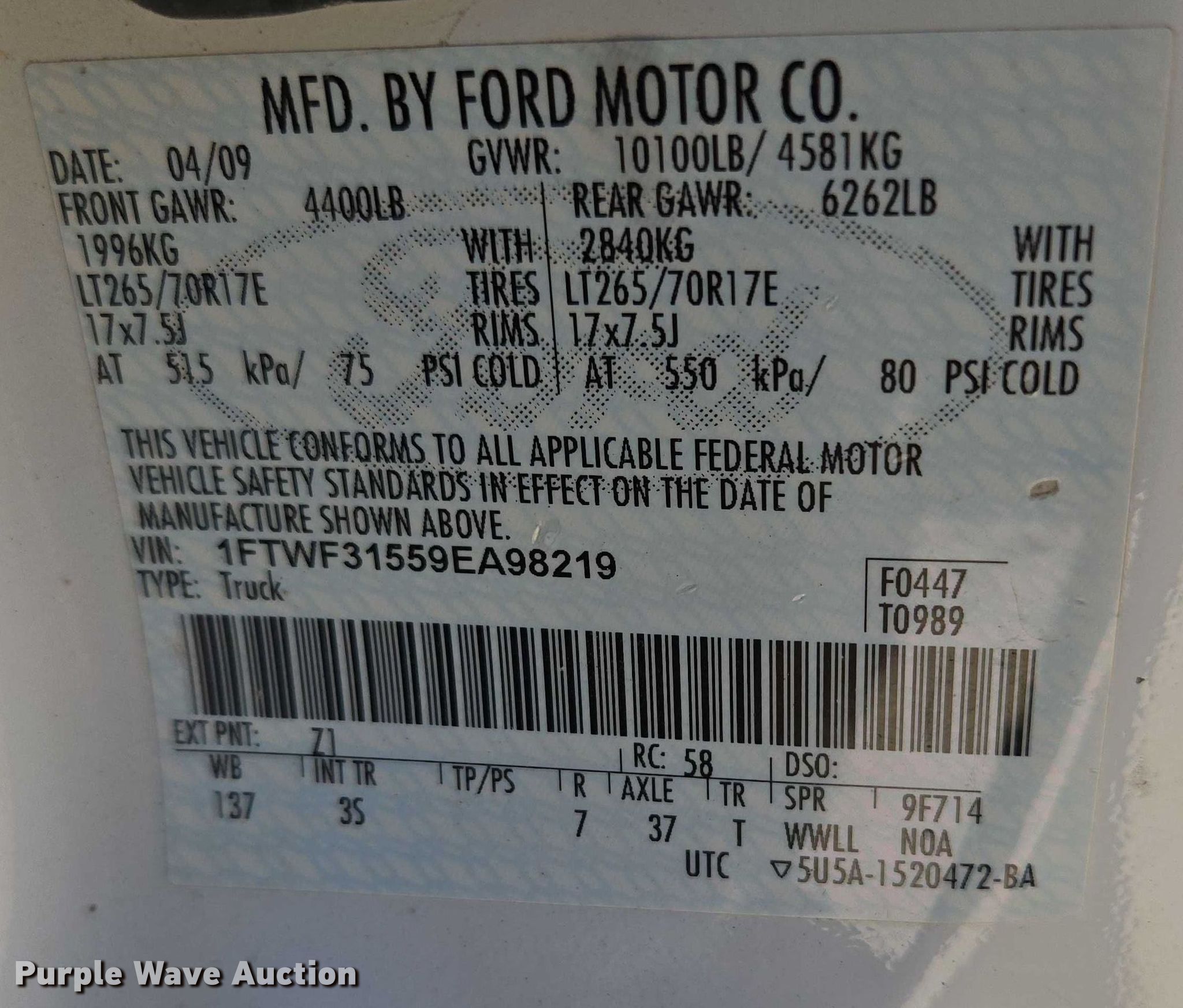 - VIN: 1FTWF31559EA98219
