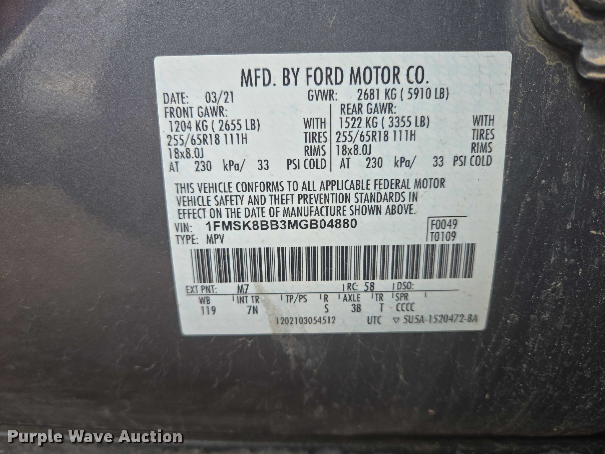 Purple Wave is selling a used Passenger Vehicle in South Dakota. This item is a 2021 Ford Explorer SUV with the following: Miles: 89,379 on odometer, VIN: 1FMSK8BB3MGB04880, Unit #: BJ273