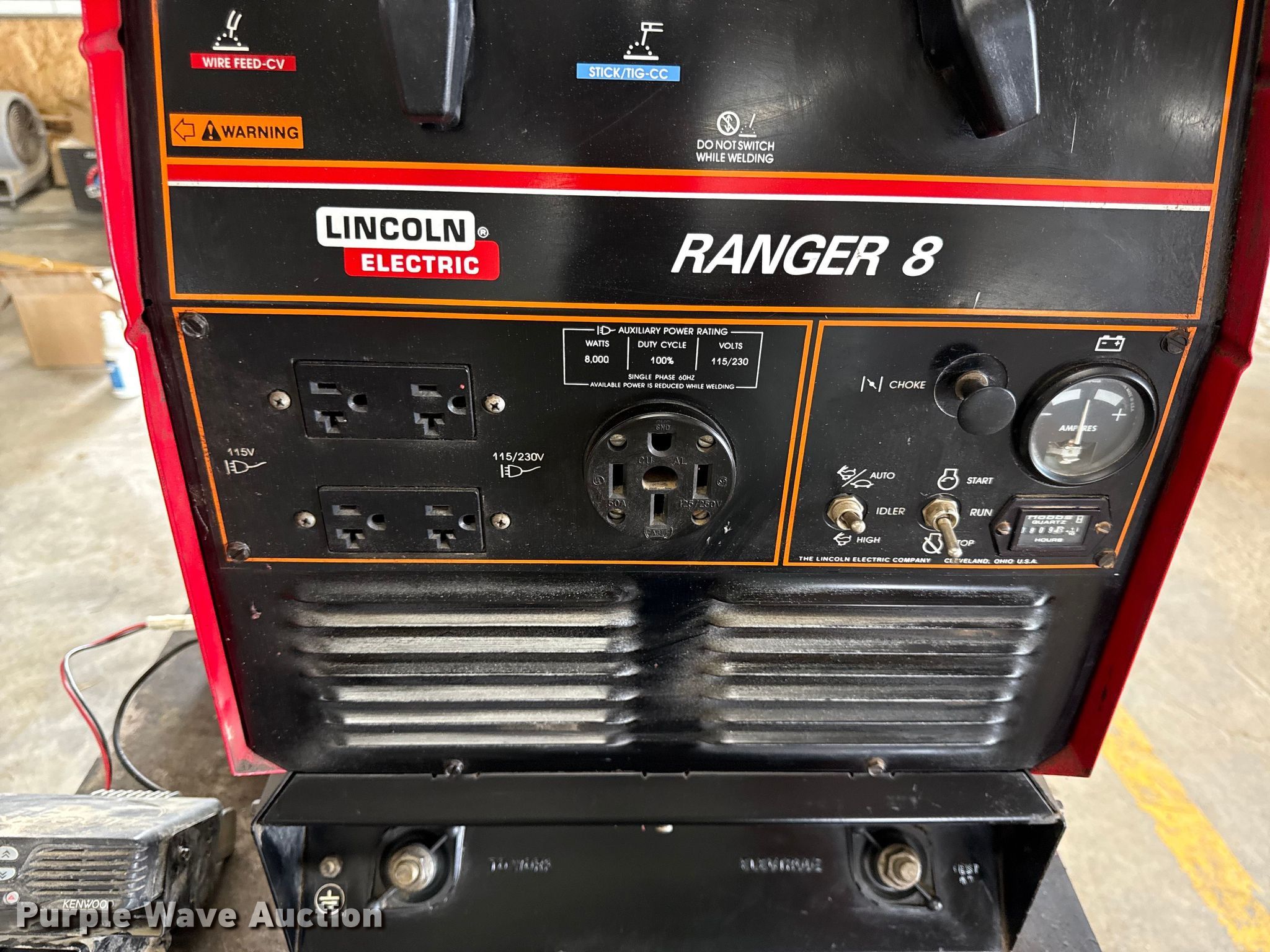 Purple Wave is selling a used Welder (Manual) in Kansas. This item is a Lincoln Ranger 8 welder with the following: Hours: 809 on meter