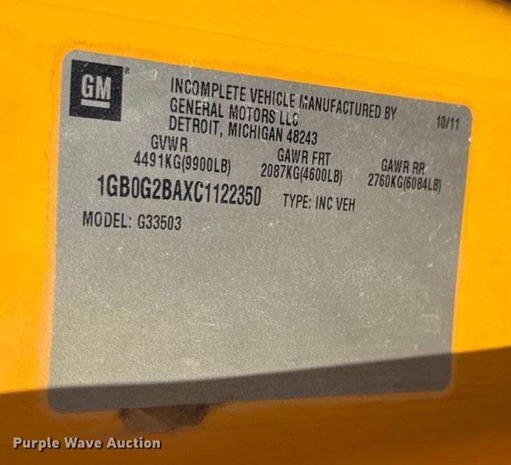 Take a look at this used 2012 Chevrolet Express school bus being sold on October 28th, 2025 in the SOLD! October 28 Government Auction made by Chevrolet. Take a look at all of the item information below or take a look at similar auctions for Transit Vehicles.