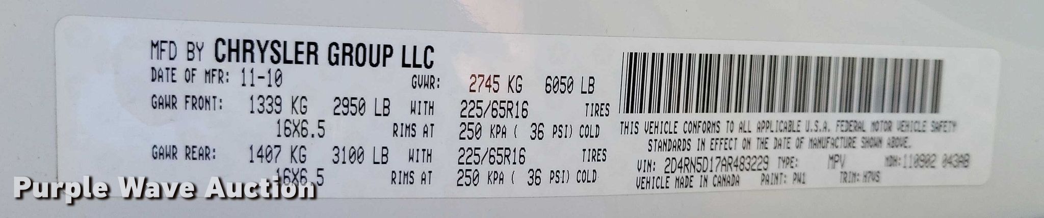 - VIN: 2D4RN5D17AR483229