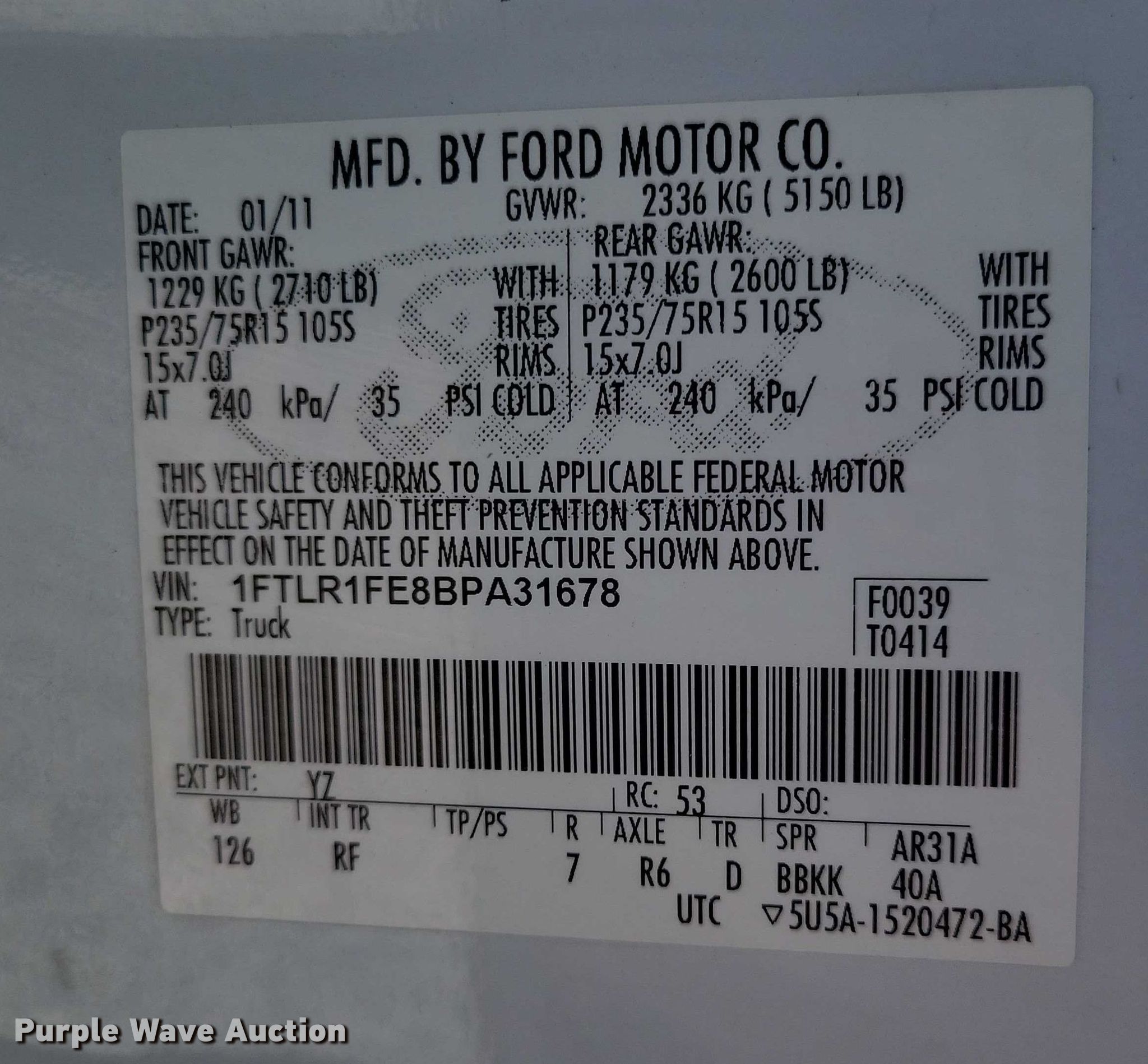 2011 Ford Ranger SuperCab pickup truck. Miles: 141,024 on odometer, VIN: 1FTLR1FE8BPA31678, Unit #: 020585-25. Engine Displacement: 4.0L V6 SOHC, Cylinders: 6, Fuel type: Gas. Transmission Automatic, Four wheel drive. Interior AC, Heat. Tires Size: 235/75R15. Notes Jump start required during on-site data collection. Nebraska title. Title distribution may be delayed up to 14 days from verification of funds. City of Lincoln Police Garage. Lincoln, NE 68528