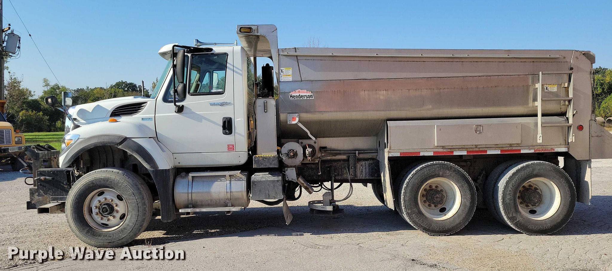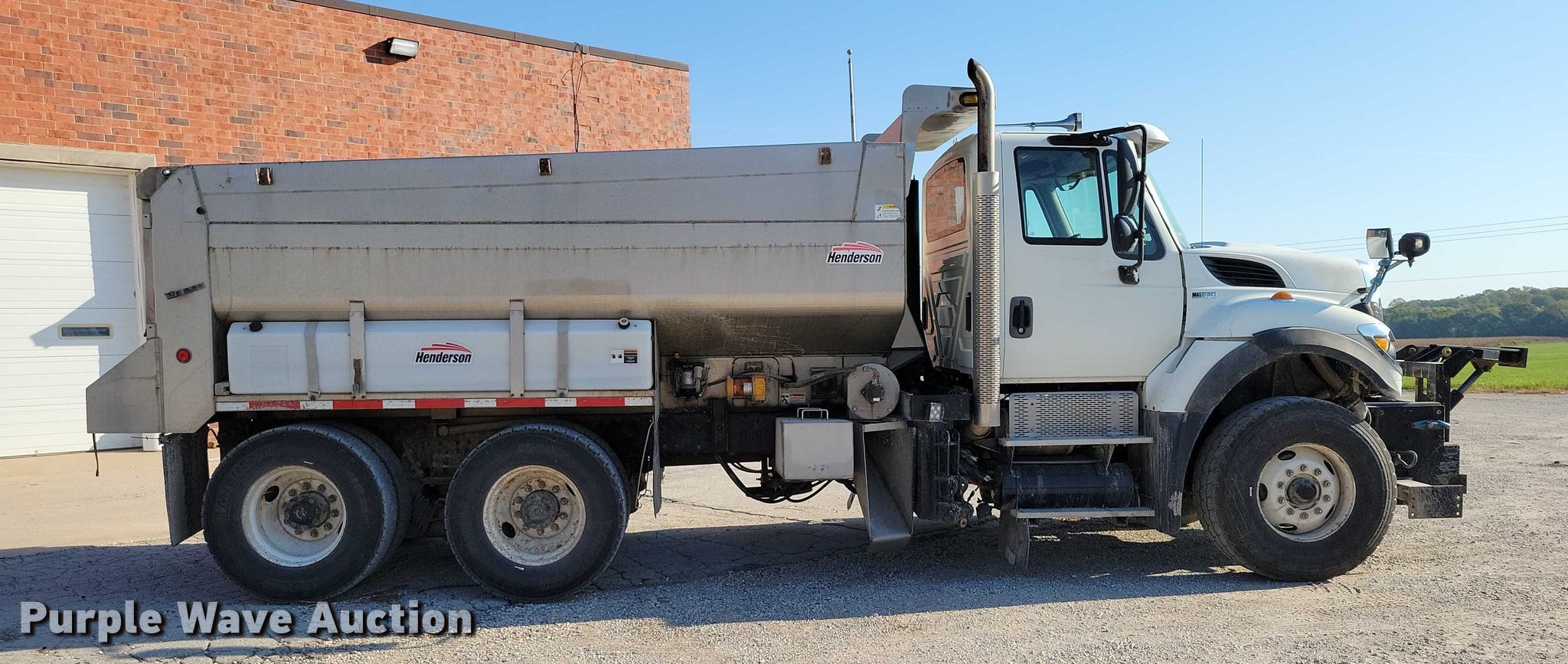 2012 International WorkStar 7500 dump truck. Miles: 180,713 on odometer, Hours: 6,637 on meter, VIN: 1HTWPAZTXDJ203098. Engine International MaxxForce, Displacement: 9.3L, Cylinders: 6, Fuel type: Diesel. Transmission Allison, Automatic. Chassis Axles: Tandem, Differential lock: Inter-axle, Suspension: Spring over walking beam, Brakes: Air, PTO, GVWR: 60,000 lbs FAWR: 20,000 lbs, IAWR: 20,000 lbs, RAWR: 20,000 lbs. Interior AC, Heat, Heated mirrors, Power windows, Cruise control. Features Bed Dump bed, Henderson, Serial: MB2-03454, Length: 15', Width: 96", Side height: 48", Bed vibrator, Ram: Single, End gate: Air operated, Conveyor Width: 24", Plow Wausau, Width: 132", Wing plow Henderson, Width: 96". Tires Front: 425/65R22.5, Rear: 11R22.5. Notes Sand spreader missing, Plow mount included. Iowa title. Seller is a government entity who will be assigning and distributing the title. Please contact the seller for distribution questions. Hamilton County IA. Webster City, IA 50595