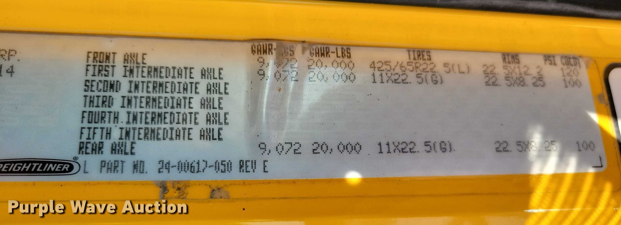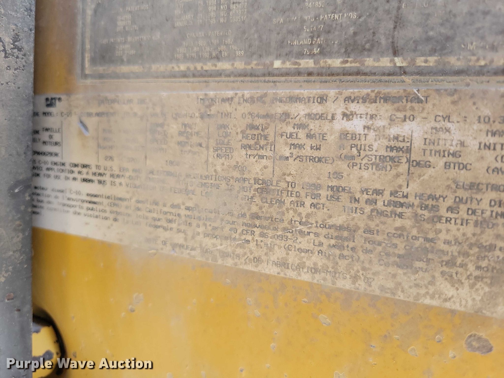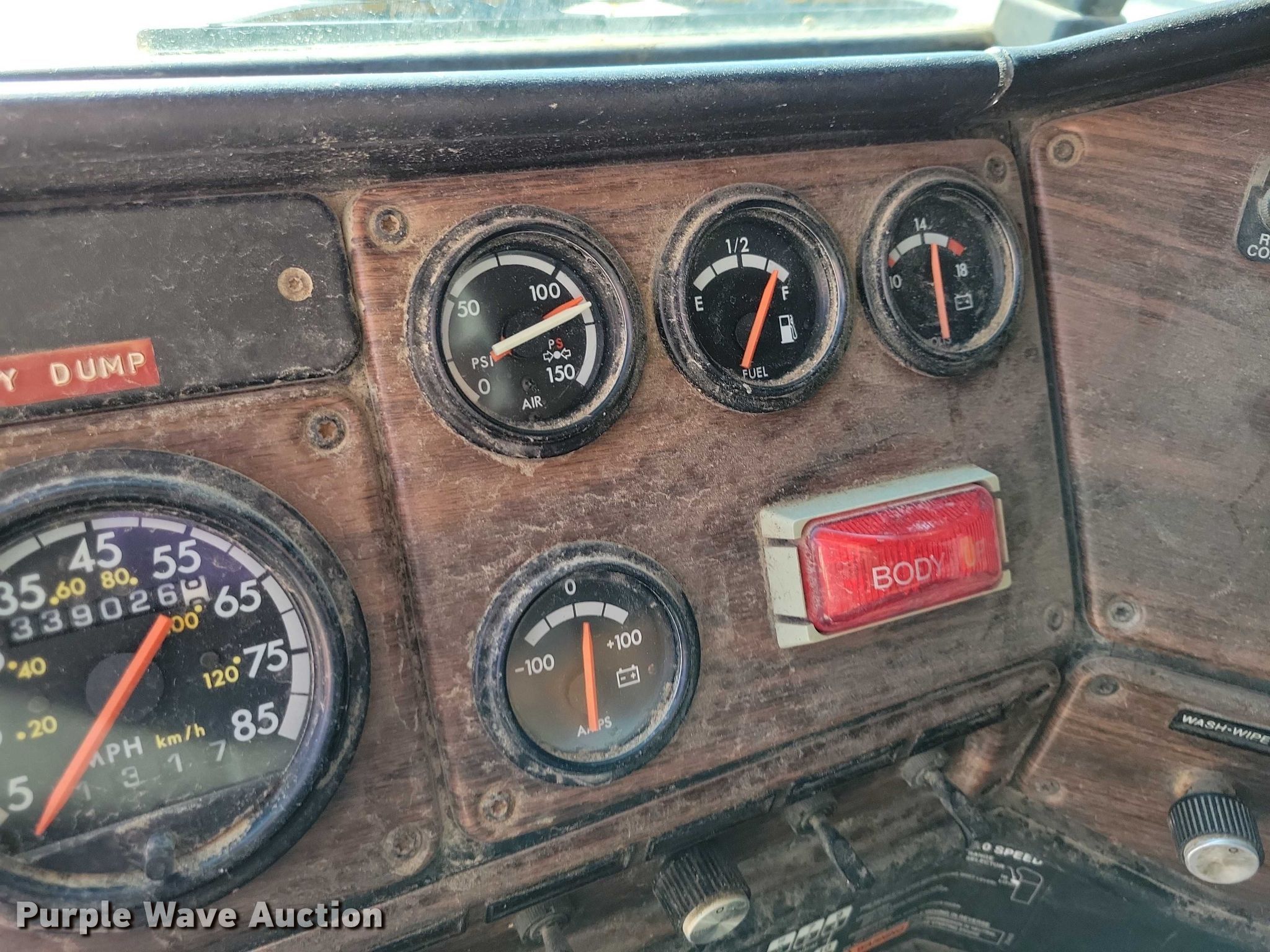 1999 Freightliner FL112 dump truck. Miles: 339,027 on odometer, VIN: 1FVX6EDB5XPA63514. Engine Caterpillar C10, Serial: 8YS04525, Displacement: 10.3L, Cylinders: 6, Fuel type: Diesel. Transmission Eaton Fuller, Manual, Speed: 10. Chassis Double frame, Axles: Tandem, Differential lock: Full, Suspension: Spring over walking beam, Brakes: Air, Front mount PTO, GVWR: 60,000 lbs FAWR: 20,000 lbs, IAWR: 20,000 lbs, RAWR: 20,000 lbs. Interior AC, Heat, Heated mirrors, Cruise control. Features Bed Dump bed, Henderson 14/15xF&RD, Serial: MB2-00126, Length: 14', Width: 96", Side height: 48", Bed type: Steel, Bed vibrator, Ram: Single, End gate: Air operated. Tires Front: 425/65R22.5, Rear: 11R22.5. Notes Plow mount included. Iowa title. Seller is a government entity who will be assigning and distributing the title. Please contact the seller for distribution questions. Hamilton County IA. Webster City, IA 50595