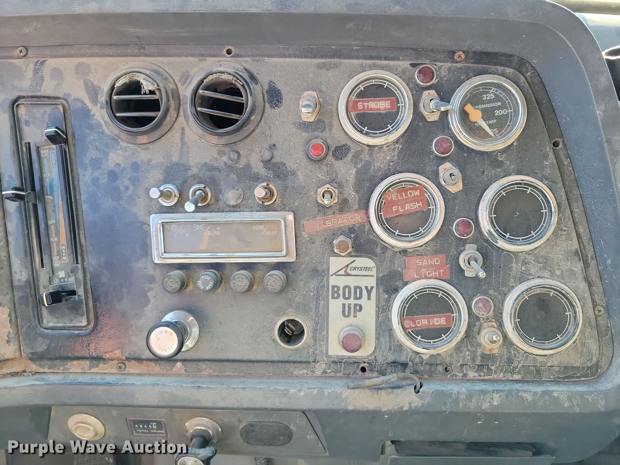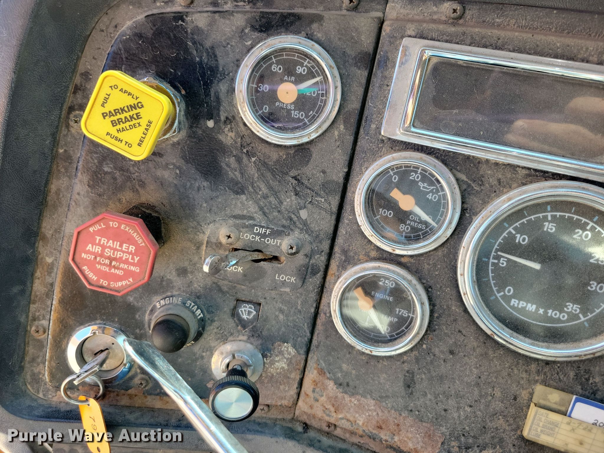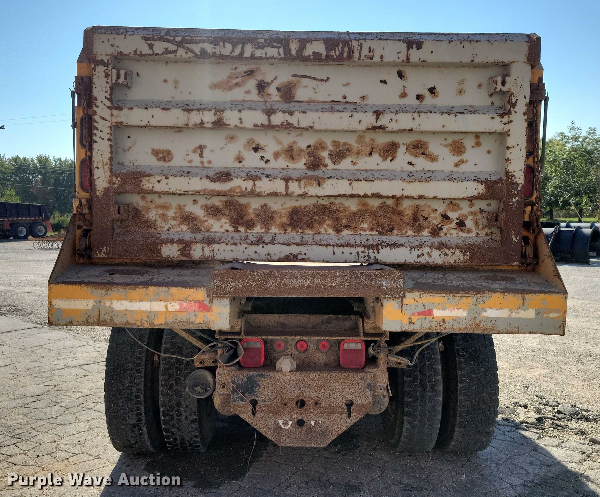 1996 Ford L9000 dump truck. Miles: 204,968 on odometer, VIN: 1FDZY90X6TVA15252. Engine Caterpillar 3406, Serial: 8PN06974, Displacement: 14.6L, Cylinders: 6, Fuel type: Diesel, HP: 350, kW: 261. Transmission Eaton Fuller RoadRanger 9, Manual, Speed: 9. Chassis Double frame, Axles: Tandem, Differential lock: Inter-axle, Suspension: Spring over walking beam, Brakes: Air, Front mount PTO, GVWR: 58,000 lbs FAWR: 18,000 lbs, IAWR: 20,000 lbs, RAWR: 20,000 lbs, Wheelbase: 185". Interior AC, Heat. Features Bed Dump bed, Henderson MB14/15, Serial: 0018, Length: 14', Width: 96", Side height: 48", Bed type: Steel, Bed vibrator, Ram: Single, End gate: Air operated. Tires Front: 425/65R22.5, Rear: 11R22.5. Iowa title. Seller is a government entity who will be assigning and distributing the title. Please contact the seller for distribution questions. Hamilton County, IA. Webster City, IA 50595