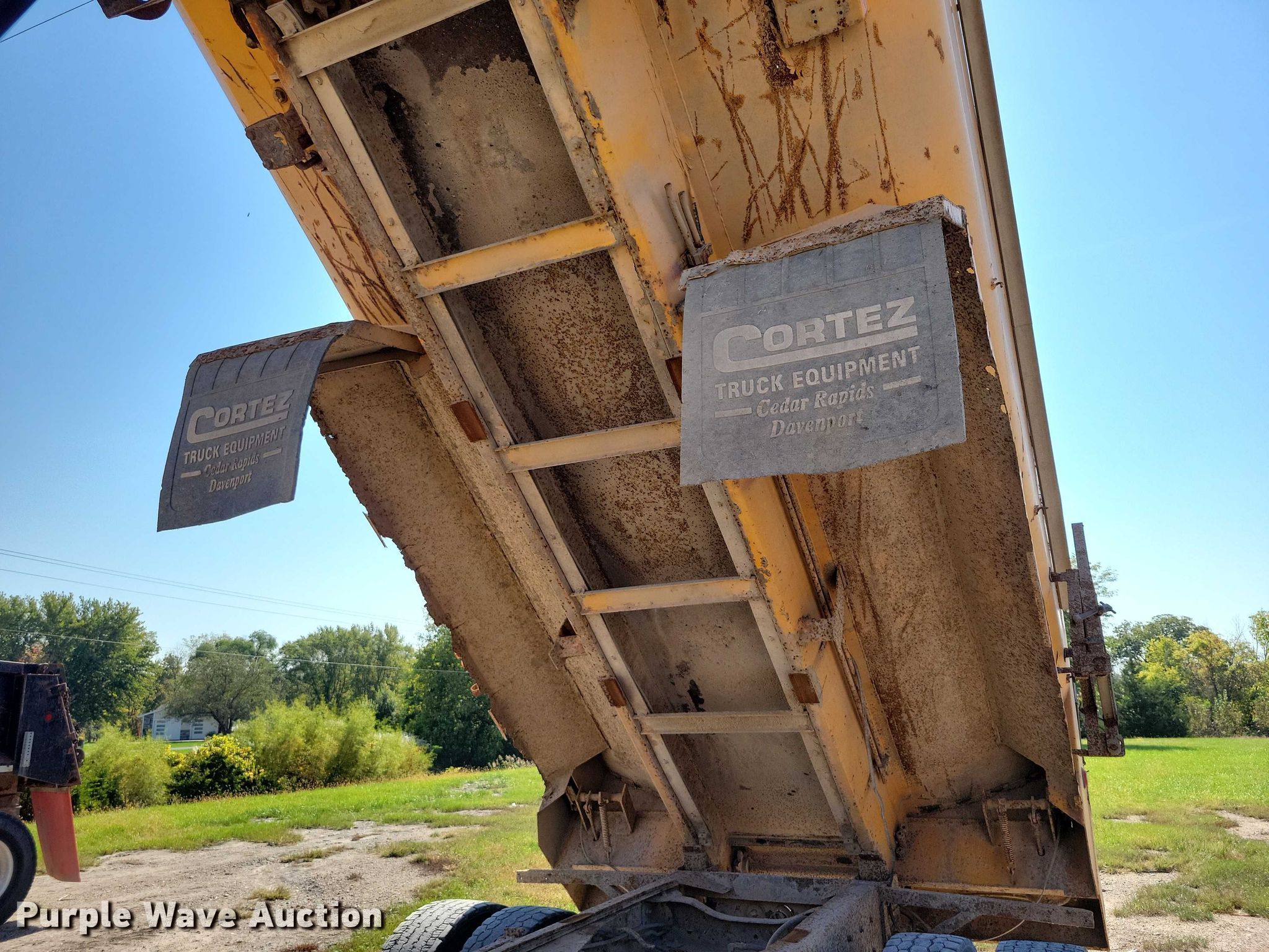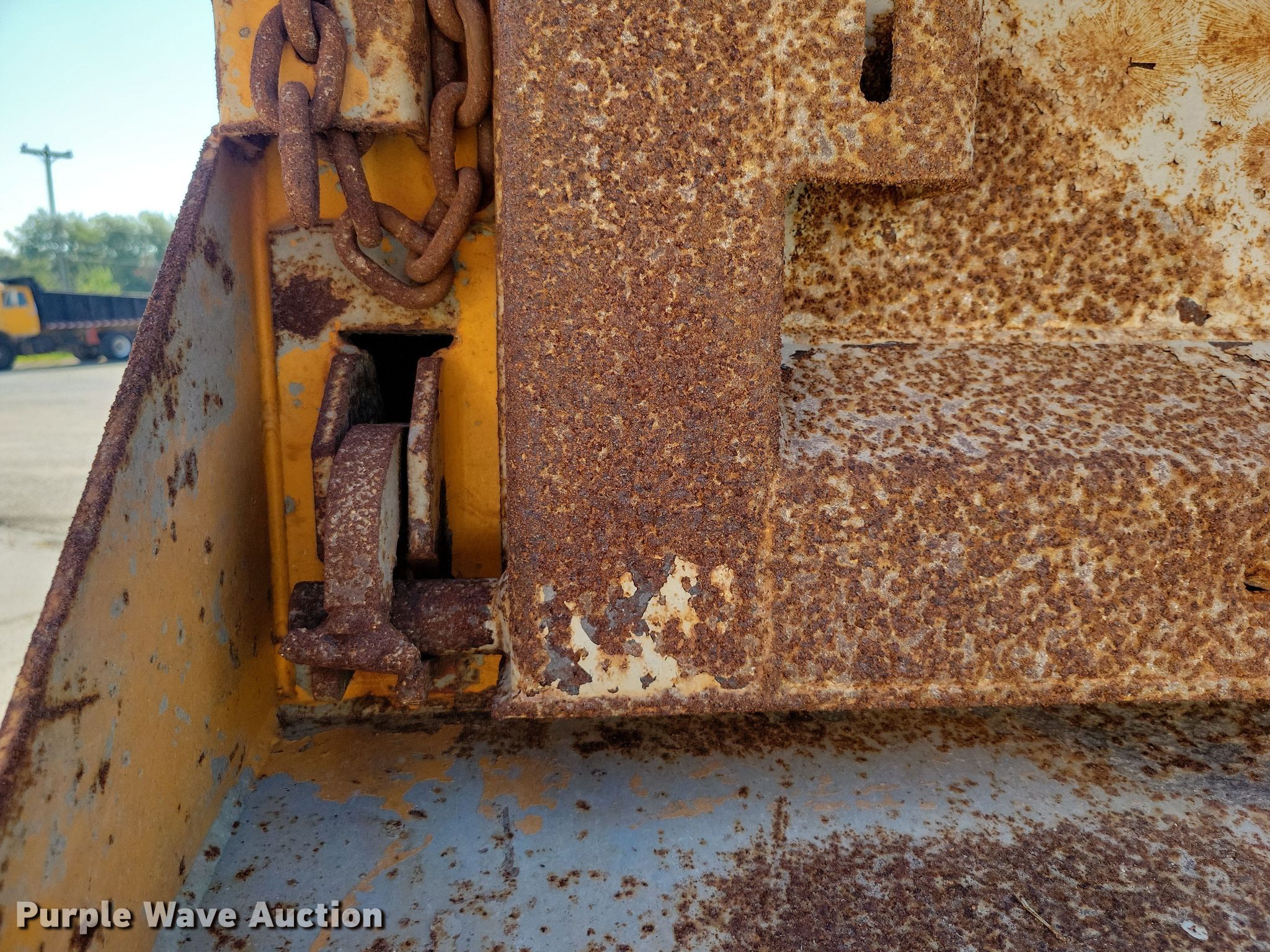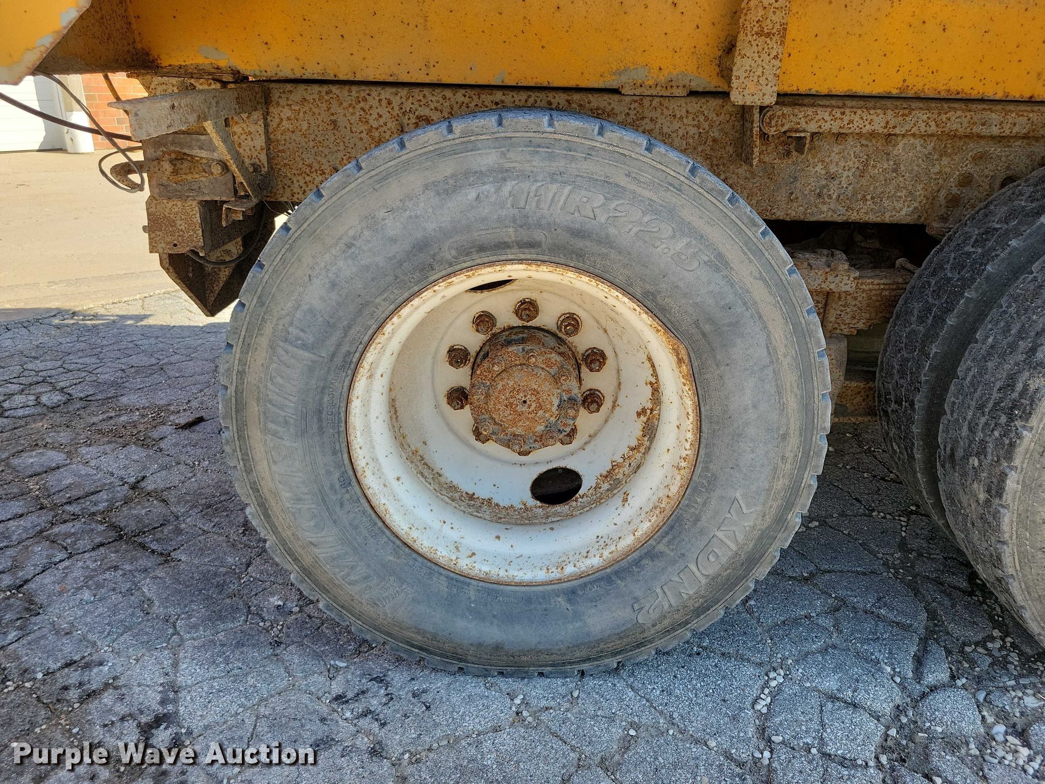 1996 Ford L9000 dump truck. Miles: 204,968 on odometer, VIN: 1FDZY90X6TVA15252. Engine Caterpillar 3406, Serial: 8PN06974, Displacement: 14.6L, Cylinders: 6, Fuel type: Diesel, HP: 350, kW: 261. Transmission Eaton Fuller RoadRanger 9, Manual, Speed: 9. Chassis Double frame, Axles: Tandem, Differential lock: Inter-axle, Suspension: Spring over walking beam, Brakes: Air, Front mount PTO, GVWR: 58,000 lbs FAWR: 18,000 lbs, IAWR: 20,000 lbs, RAWR: 20,000 lbs, Wheelbase: 185". Interior AC, Heat. Features Bed Dump bed, Henderson MB14/15, Serial: 0018, Length: 14', Width: 96", Side height: 48", Bed type: Steel, Bed vibrator, Ram: Single, End gate: Air operated. Tires Front: 425/65R22.5, Rear: 11R22.5. Iowa title. Seller is a government entity who will be assigning and distributing the title. Please contact the seller for distribution questions. Hamilton County, IA. Webster City, IA 50595