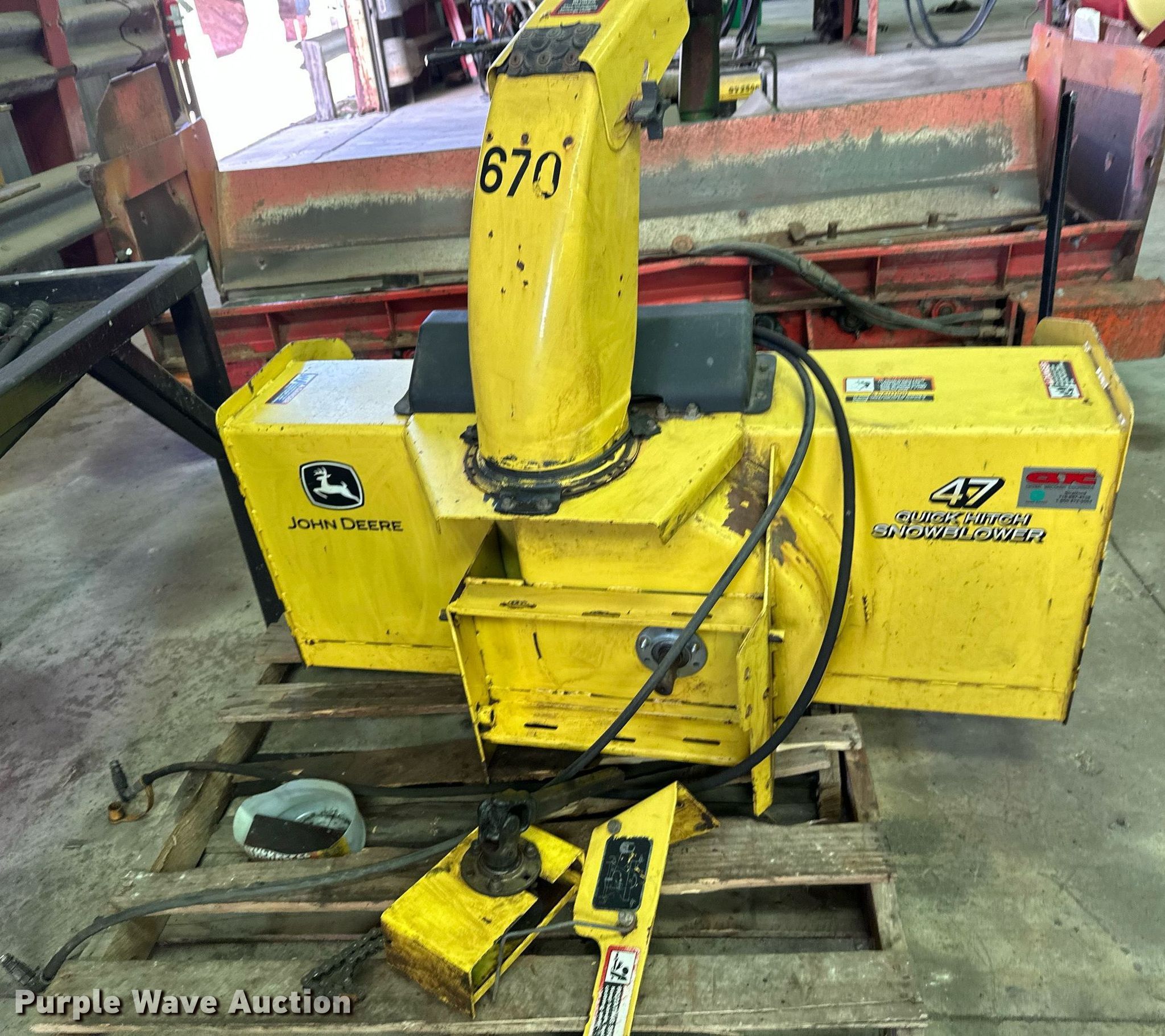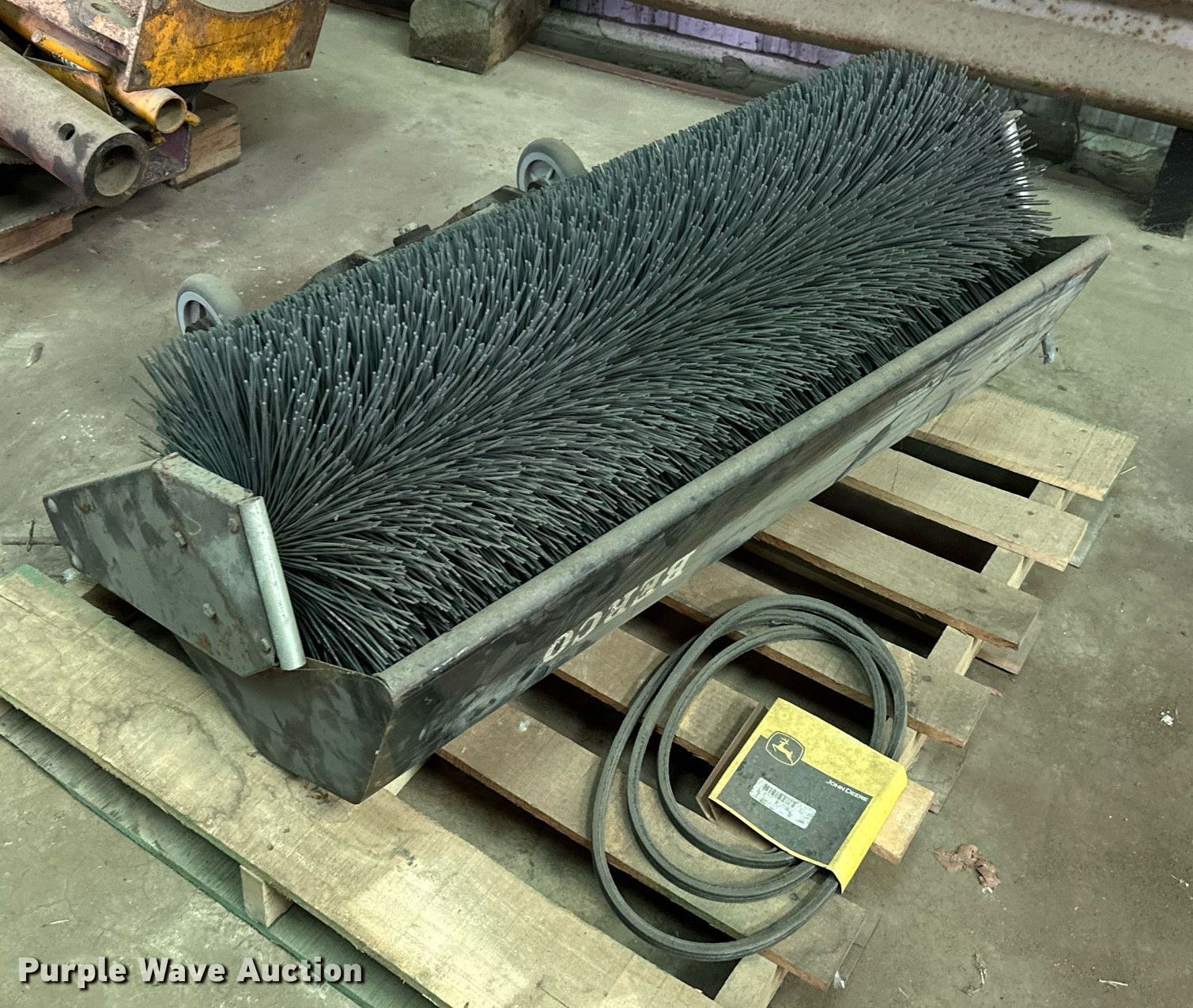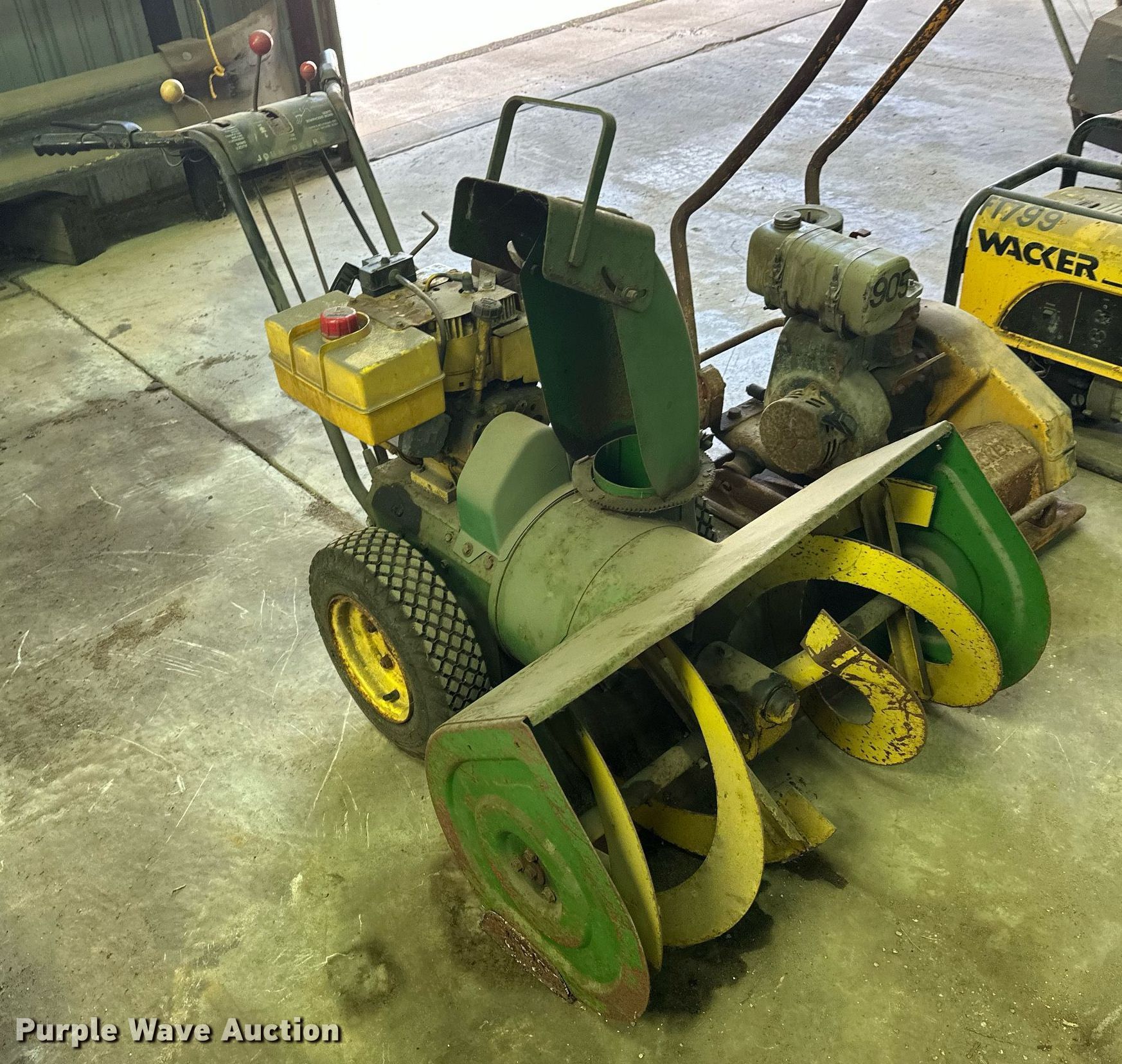 Purple Wave is selling a used Lawn and Garden in Wisconsin. This item is a Lot of tools Lawn and garden equipment with the following: John Deere snow blower, Width: 57", John Deere snow blower, 32", Plate compactor, (2) Generators, Sweepster broom, Width: 40", Broom attachment