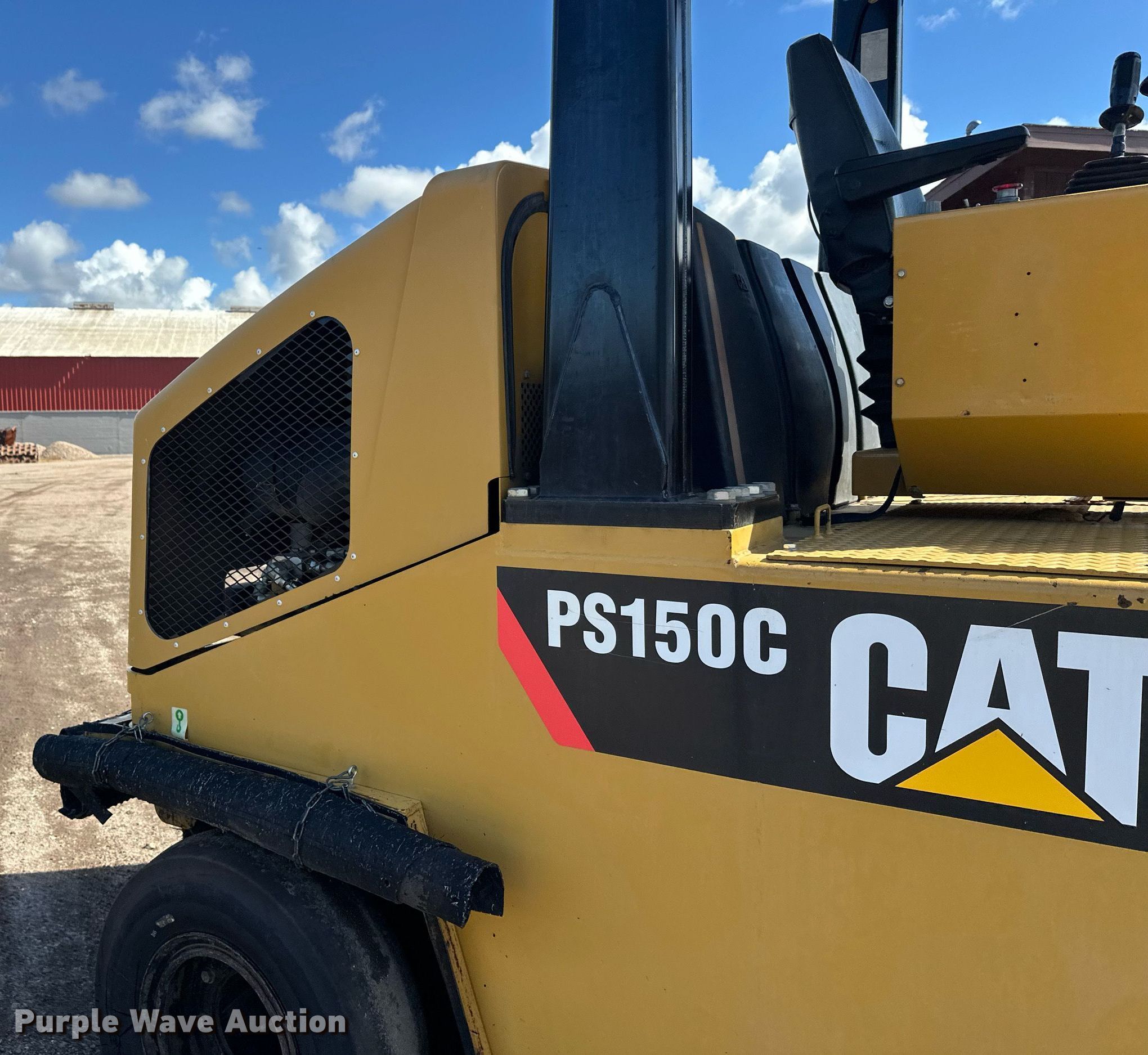 2009 Caterpillar PS-150C pneumatic roller. Hours: 1,583 on meter, Serial: CATPS150TFPS00851. Engine Caterpillar, Displacement: 4.4L, Cylinders: 4, Fuel type: Diesel. Transmission Hydrostatic. Operators station Vandal cover. Features Drum scrapers: Front, Rear. Tires Size: 7.5-15. Marathon County, WI Highway Department. Wausau, WI 54401