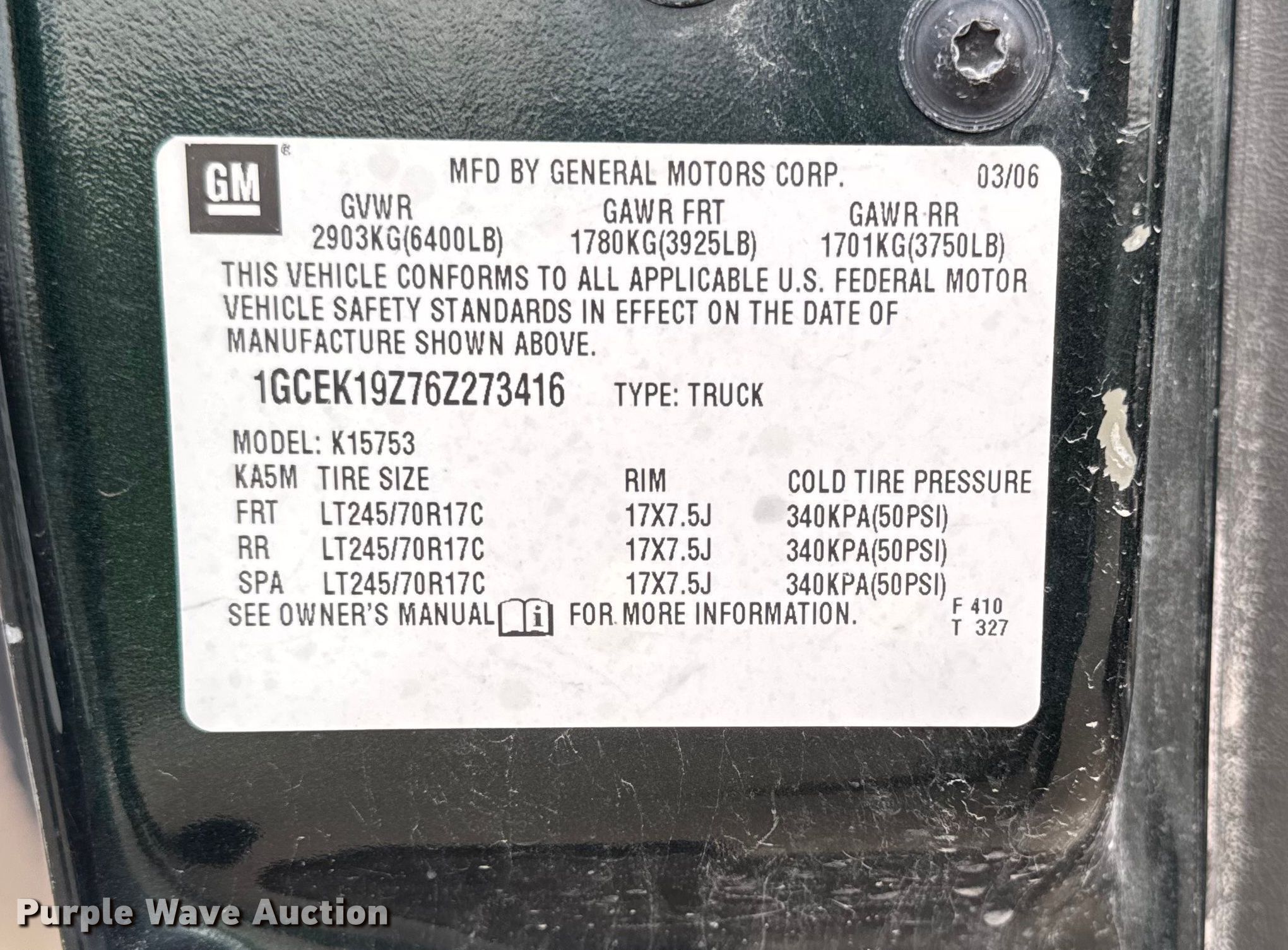 • VIN: 1GCEK19Z76Z273416