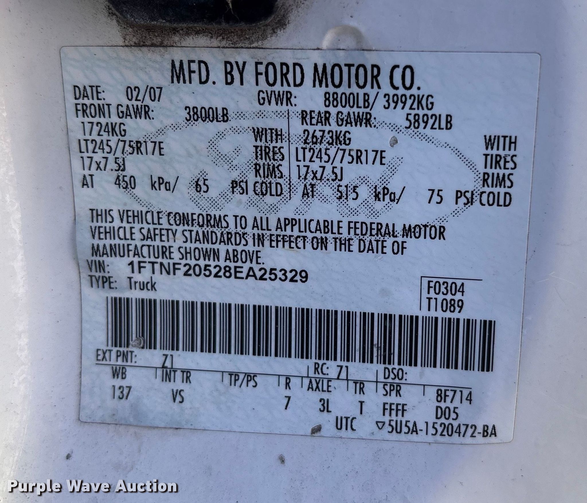 Purple Wave is selling a used 3/4 or 1 Ton Pickup or Van in California. This item is a 2008 Ford F250 Super Duty pickup truck with the following: Miles: 50,416 on odometer, VIN: 1FTNF20528EA25329