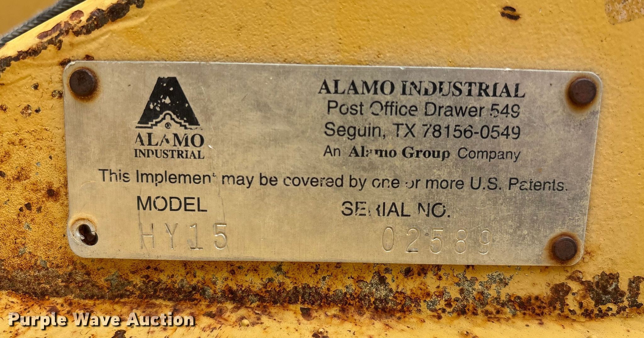Alamo batwing rotary mower. Serial: 02589, Unit #: 500. Features Width: 15', Hydraulic lift, Hydraulic fold, PTO: 1000. Notes Non-operational unit. City of Tulsa. 108 N Trenton Ave. Tulsa, OK 74120