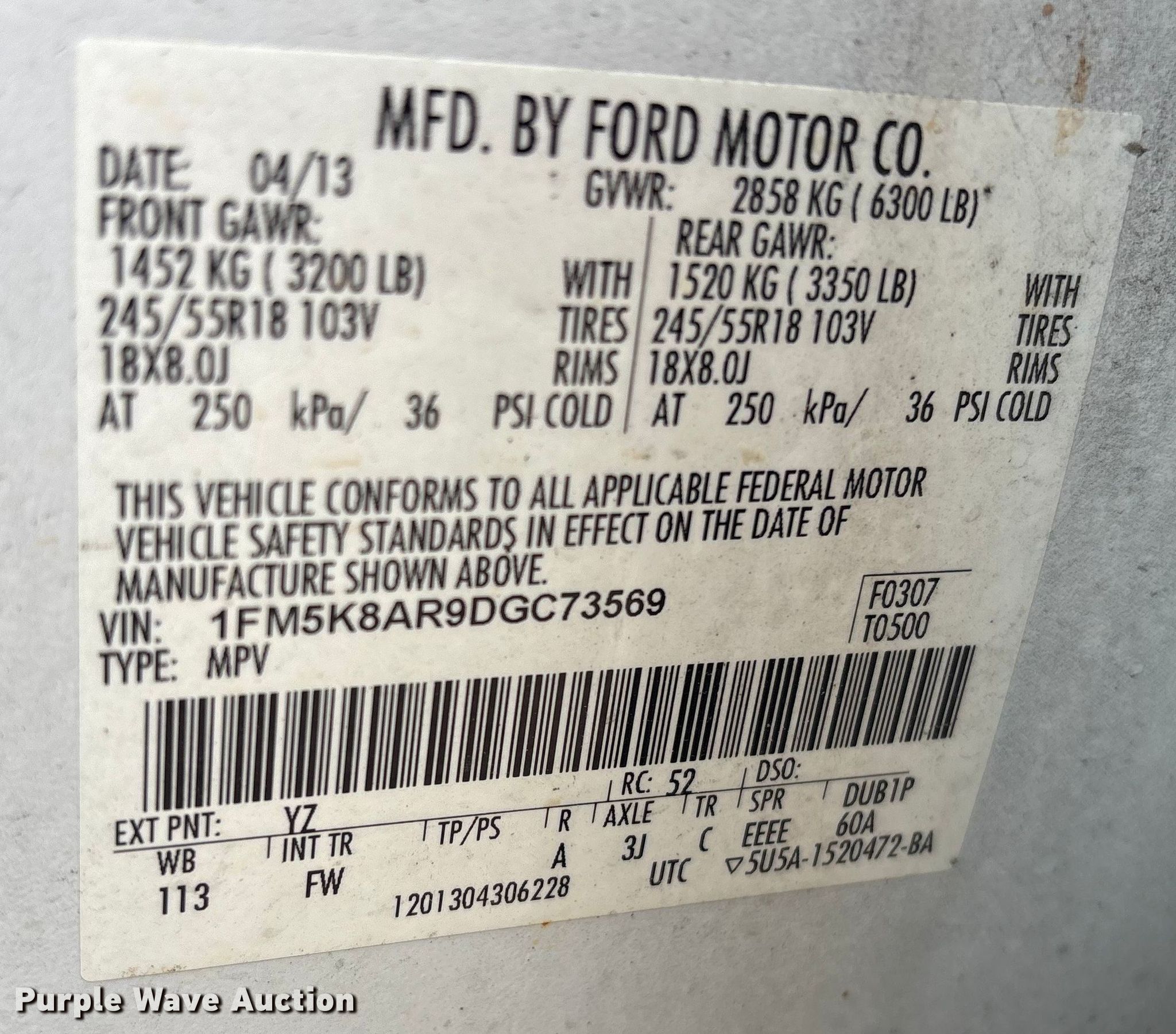 2013 Ford Explorer Police SUV. Miles: 101,133 on odometer, VIN: 1FM5K8AR9DGC73569, Unit #: 108. Engine Displacement: 3.7L V6 DOHC, Cylinders: 6, Fuel type: Gas. Transmission Automatic, All wheel drive. Interior AC, Heat, Seat: Power driver, Power windows, Power locks, Cruise control. Tires Size: 245/55R18. Notes Front end damage, Center console missing, Driver seat controls missing, Driver front tire missing, PTU issues, needs replaced , Unit must be towed or hauled. Oklahoma title. Seller is a government entity who will be assigning and distributing the title. Please contact the seller for distribution questions. Title distribution may be delayed up to 30 days from verification of funds. City of Tulsa. 108 N Trenton Ave. Tulsa, OK 74120