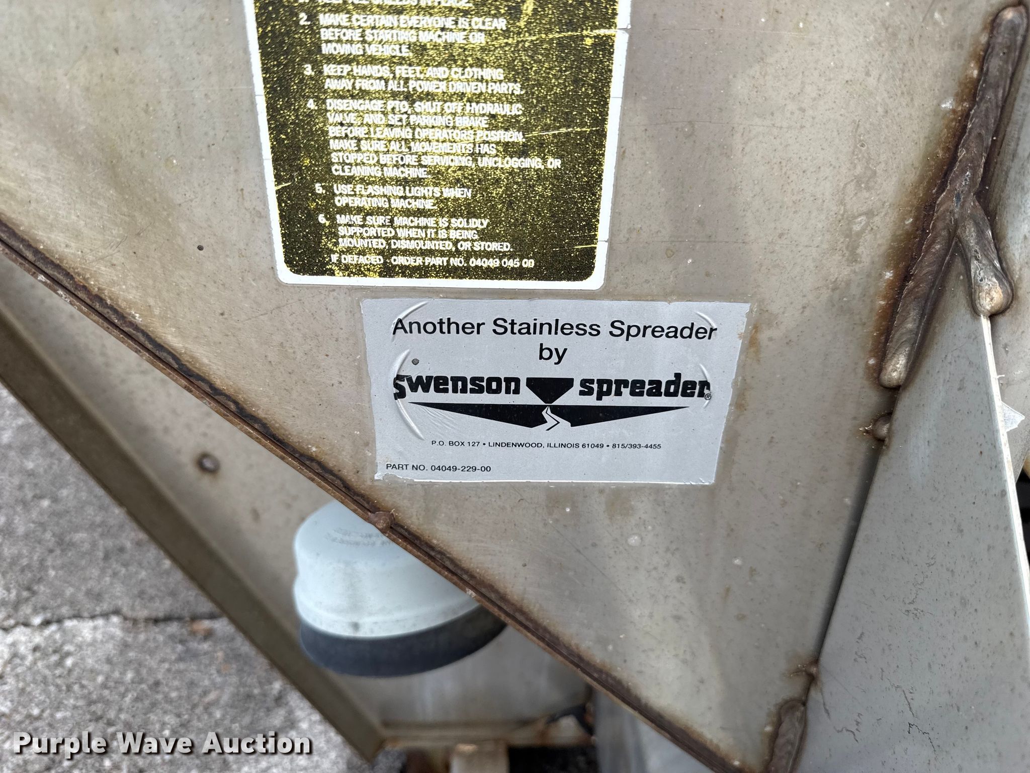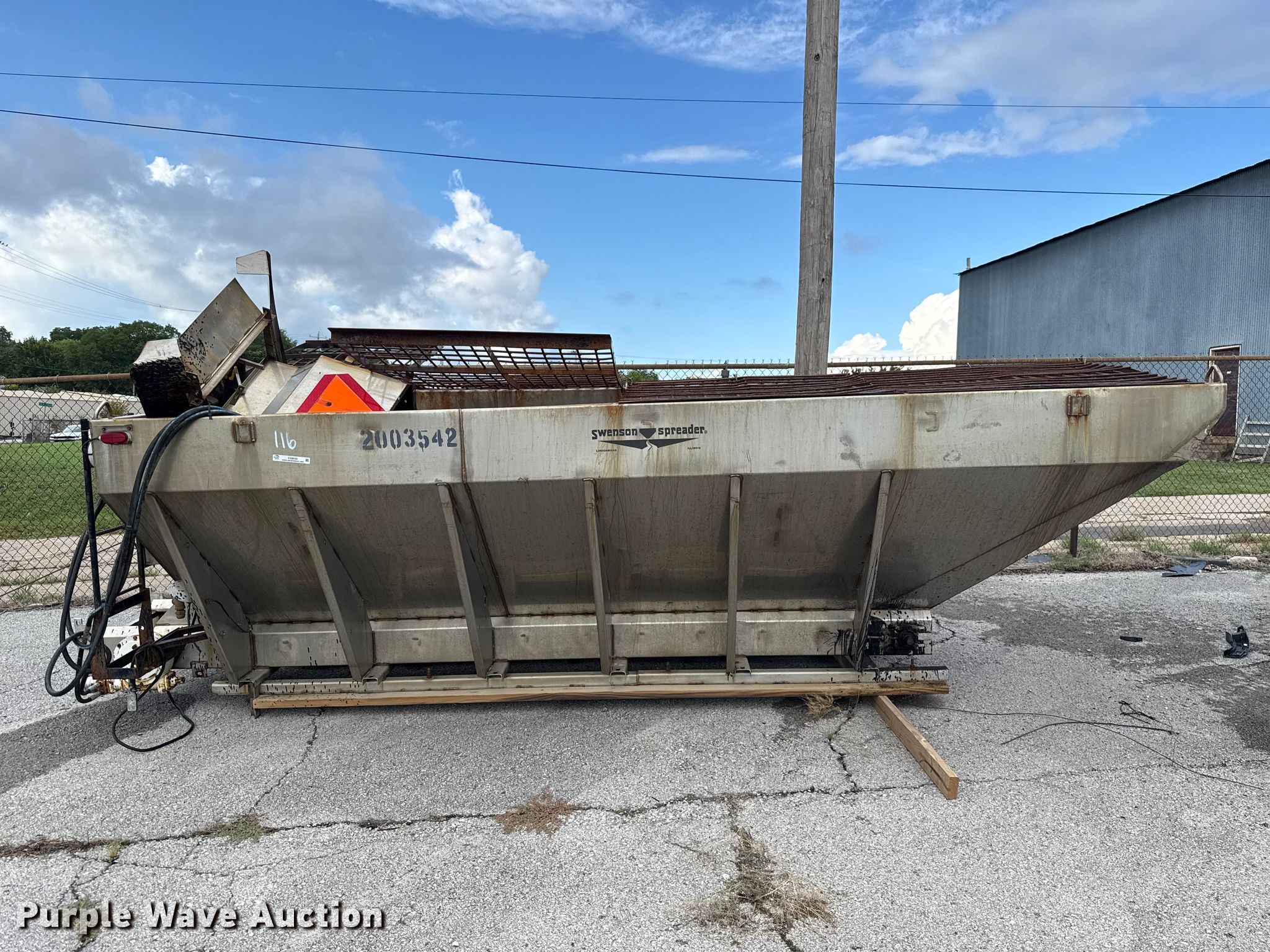 Purple Wave is selling a used Truck Part and Attach. in Oklahoma. This item is a 2003 Swenson Spreader with the following: Serial: 1202-1157 2, Unit #: 116