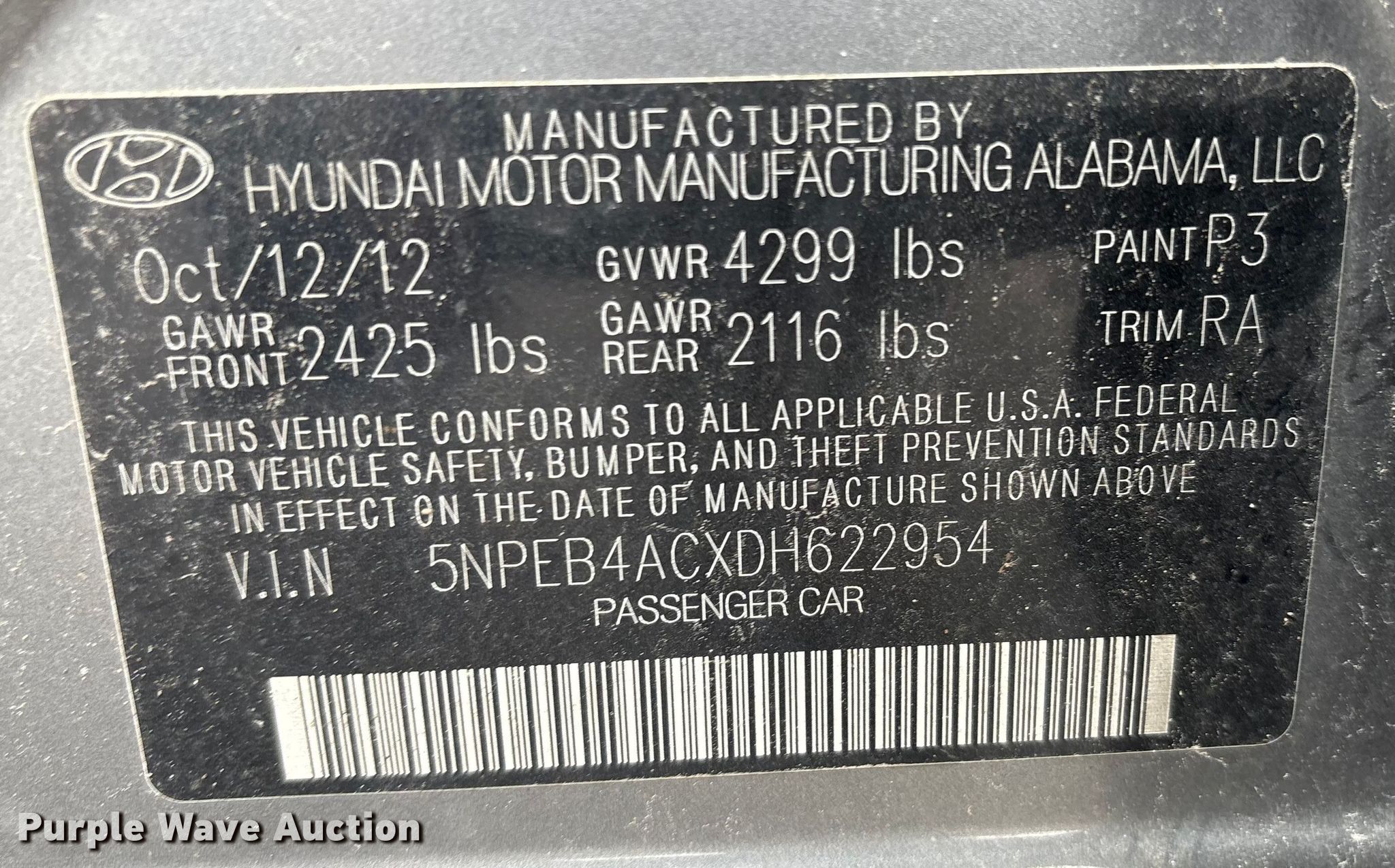 - VIN: 5NPEB4ACXDH622954