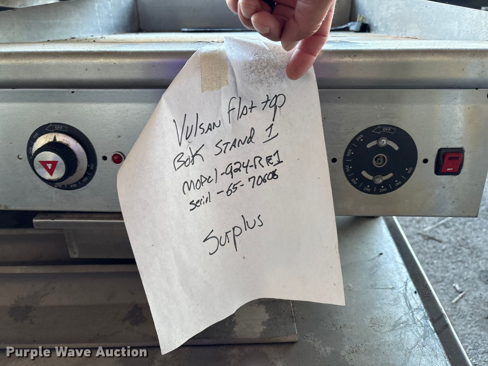 Restaurant equipment. Unit #: 320. Features Flat top 924RE-1, Stove Top VCCB47-1, Refrigerated case, Vulcan 924RE natural gas grill. Notes Unknown operating condition. City of Tulsa. 108 N Trenton Ave. Tulsa, OK 74120