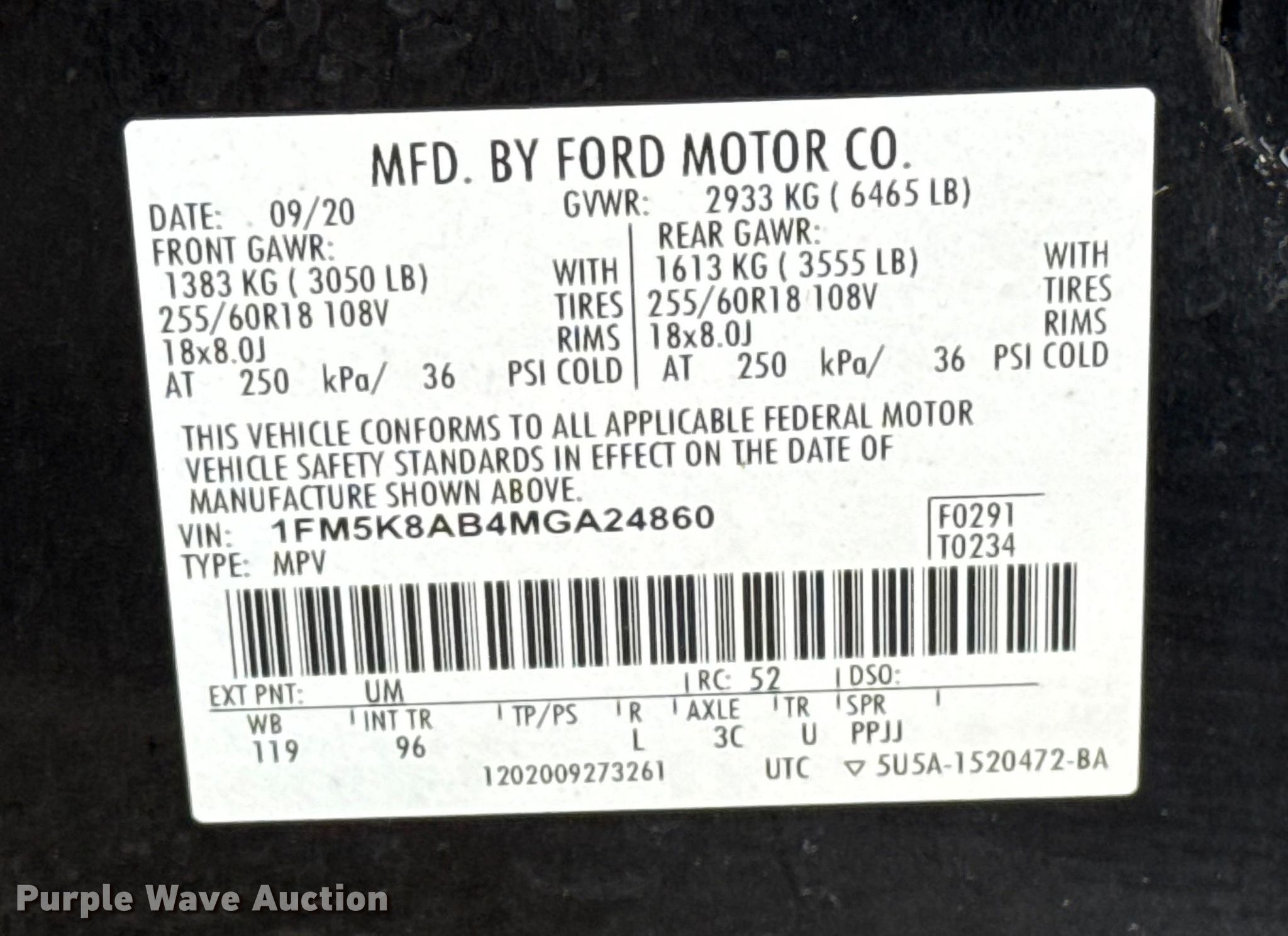 Purple Wave is selling a used Passenger Vehicle in Oklahoma. This item is a 2021 Ford Explorer Police SUV with the following: Miles: Unknown, VIN: 1FM5K8AB4MGA24860, Unit #: 122