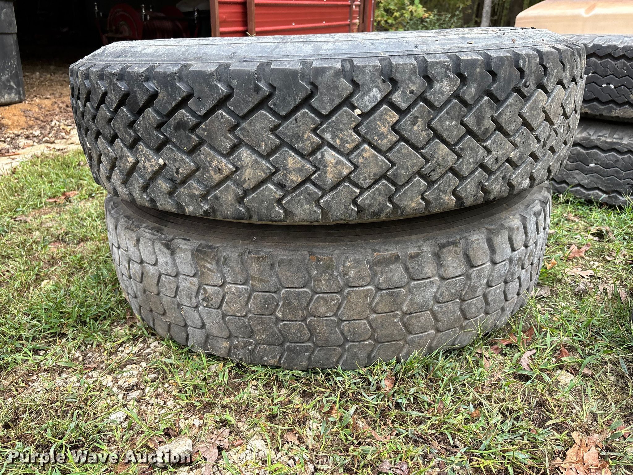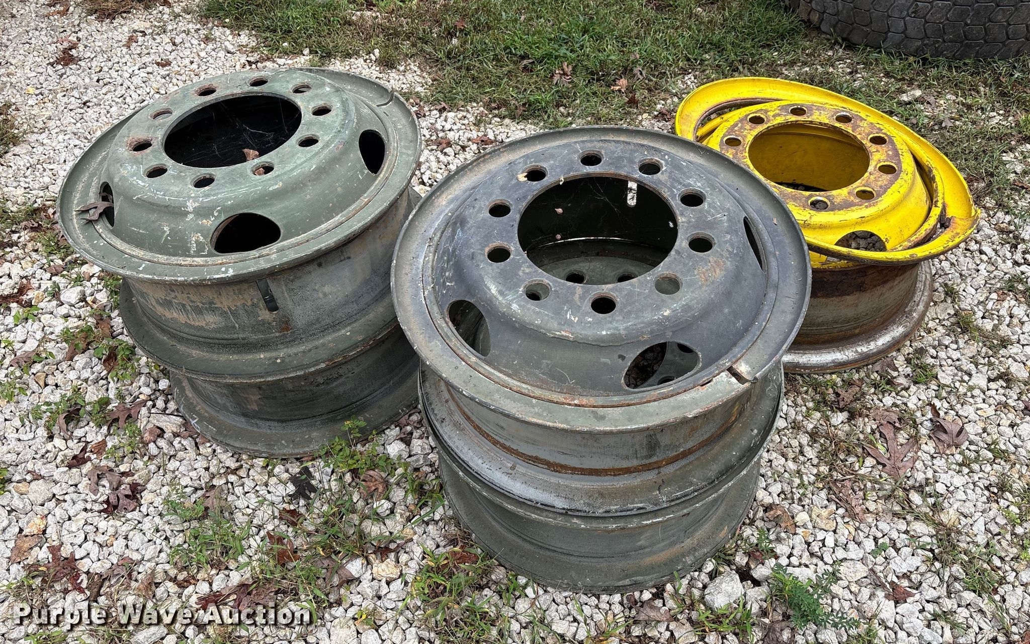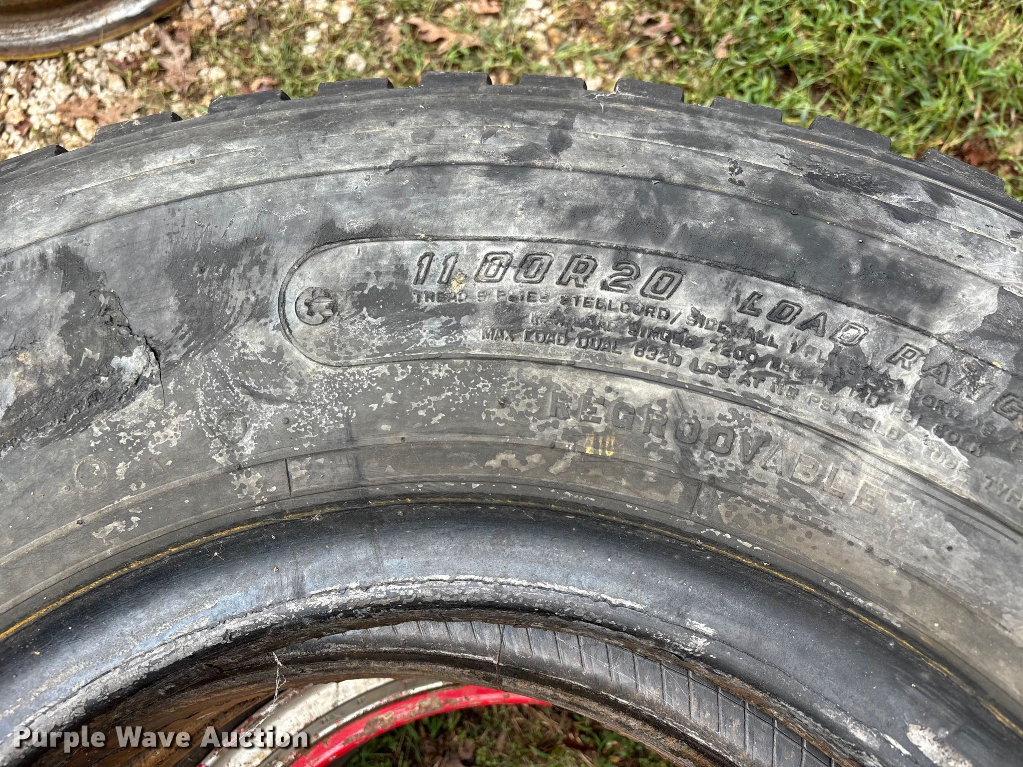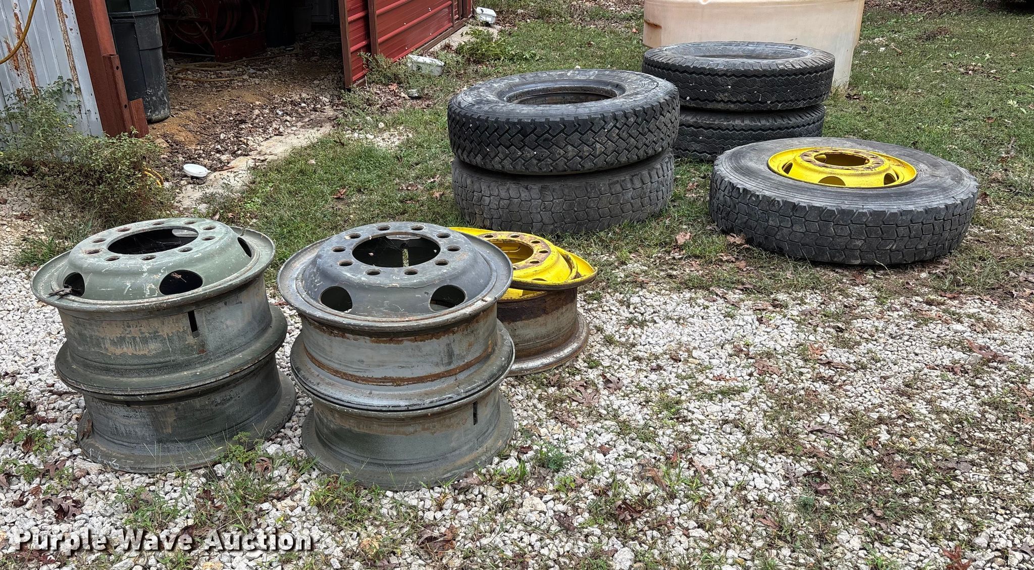 Purple Wave is selling a used Fleet Tires in Missouri. This item is a Truck tires and wheels with the following: Tires, Sizes, (3) 11.00R20, (2) 11.00-20,, Wheels, Size: (5) 11.00-20