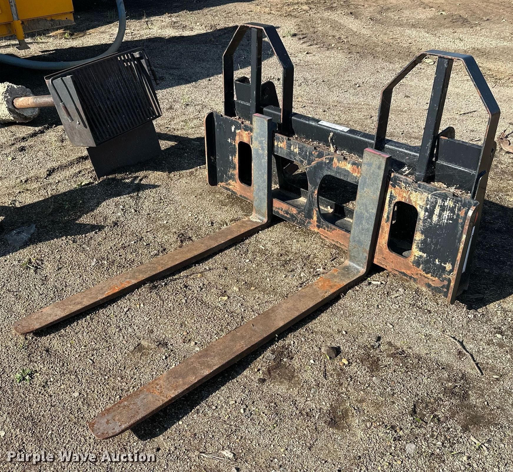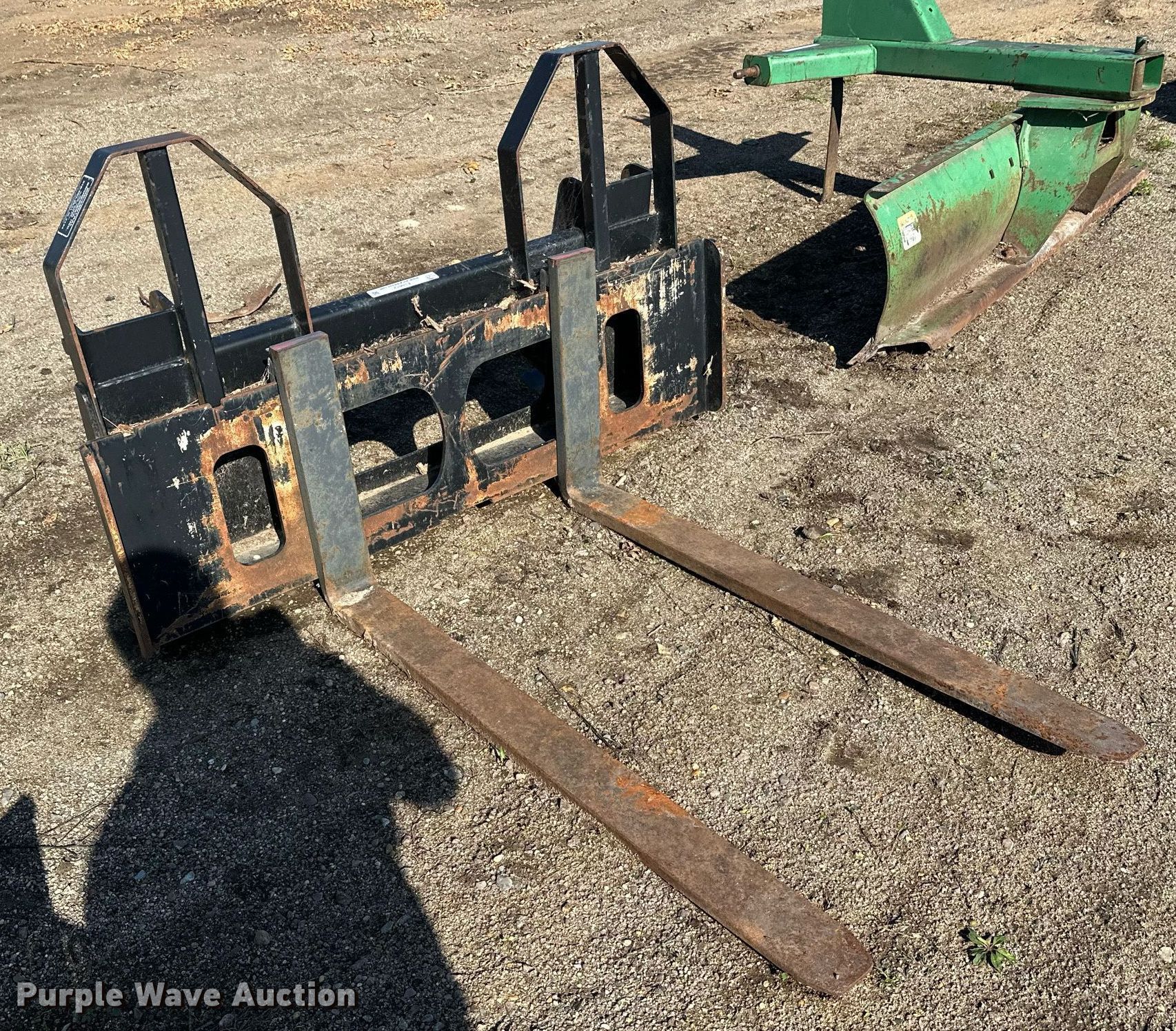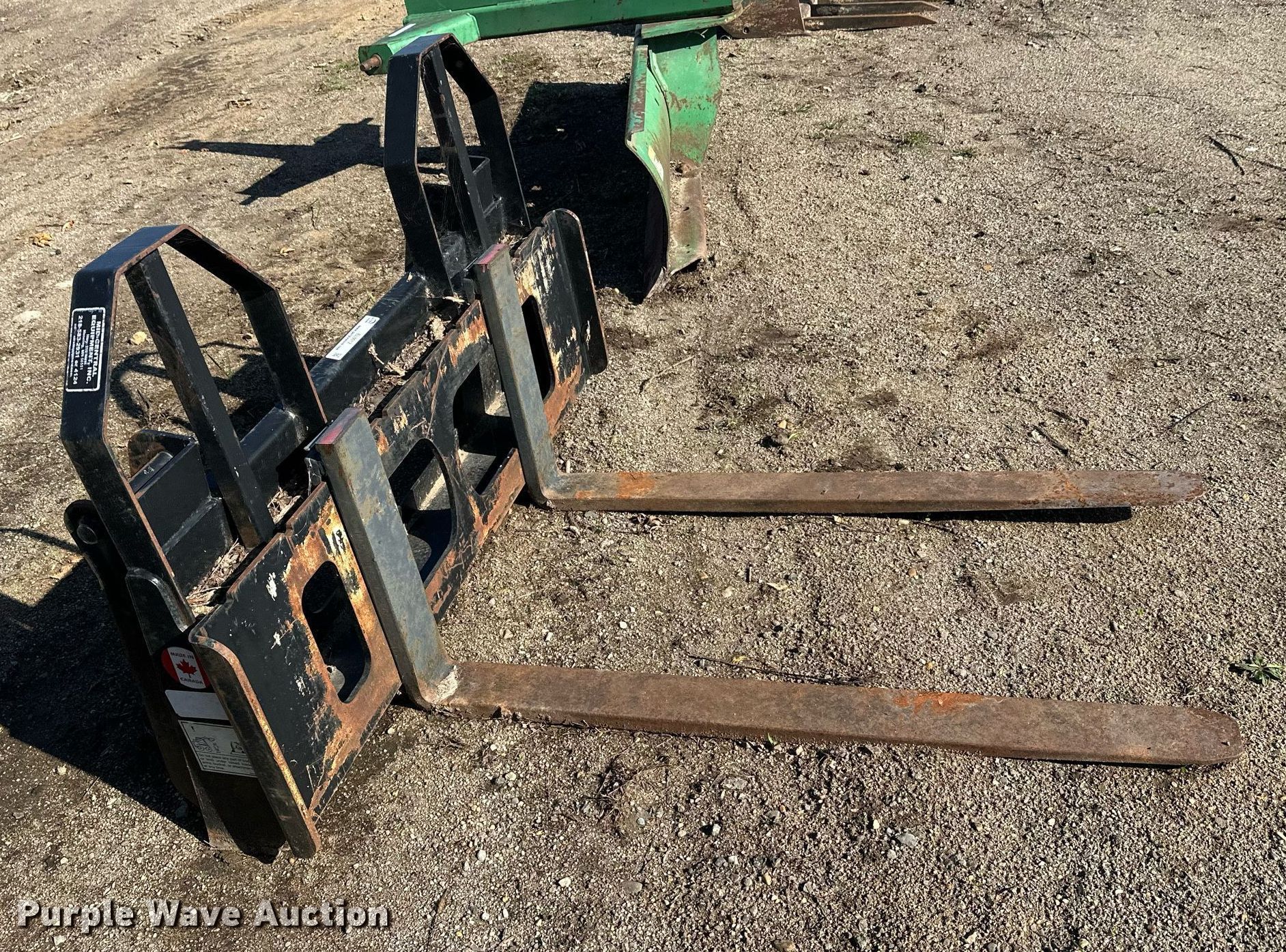 Purple Wave is selling a used Ag Tractor Loader or Attach. in Minnesota. This item is a Forks with the following: Length: 48", Fits a John Deere tractor