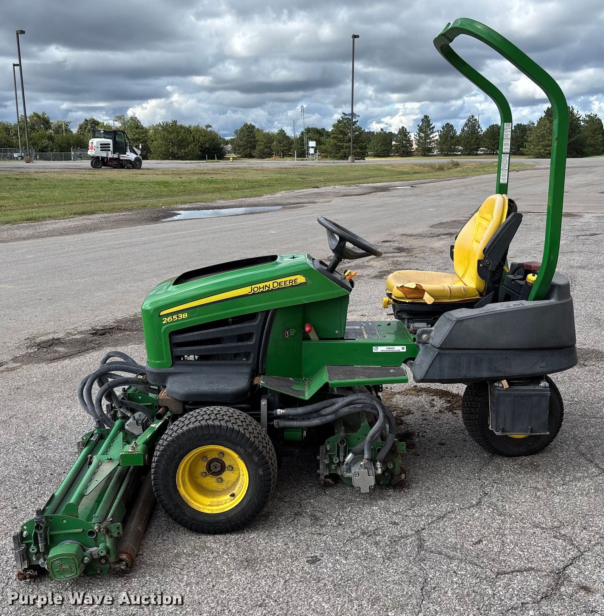 Purple Wave is selling a used Commercial Turf Mower in Kansas. This item is a 2009 John Deere 2653B reel mower with the following: Hours: 2,650 on meter, Cutting width: 84", Serial: TC2653T030011