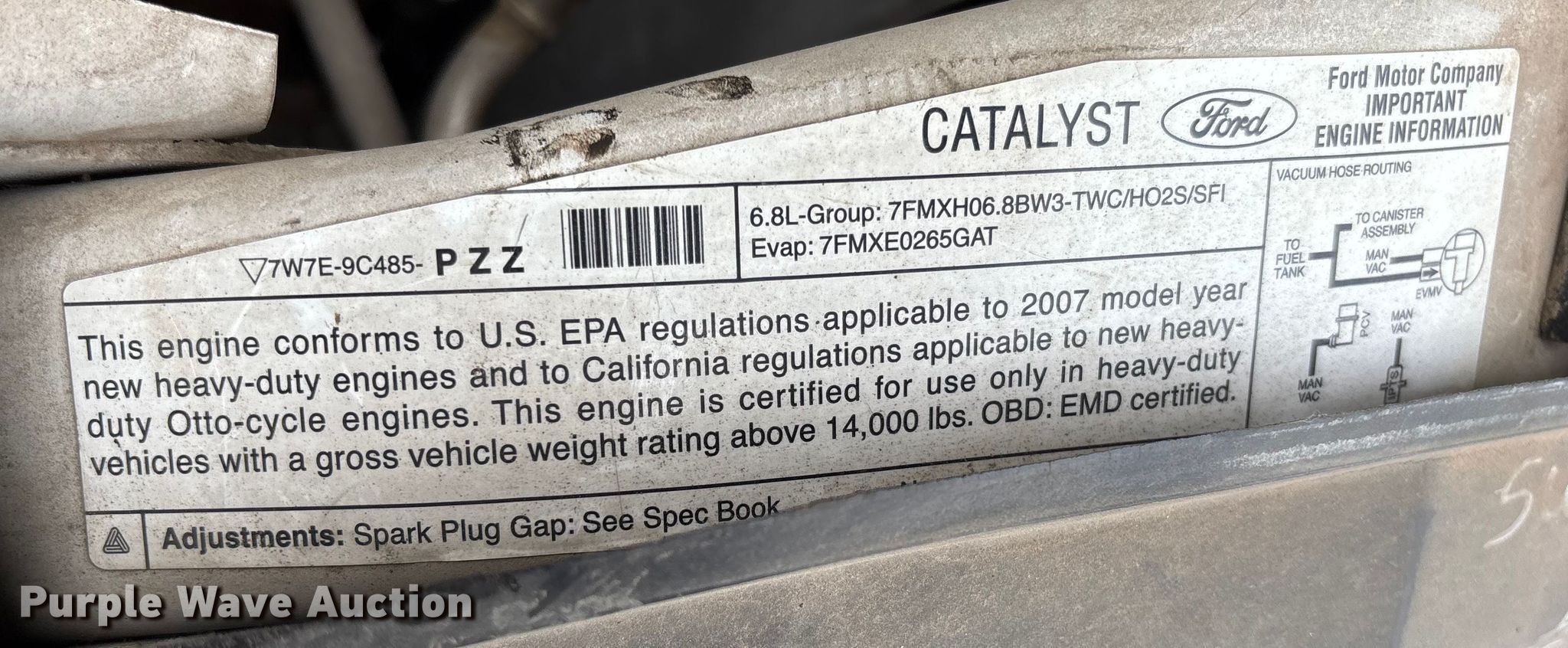 2007 Ford F450 Super Duty XL flatbed truck. Miles: 75,746 on odometer, VIN: 1FDXF46Y87EA73031. Engine Displacement: 6.8L, Cylinders: 10, Fuel type: Gas. Transmission Automatic. Chassis Axles: Single, Suspension: Spring, Brakes: Hydraulic, GVWR: 16,000 lbs. Interior AC, Heat, Auxiliary controls, Brake controller. Features Bed Flatbed, Length: 9', Width: 96". Tires Size: 225/70R19.5. Notes Jump start required during on-site data collection. Kansas title. Title distribution may be delayed up to 14 days from verification of funds. City of Hutchinson. Hutchinson, KS 67501