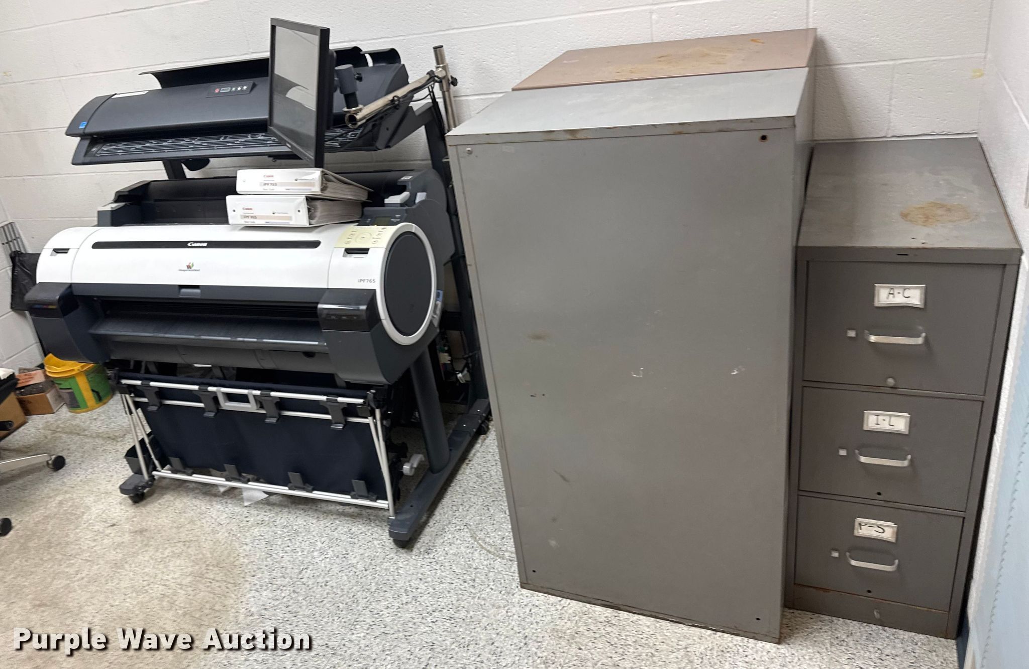 Canon iPF765 imagePrograf multifunction printer. (3) file cabinets. Notes Unknown operating condition. City of Hutchinson. Hutchinson, KS 67501