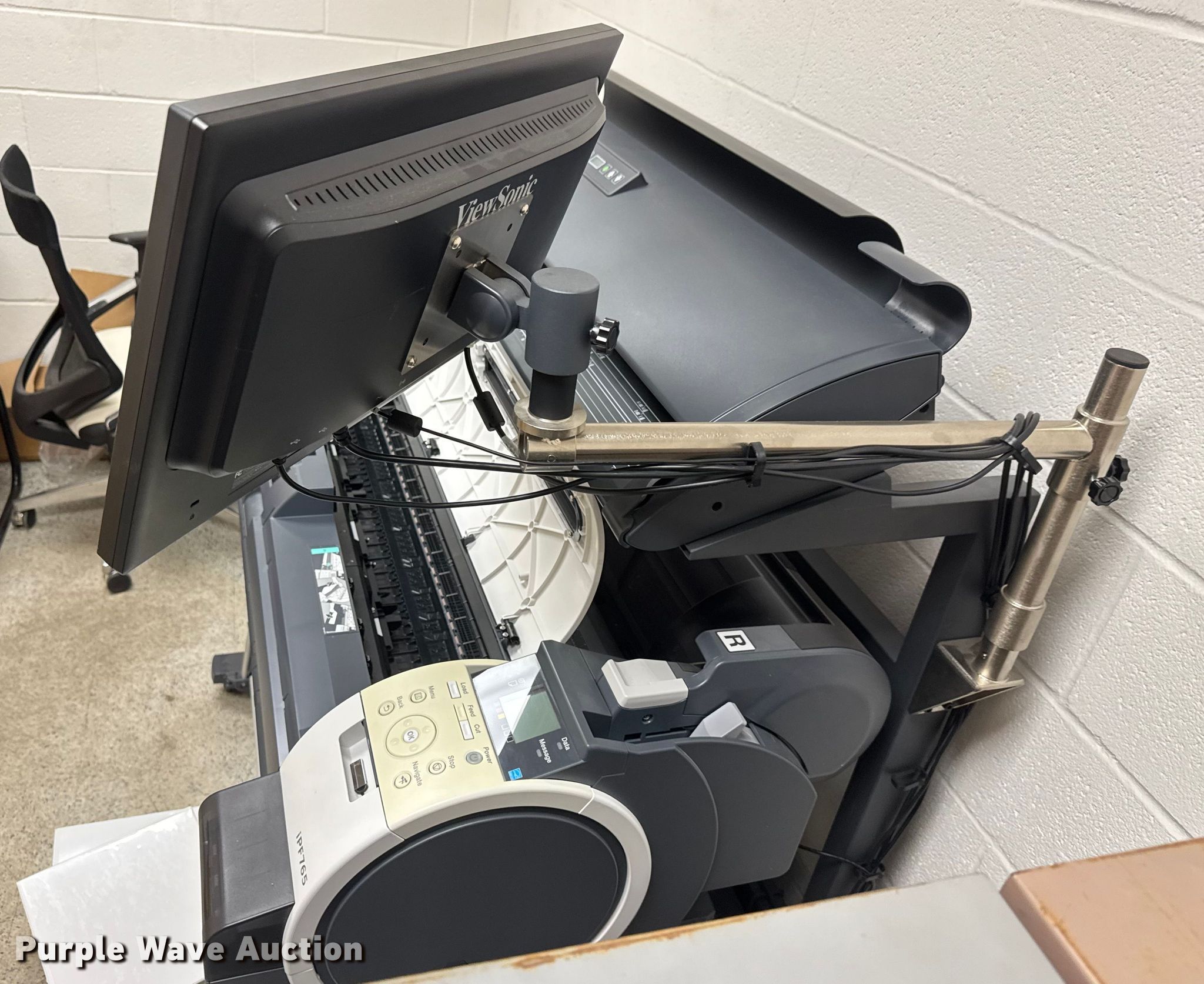 Purple Wave is selling a used Copy or Printing Machine in Kansas. This item is a Canon iPF765 imagePrograf multifunction printer with the following: (3) file cabinets