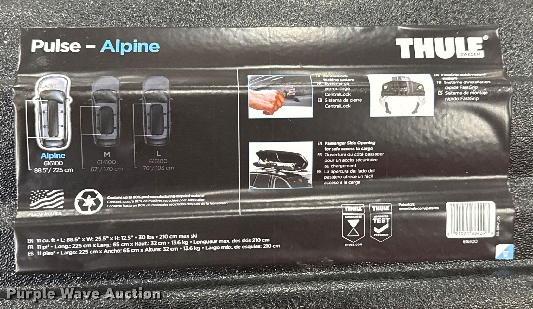 Purple Wave is selling a used Automotive Parts or Acces. in Kansas. This item is a Thule Sweden Pulse-Alpine roof storage box with the following: Thule Sweden Pulse-Alpine roof storage box. City of Hutchinson. Hutchinson, KS 67501