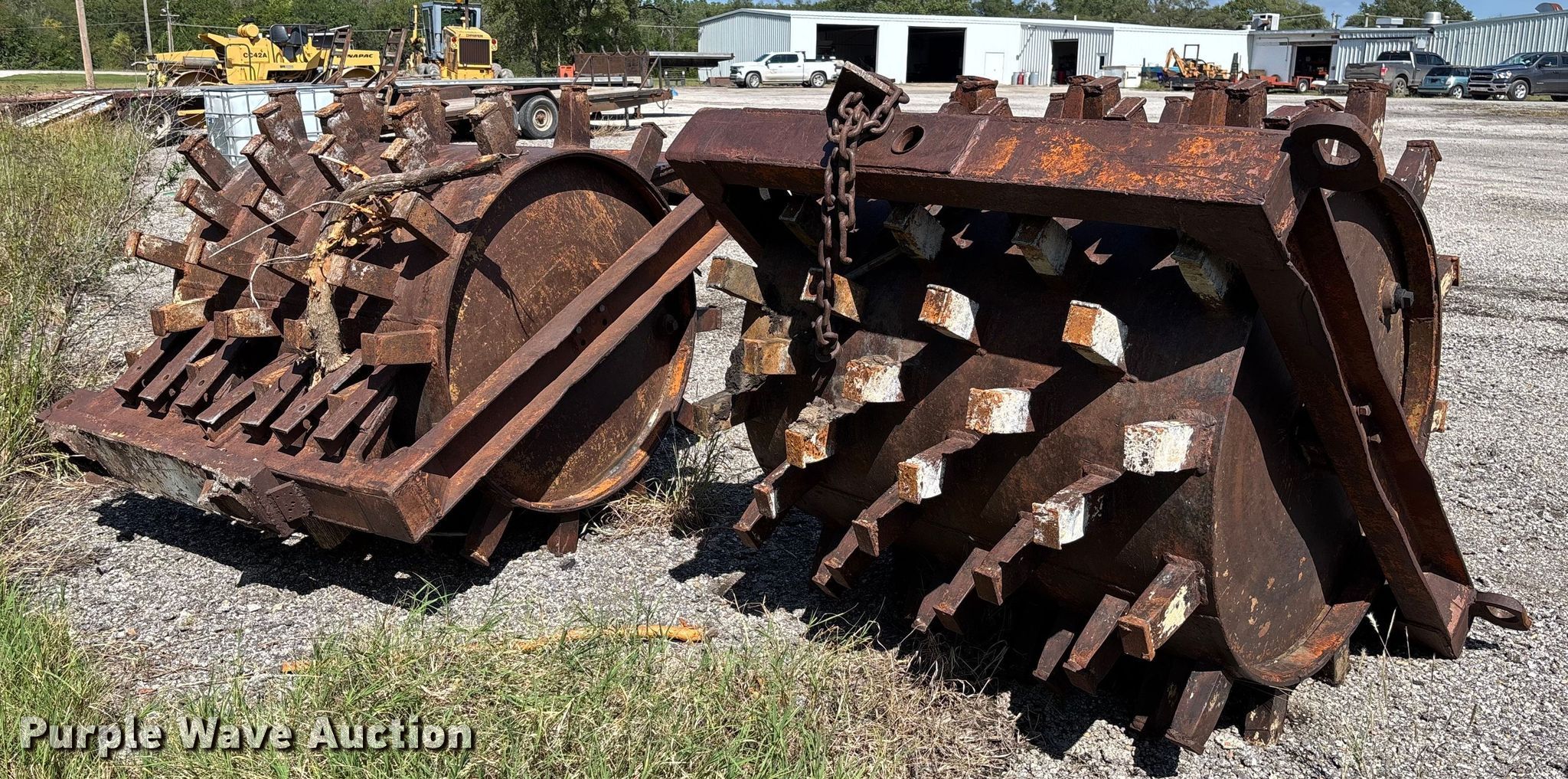 Purple Wave is selling a used Pull Type Roller Compactor in Kansas. This item is a (2) roller compactors with the following: Drum, Drum type: Sheepsfoot, Width: 48", Drum scrapers