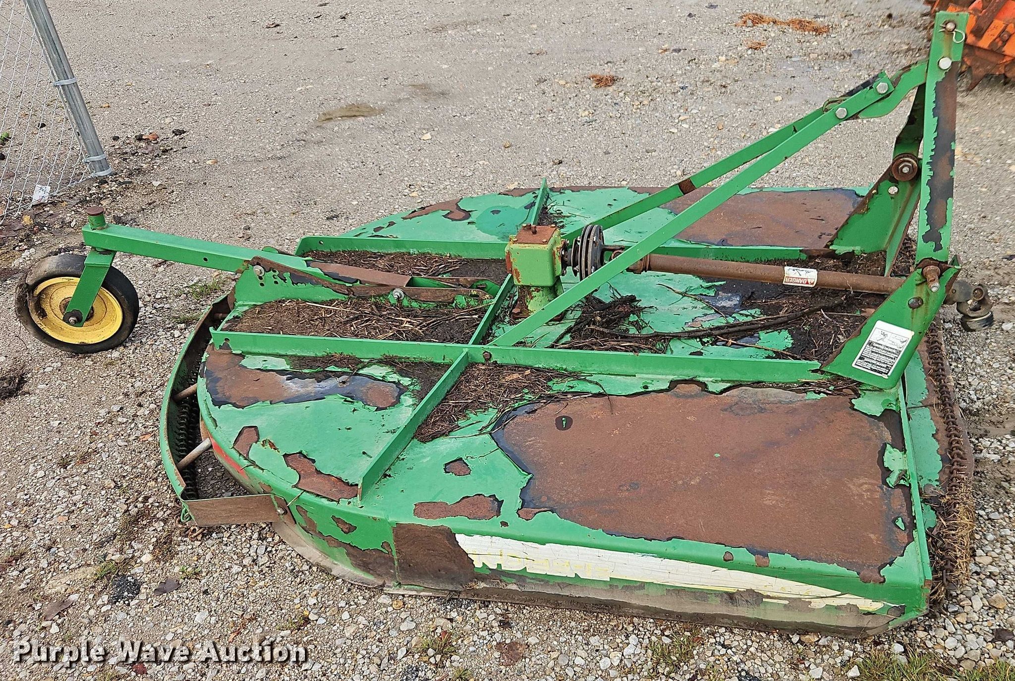 Purple Wave is selling a used Mower, Cutter, Shredder in Missouri. This item is a John Deere rotary mower with the following: Width: 6', PTO: 540, Hitch: Three point