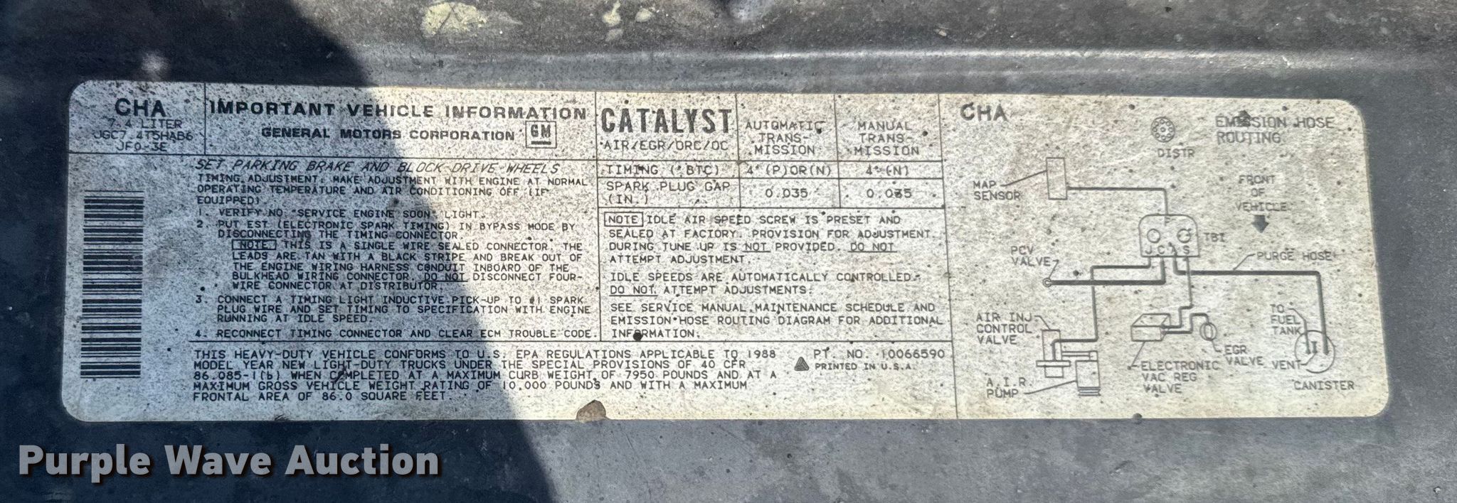 Take a look at this used 1988 GMC V3500 flatbed pickup truck being sold on October 28th, 2025 in the Tuesday October 28 Government Auction made by GMC. Take a look at all of the item information below or take a look at similar auctions for Pickups and Vans.