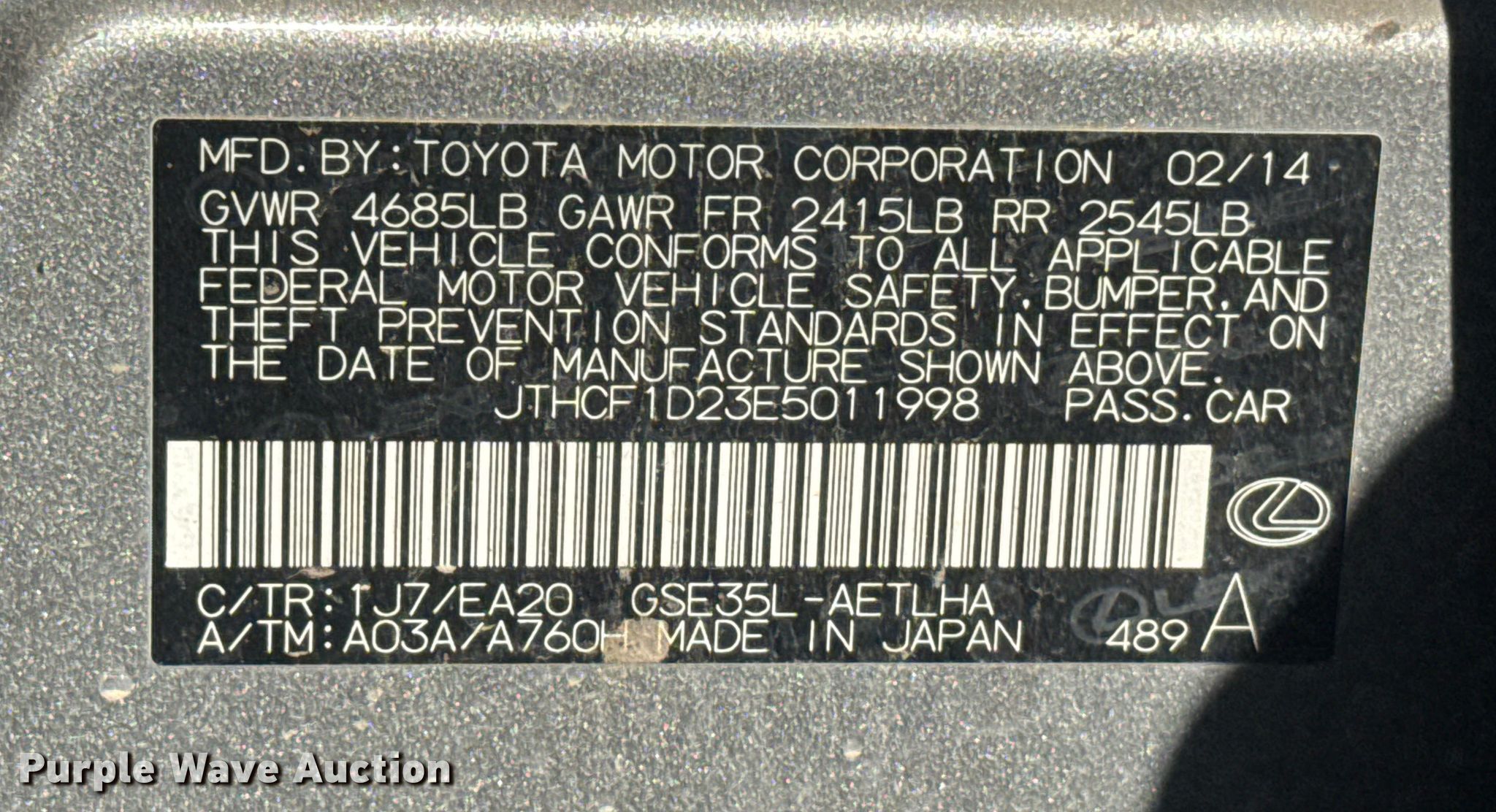 Purple Wave is selling a used Passenger Vehicle in Kansas. This item is a 2014 Lexus IS with the following: Miles: 147,947 on odometer, VIN: JTHCF1D23E5011998