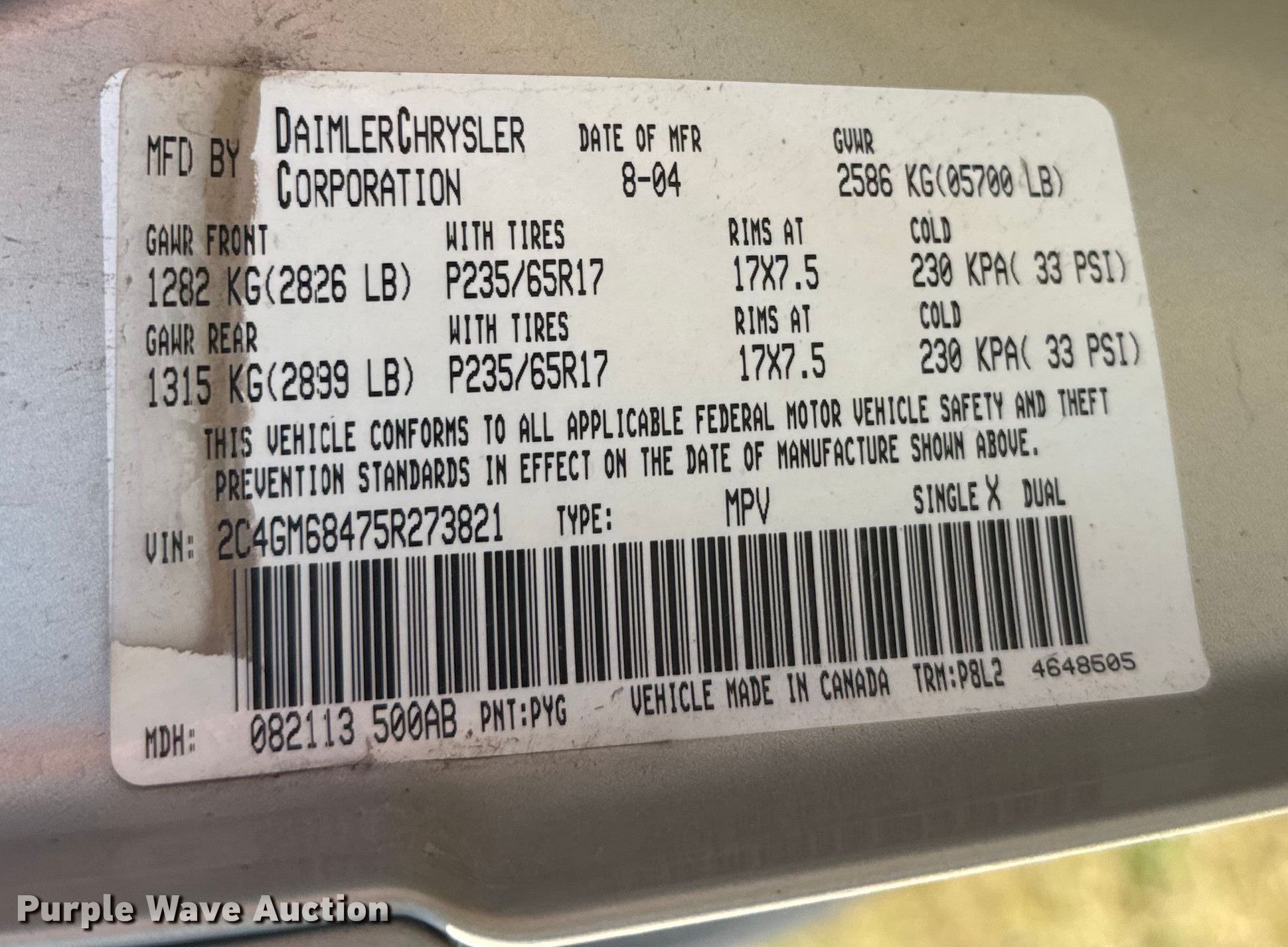 Purple Wave is selling a used Passenger Vehicle in Kansas. This item is a 2005 Chrysler Pacifica SUV with the following: Miles: 217,151 on odometer, VIN: 2C4GM68475R273821